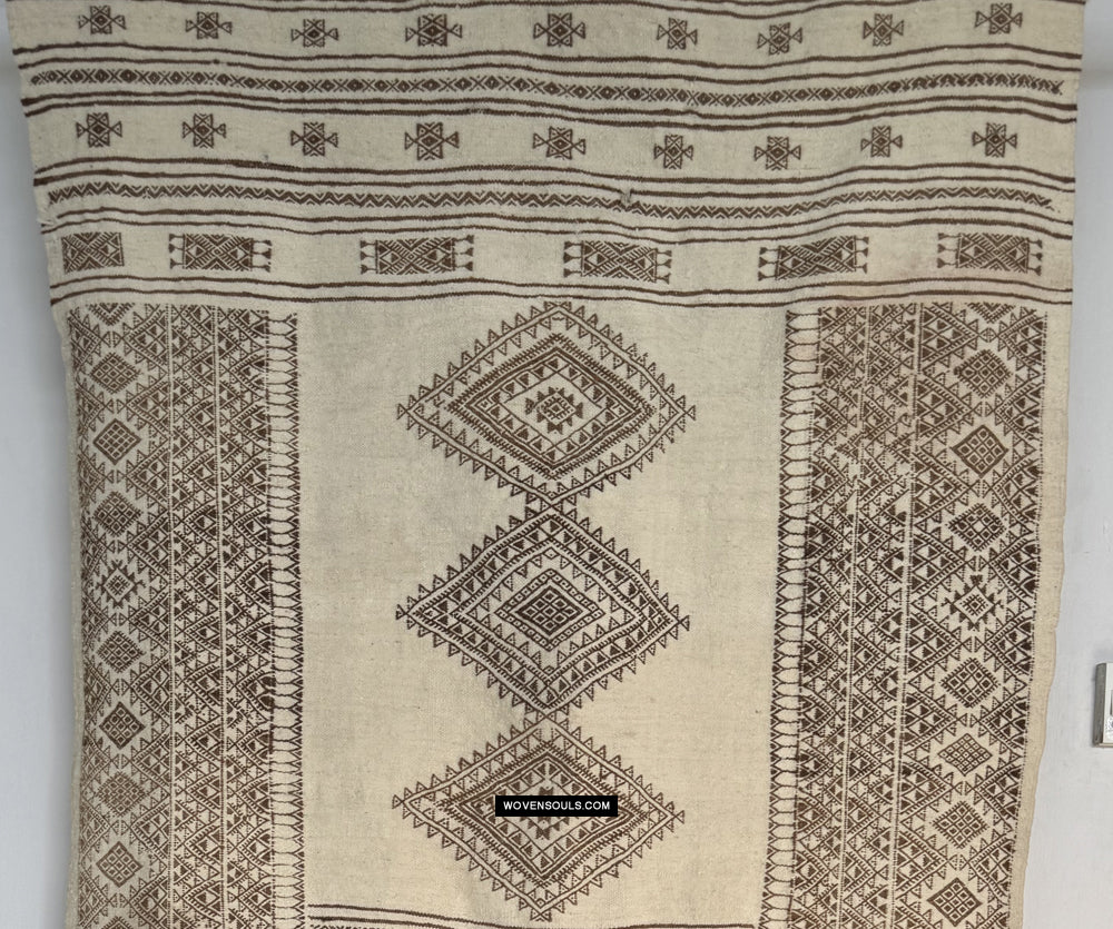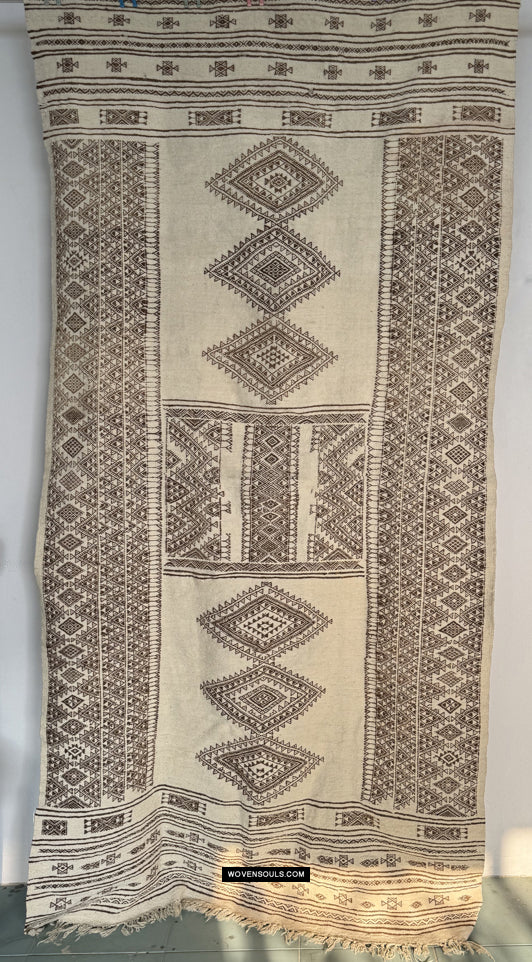 Vintage Bakhnoug Wool Shawl with undyed wool