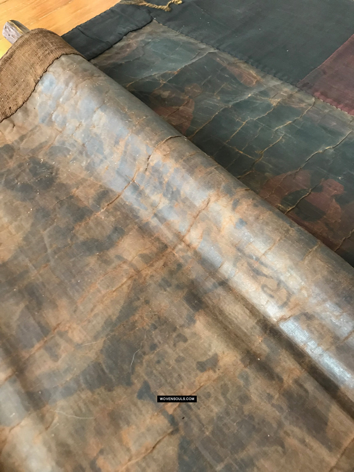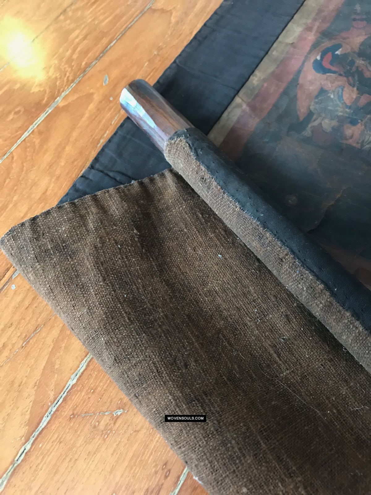 As can be seen in the last few photos, the base cloth of the painting has some waxy burnished finish. The borders are made of hand spun hand woven cotton.