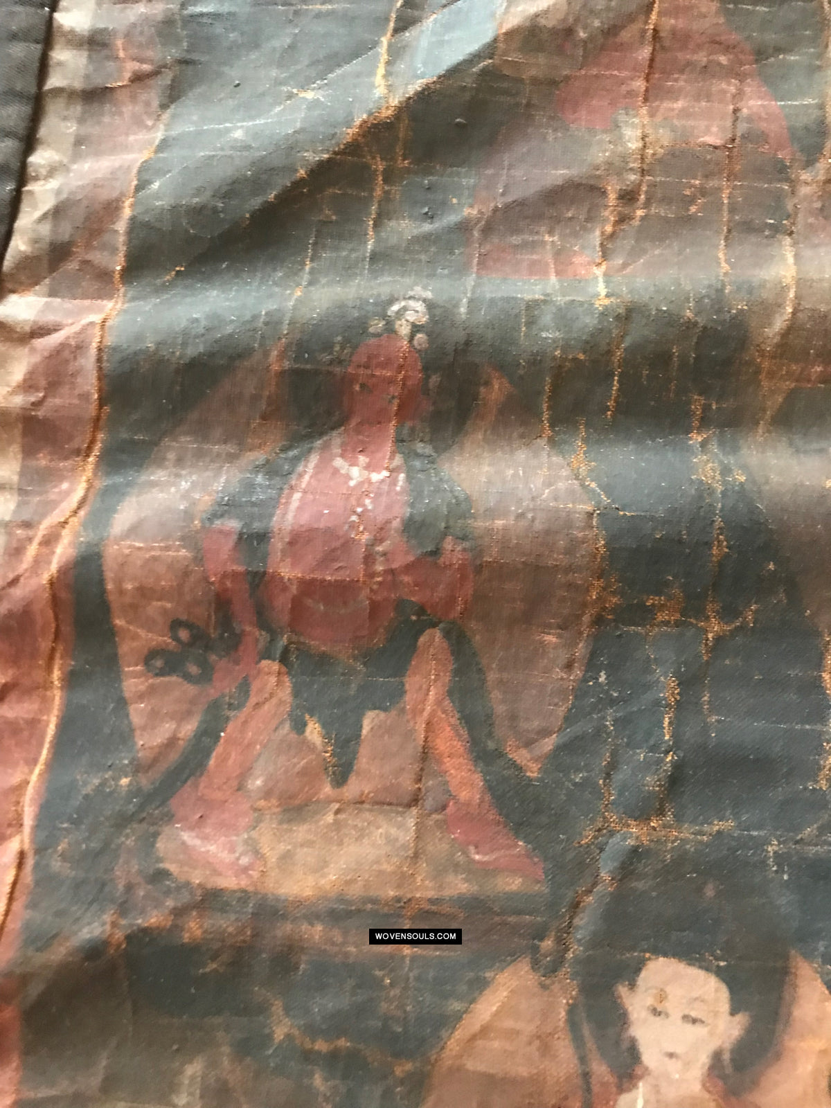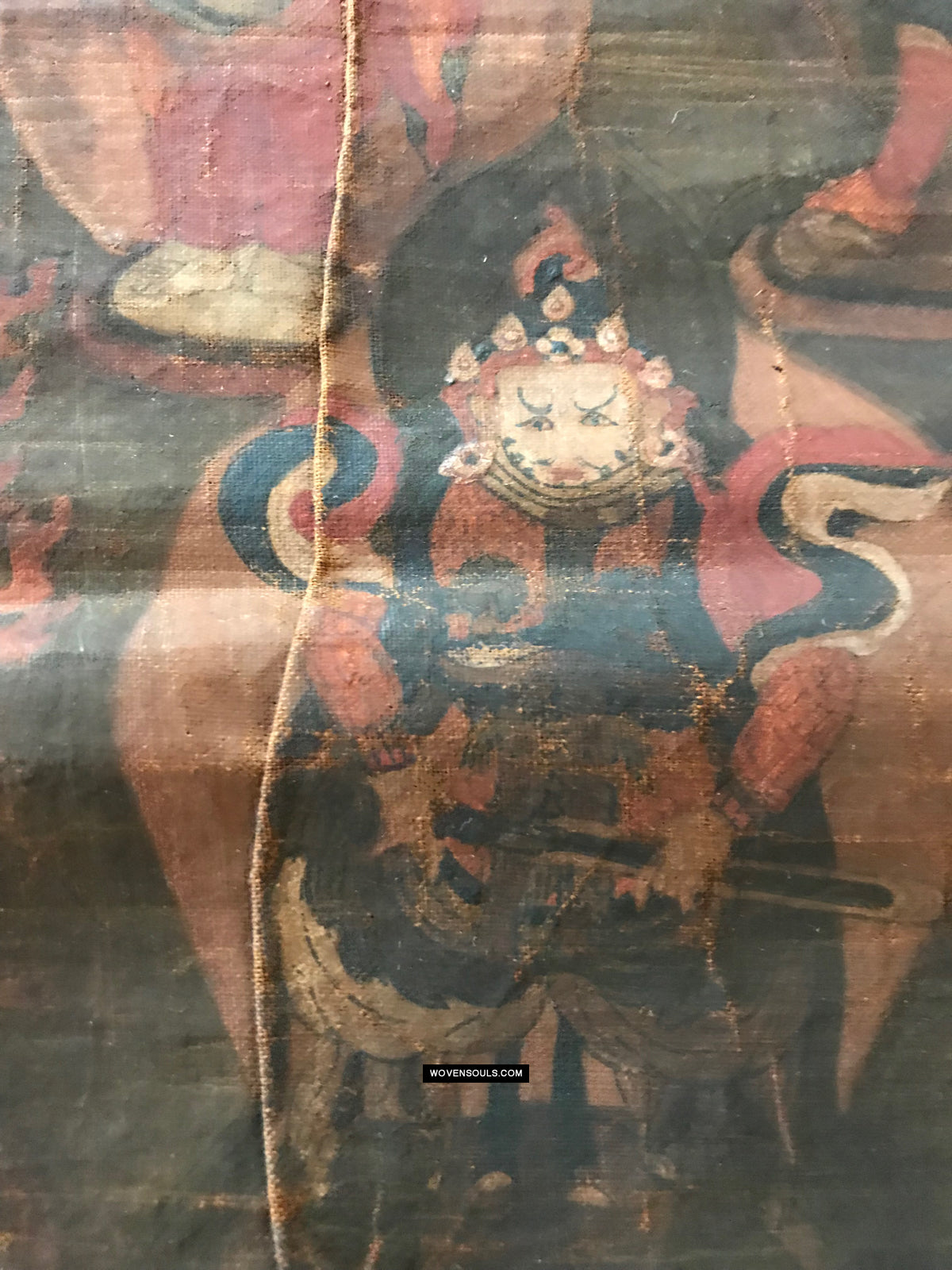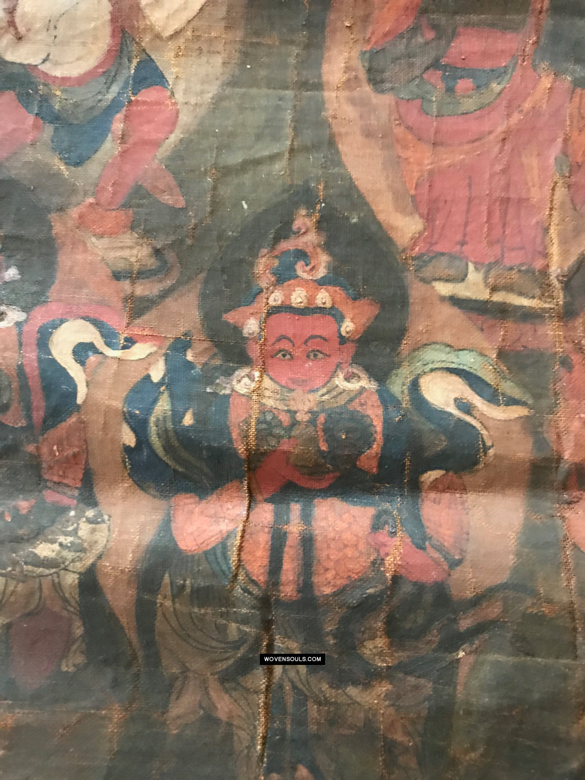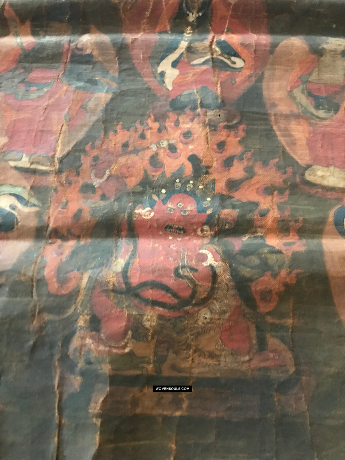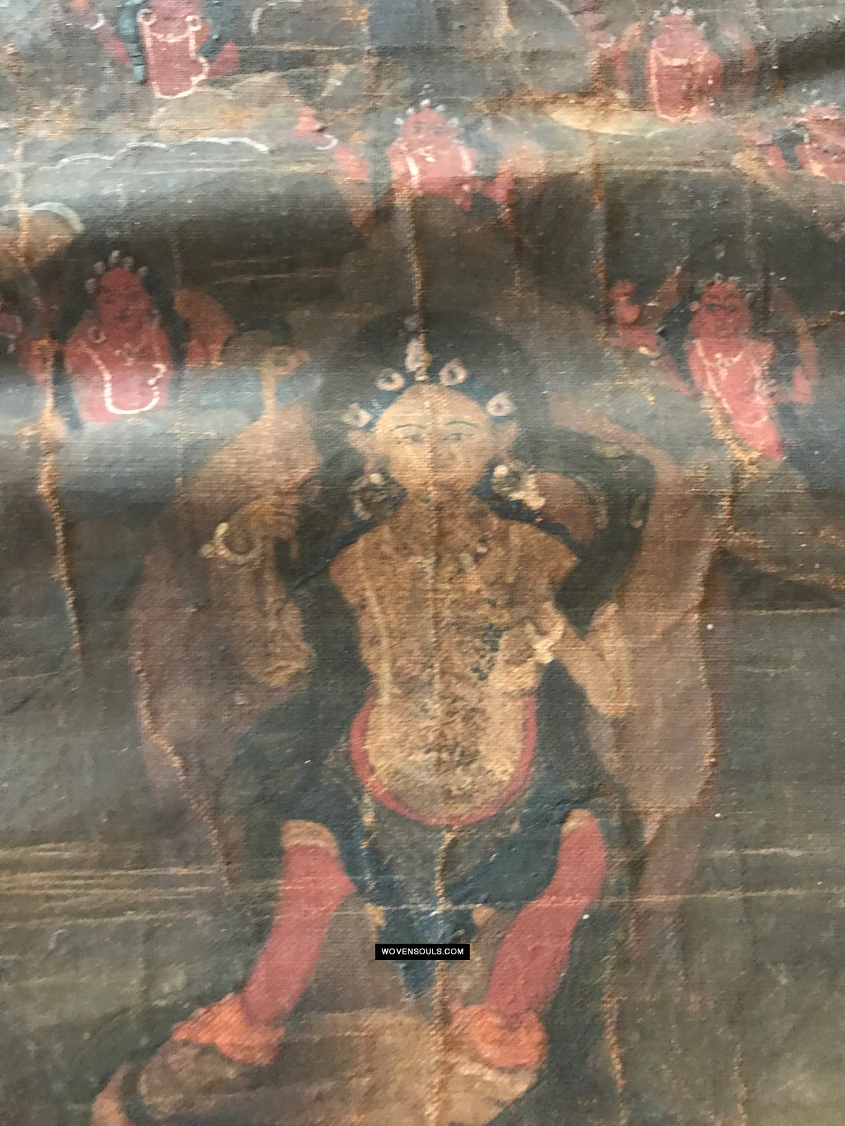 Overall even browning with age and the appearance matches that of thangkas seen in situ in the some of the oldest monasteries in the Himalayas.