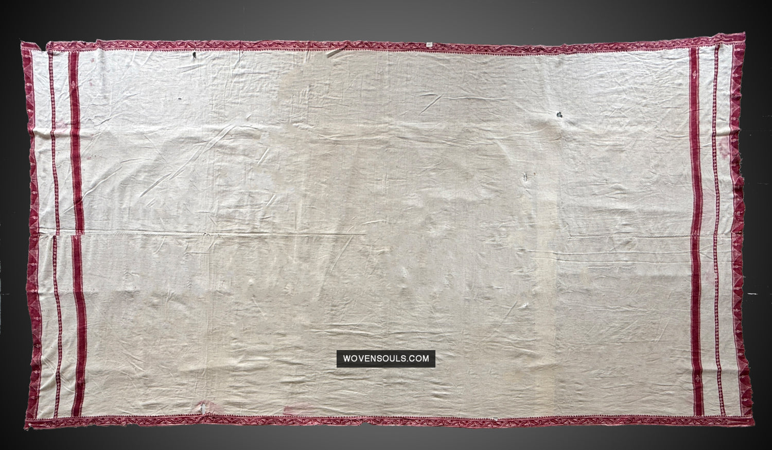 This item has spent a lifetime being used for the purpose of its creation with the original artist/user. Signs of this life lived heartily must be expected on the piece in the form of stains, thread loss, loose threads, holes, tears, color run, repairs and other imperfections. Therefore the condition must be assumed to be “not” perfect. More photos of such imperfections will be provided on request.