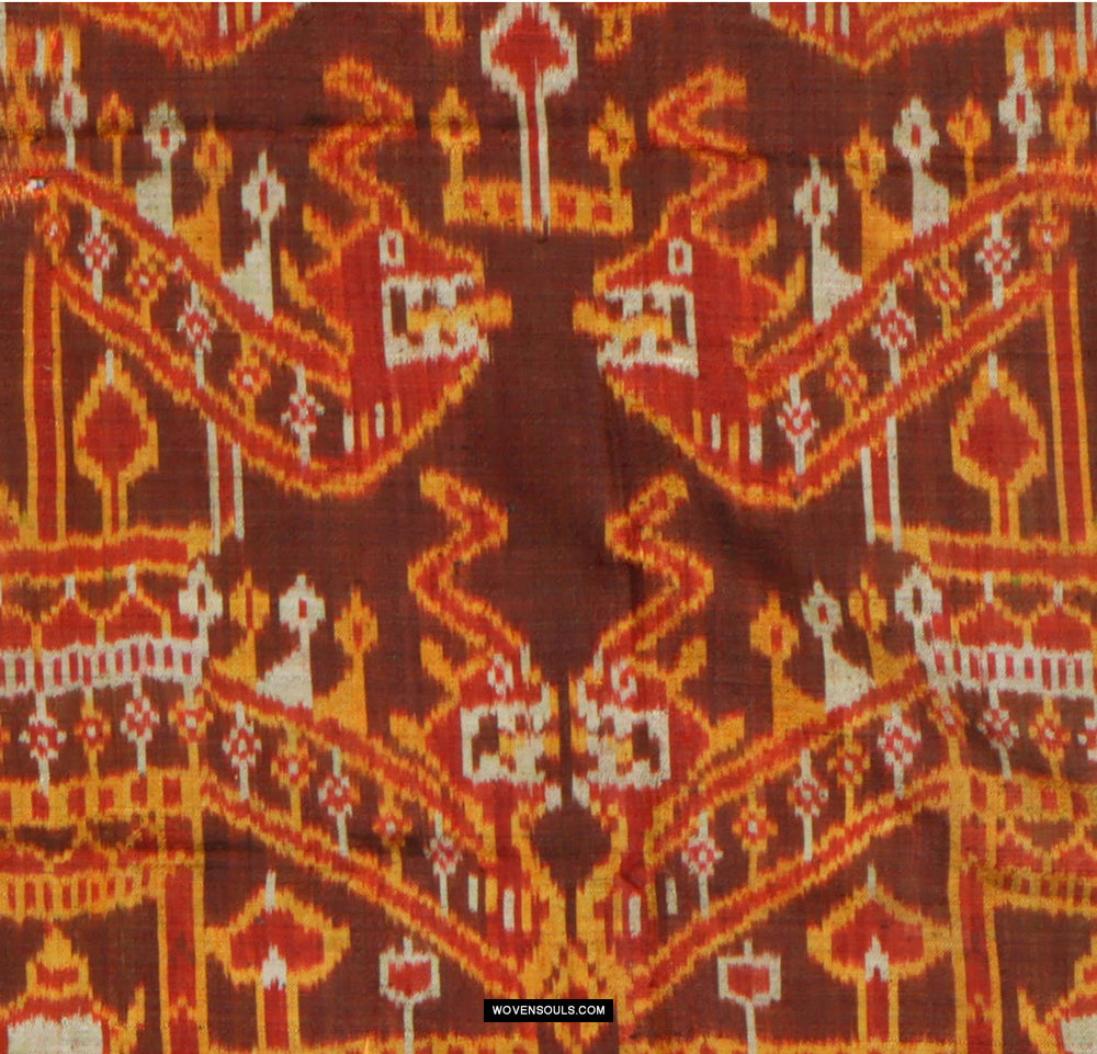 Why do I say that? In creating ikat, the design is planned first, then the threads are laid out parallel to each other and dyed according to the design intended. At the time of dyeing, the threads are free floating and not attached to each other. It is only after the unattached threads are dyed in the many colors needed, that they are woven in together. And naturally some misalignment creeps in during weaving and gives rise to a rough look on each motif at the color-change edges.  In places like Pochampally, the designs are large, and each color on a thread occupies a few centimeters or even a few inches and the misalignment can be seen over a few millimeters at the edge of every color. (The error must necessarily be a small fraction of the total otherwise the intended design would not be evident at all and would appear as a messy hodgepodge of colors.) On the other hand,  in antique Pidans from Cambodia the color changes every few millimeters. So, the scope for misalignment is much much less. The time consumed and the attention required to produce motifs that are precise to a millimeter is enormous.  And that is why old ikats from Cambodia are the finest among the ones I've seen.