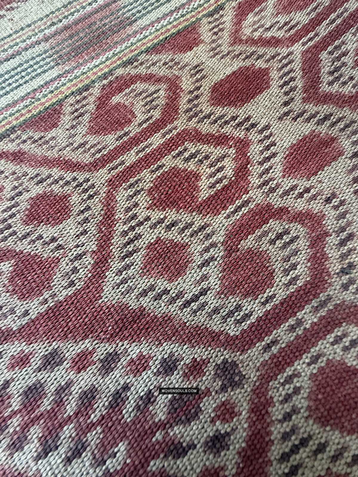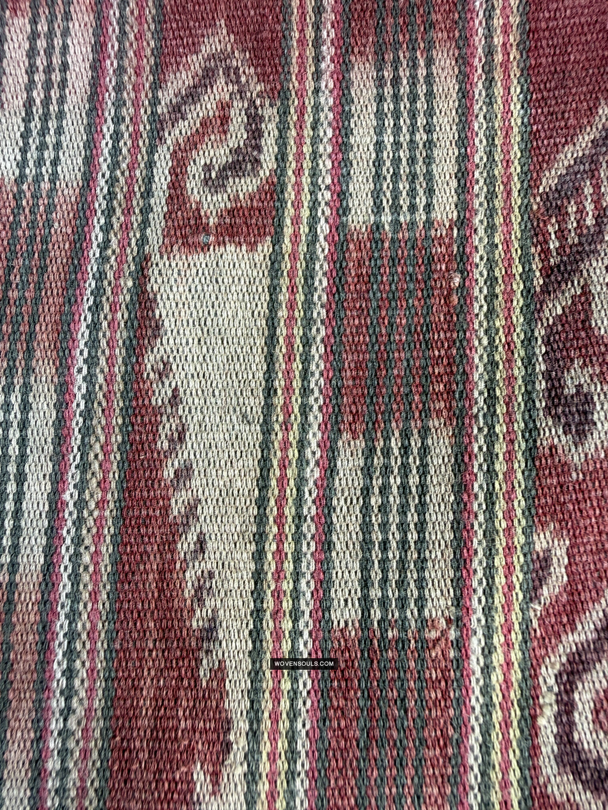 This item has spent a lifetime being used for the purpose of its creation with the original artist/user. Signs of this life lived heartily may be present on the piece in the form of stains, thread loss, loose threads, holes, tears, color run and other imperfections. Therefore the condition must be assumed to be “not” perfect. More photos of such imperfections will be provided on request.