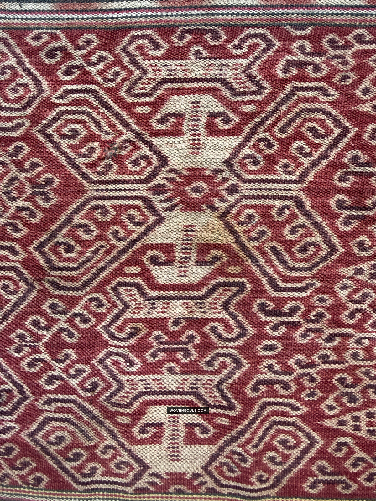 2) Registration issues. In the process of creating ikat art, alignment must be precise to create sharp motifs. If adjoining threads are not perfectly placed, the edges of the motifs are no longer straight lines and they look untidy. Lines turn out zigzag when examined at closely. This is impossible to avoid completely and a misalignment of a few millimeters is common. But a mature weaver has usually mastered this technique and so even motifs that are as small as 1 mm are rendered perfectly. If this perfection is present in an Iban ikat, it appeals to me.