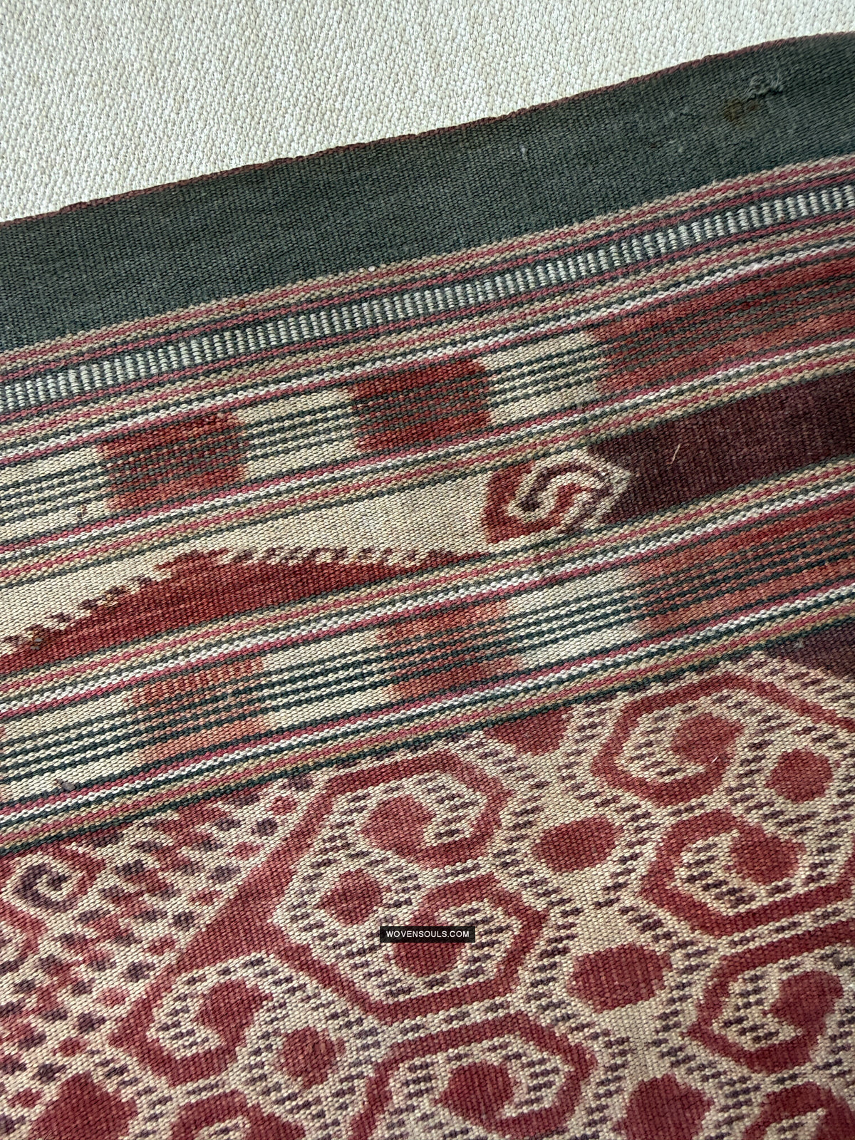 (complete at both ends. These are folded over and made into tube skirts and sometimes cut to get the size right. This one is perfectly preserved as the designs at both ends show)