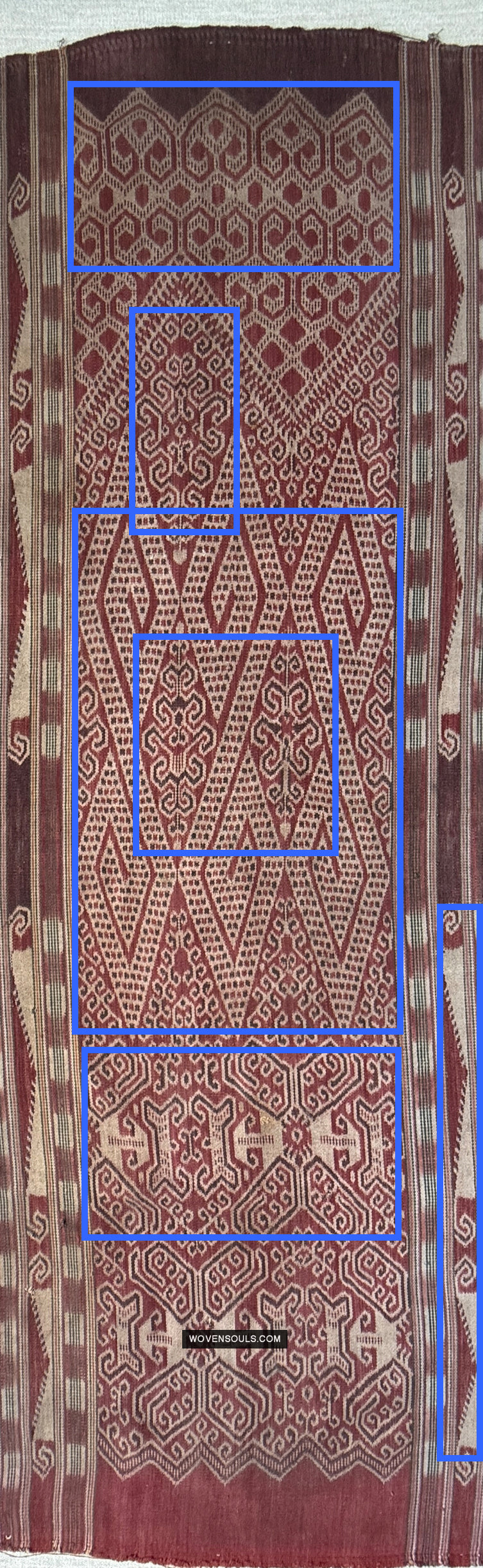 Perhaps each of the panels means something. I've heard from experts who have studied Iban ikats for years that even a dedicated decade is not enough study to be able to 'read' the an Iban ikat.