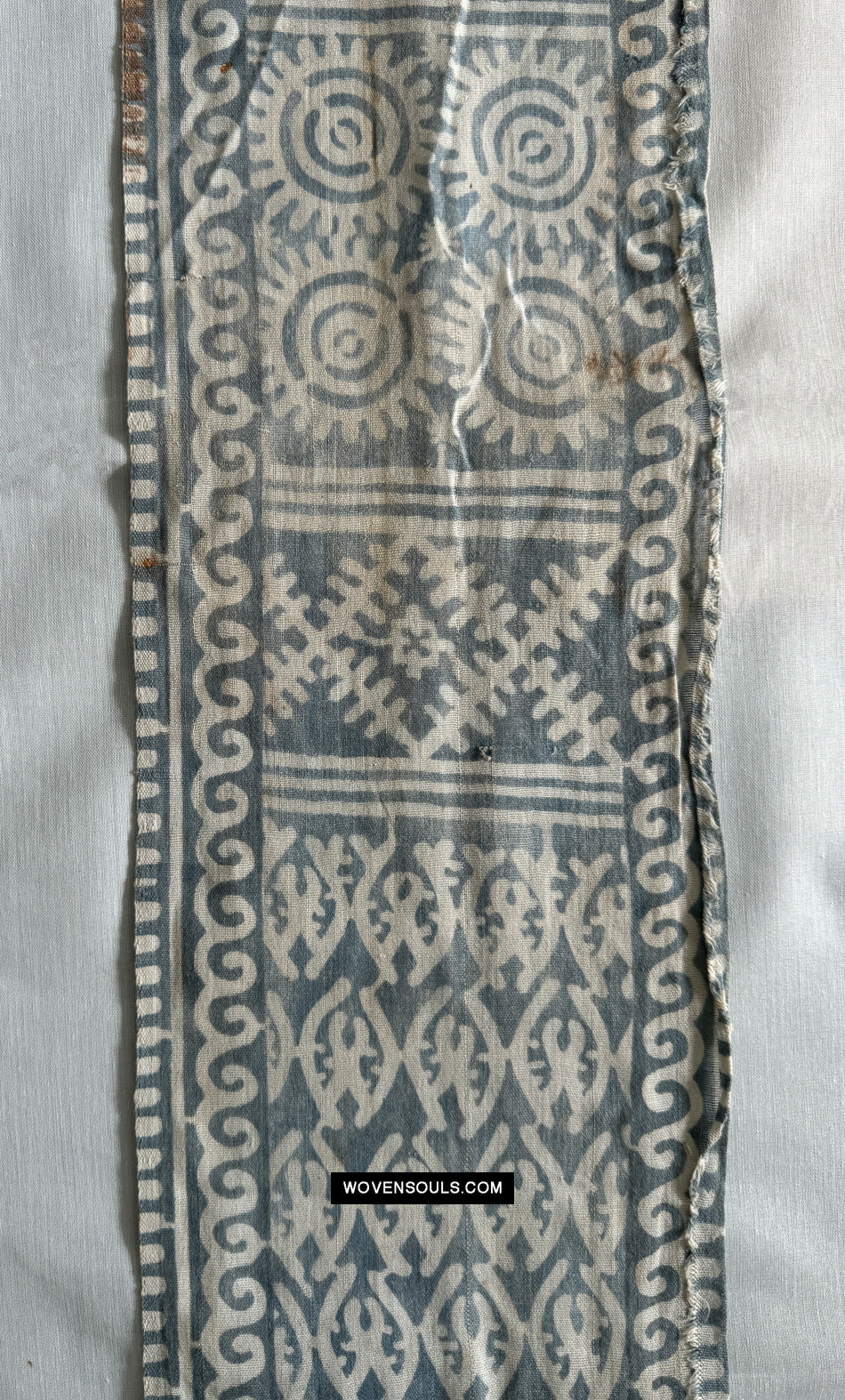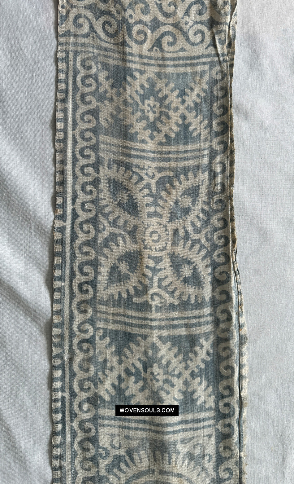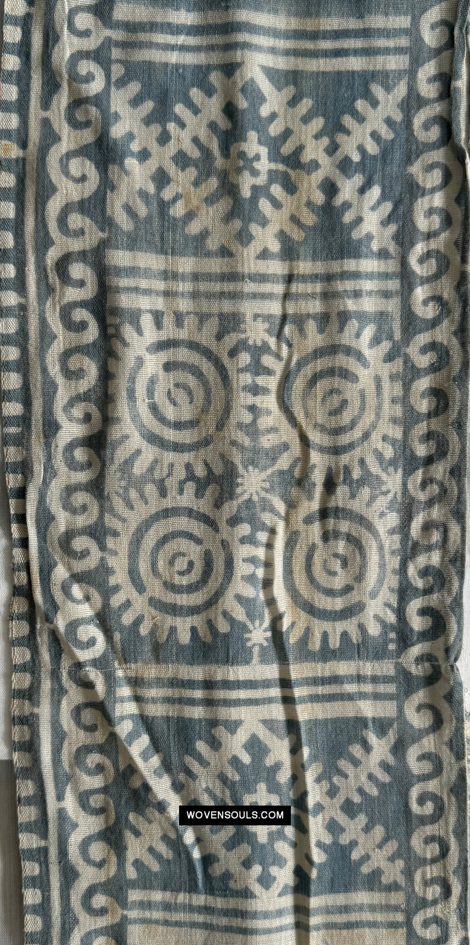 DO look at the closeups of this loosely-woven faded cotton to get an idea of the wonderful base cloth that has been softened by age and decades of usage.