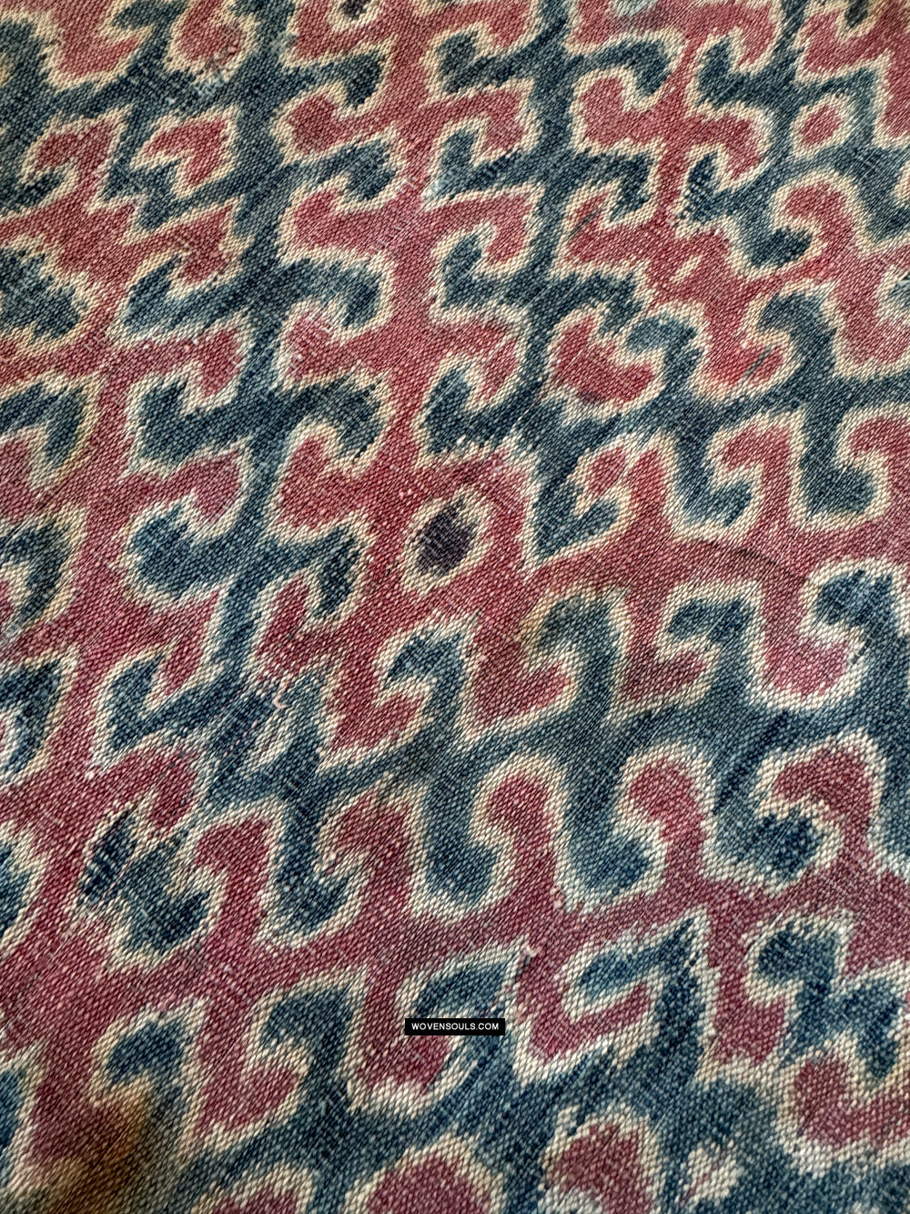 The motifs are fine, small and dense and not large as we see in younger ikat textiles. The picture with the scale shows the size of the motifs.