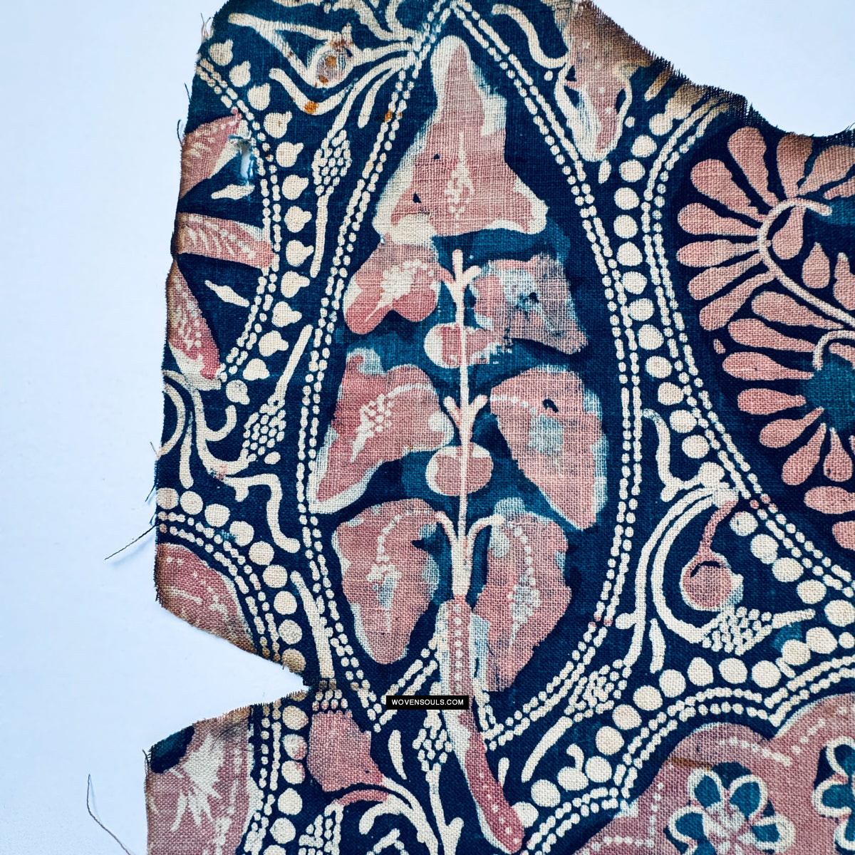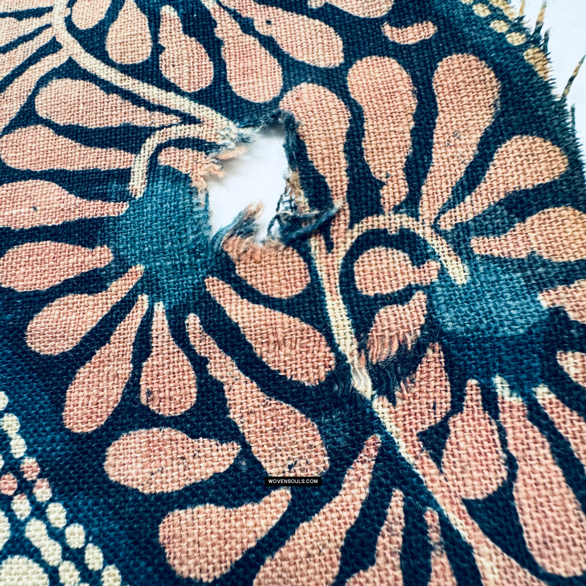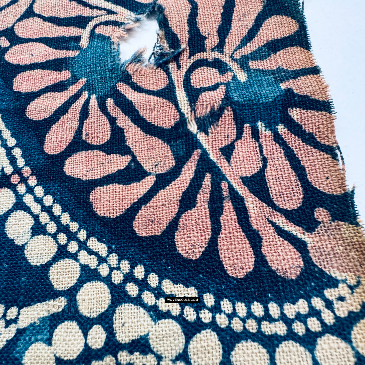 1966 Antique Indian Trade Textile Toraja Fragment - Indigo flowers
