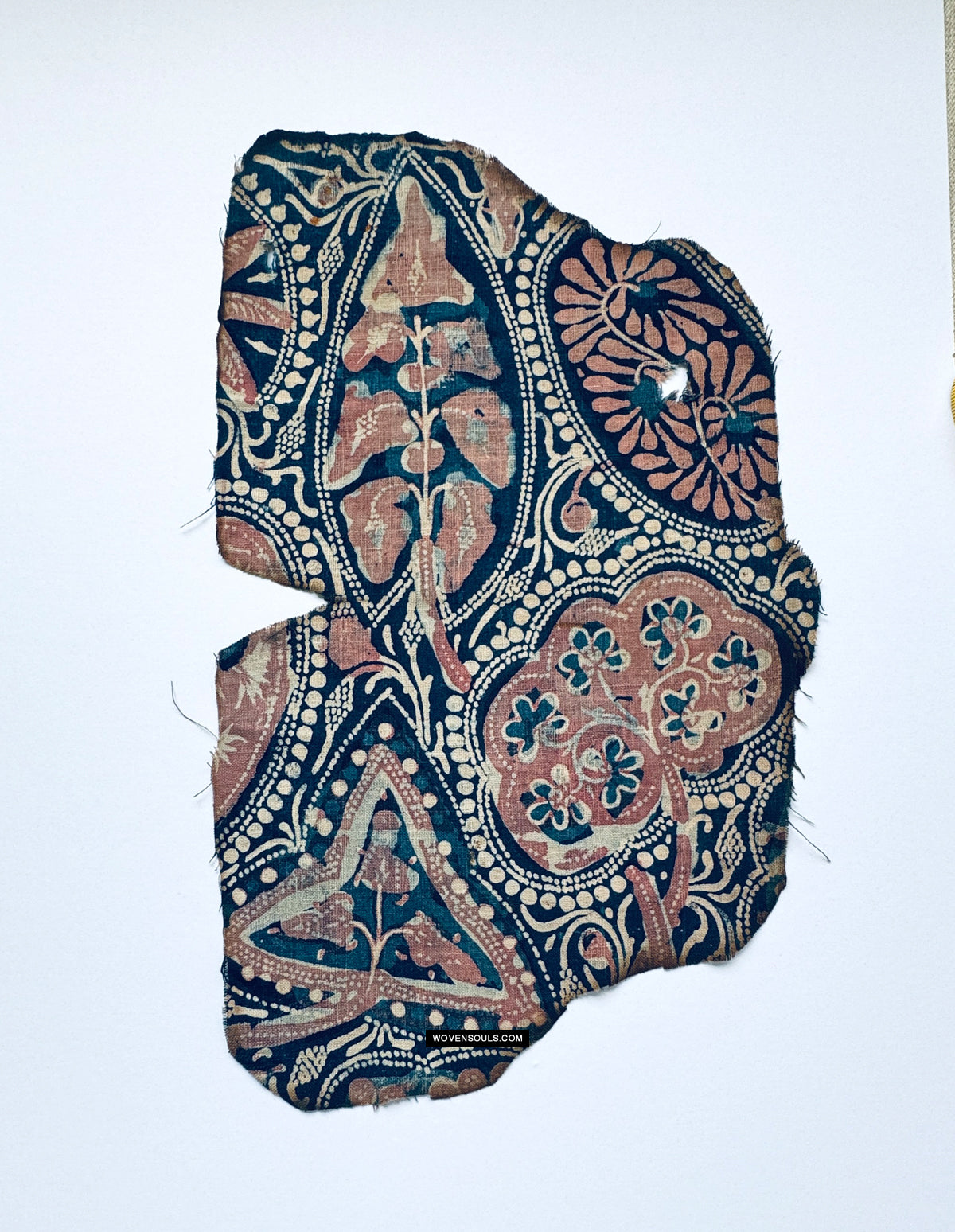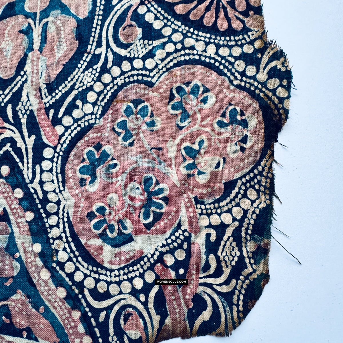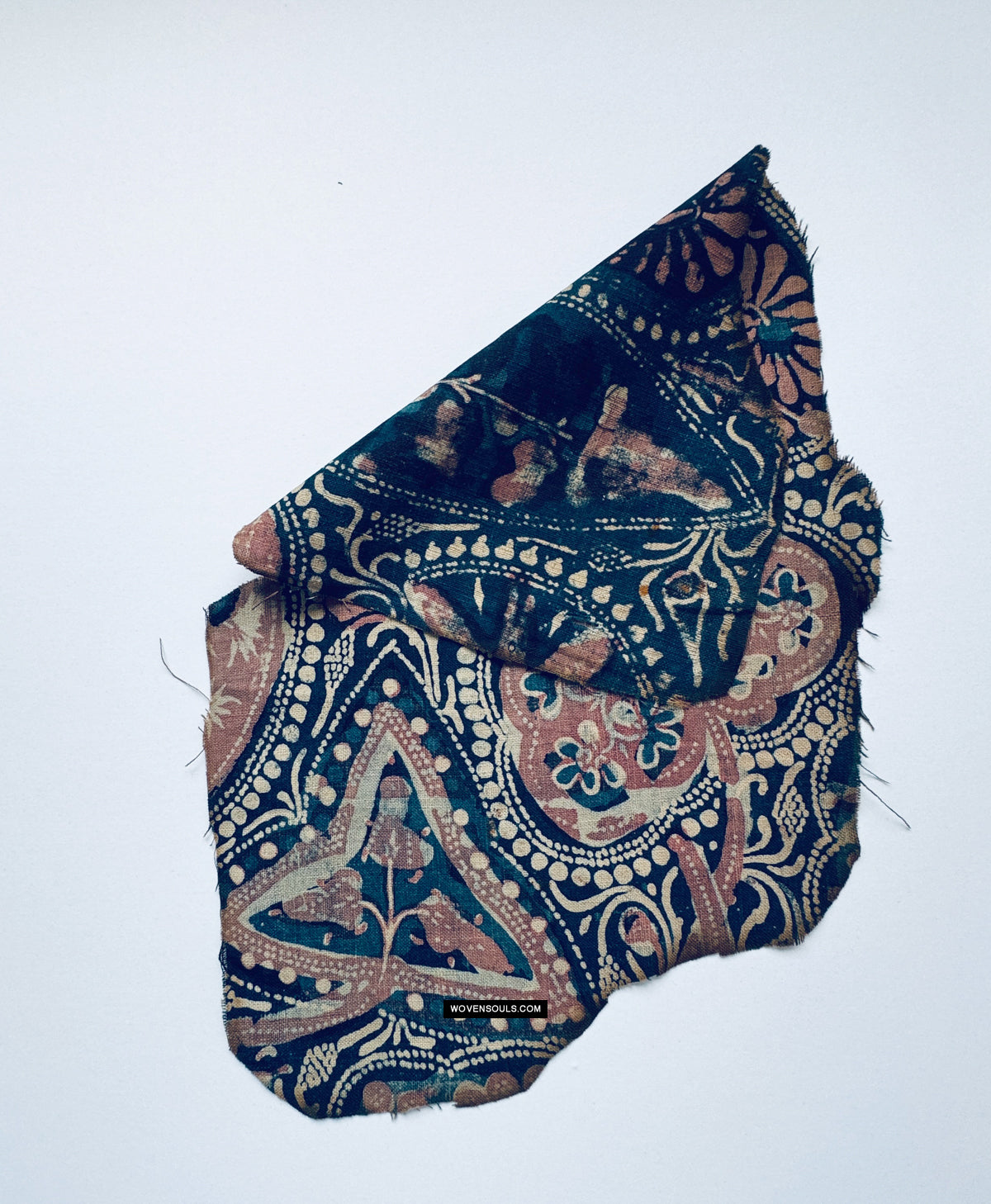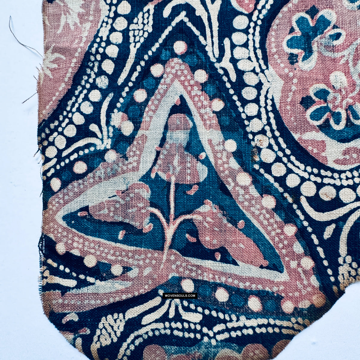 1966 Antique Indian Trade Textile Toraja Fragment - Indigo flowers