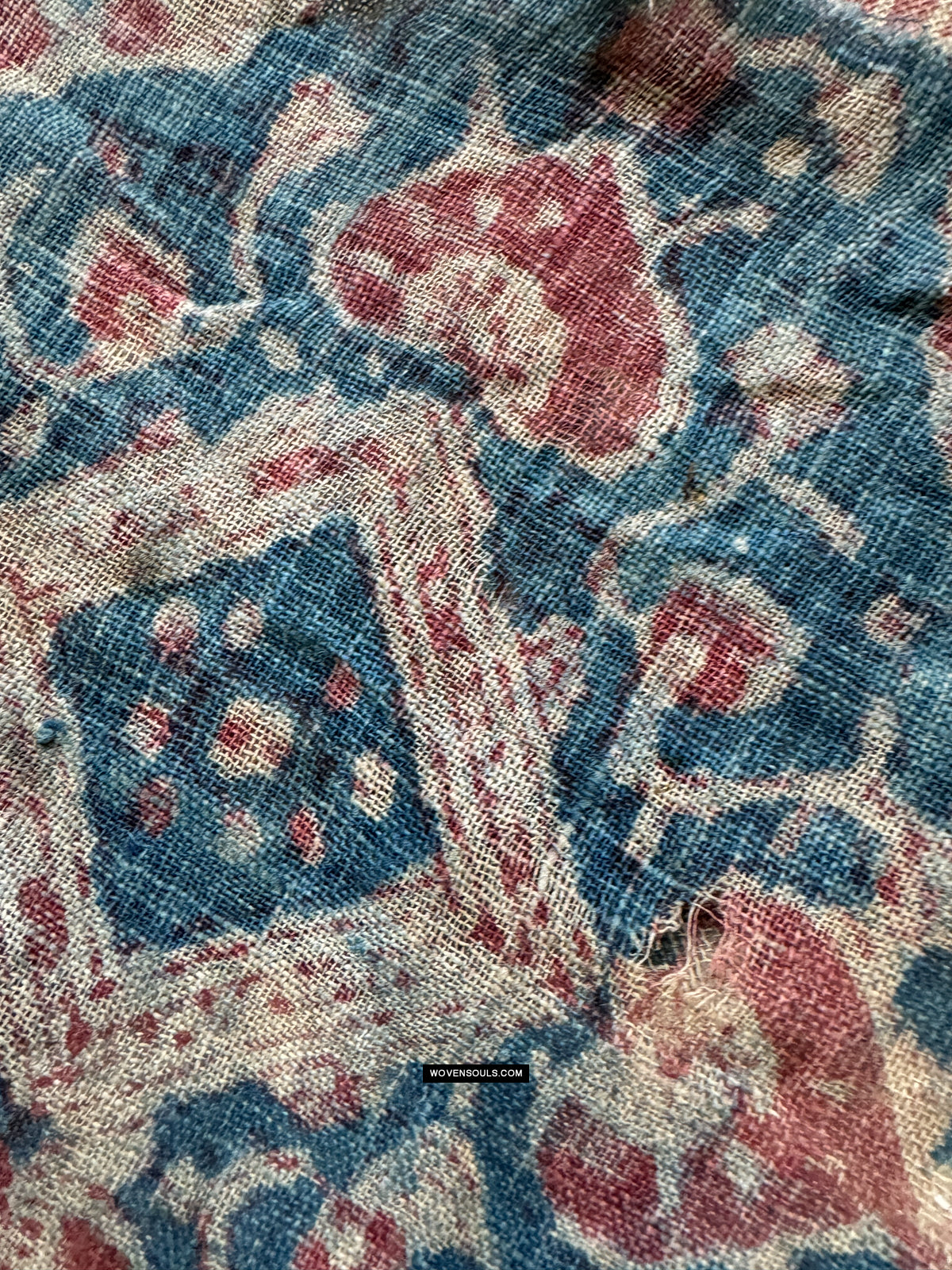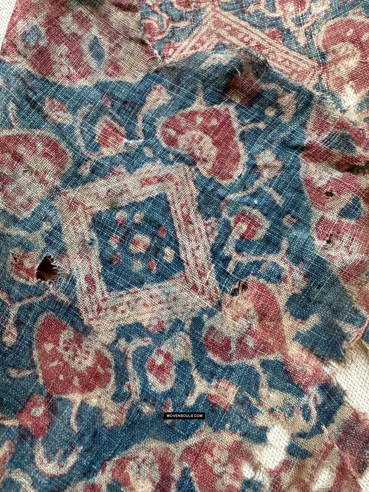 1980 Large Antique Indian Trade Cloth Printed Textile Toraja Fragment