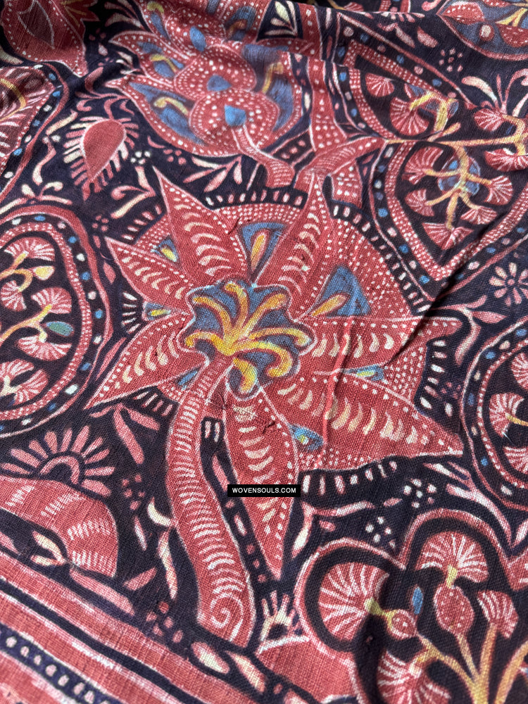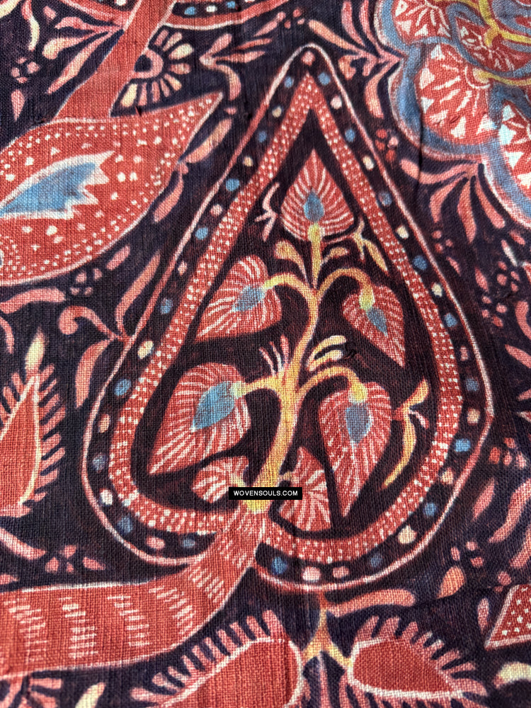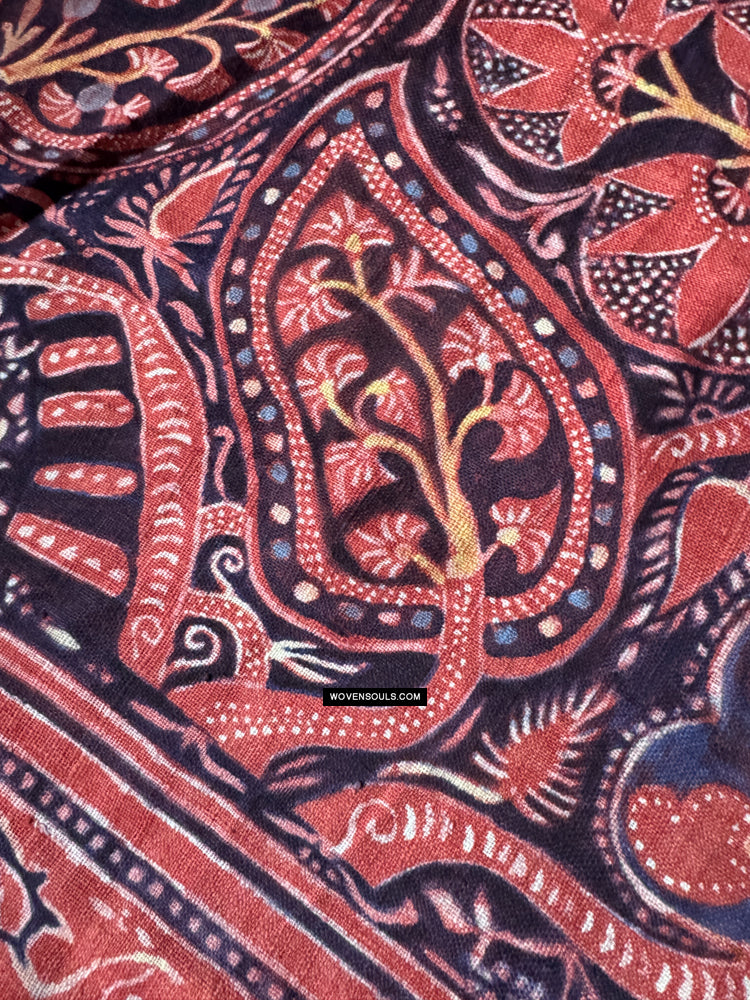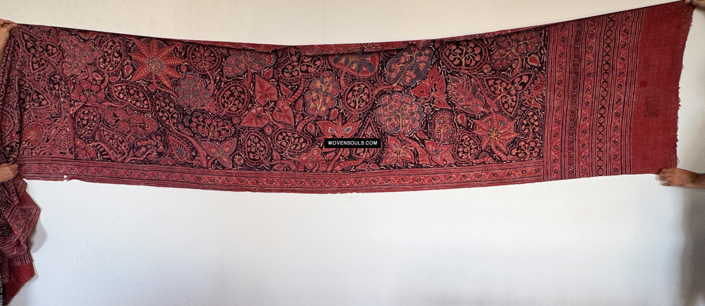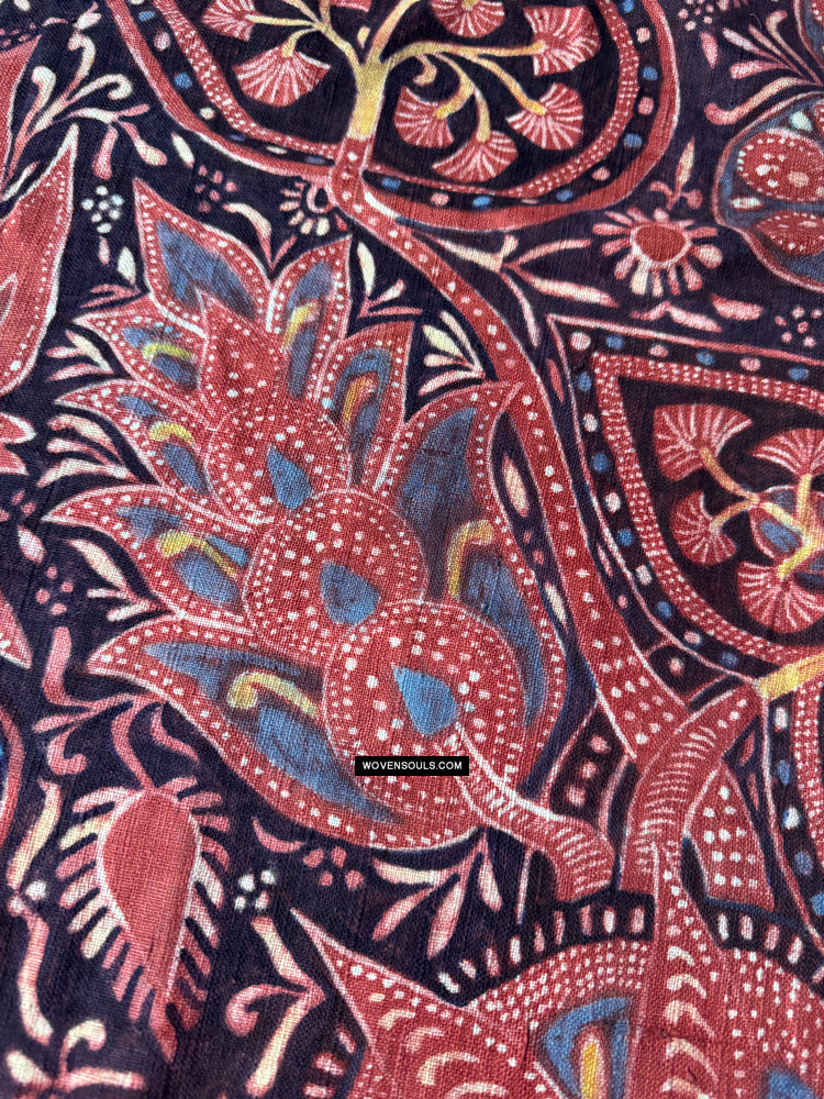 A gorgeous long ceremonial cloth with Kalamkari (also known as Sarasa) that is completely hand-drawn.