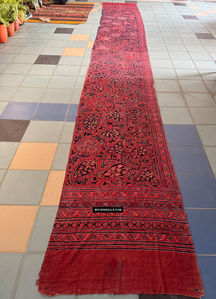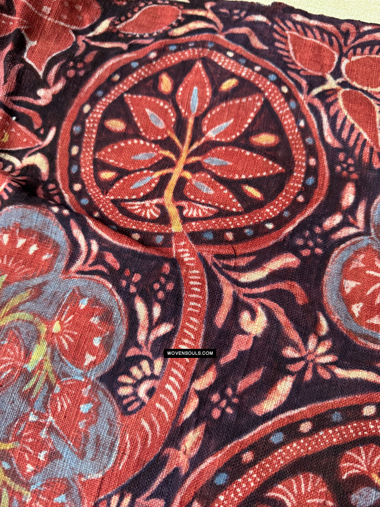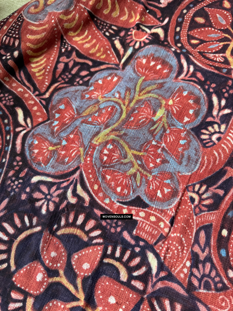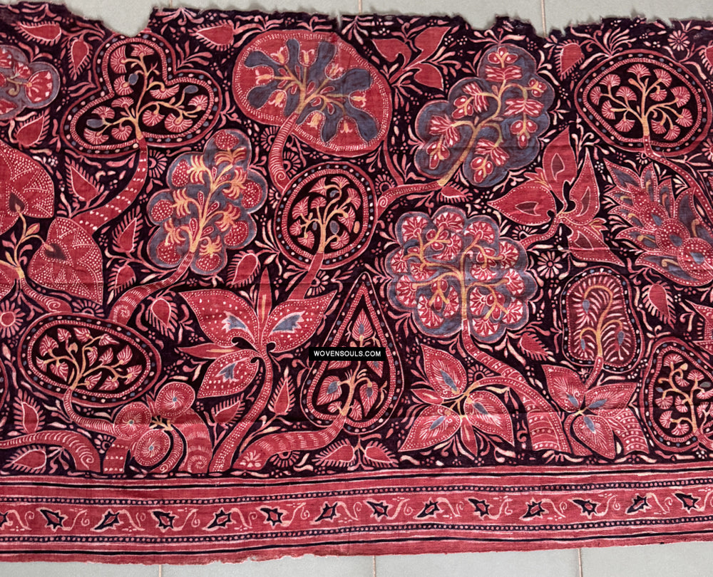 A gorgeous long ceremonial cloth with Kalamkari (also known as Sarasa) that is completely hand-drawn.