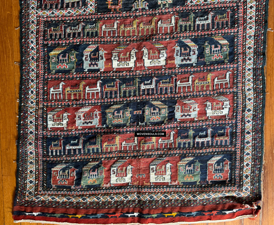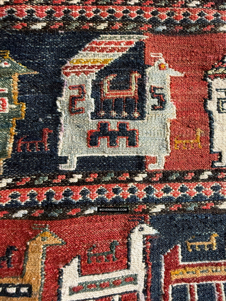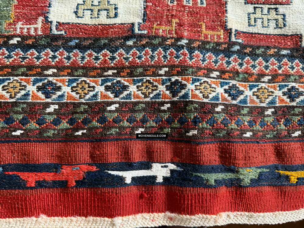Note the row of small animals at the bottom in the kilim portion of the textile. (maybe these are the dogs helping with the herding of the sheep?)