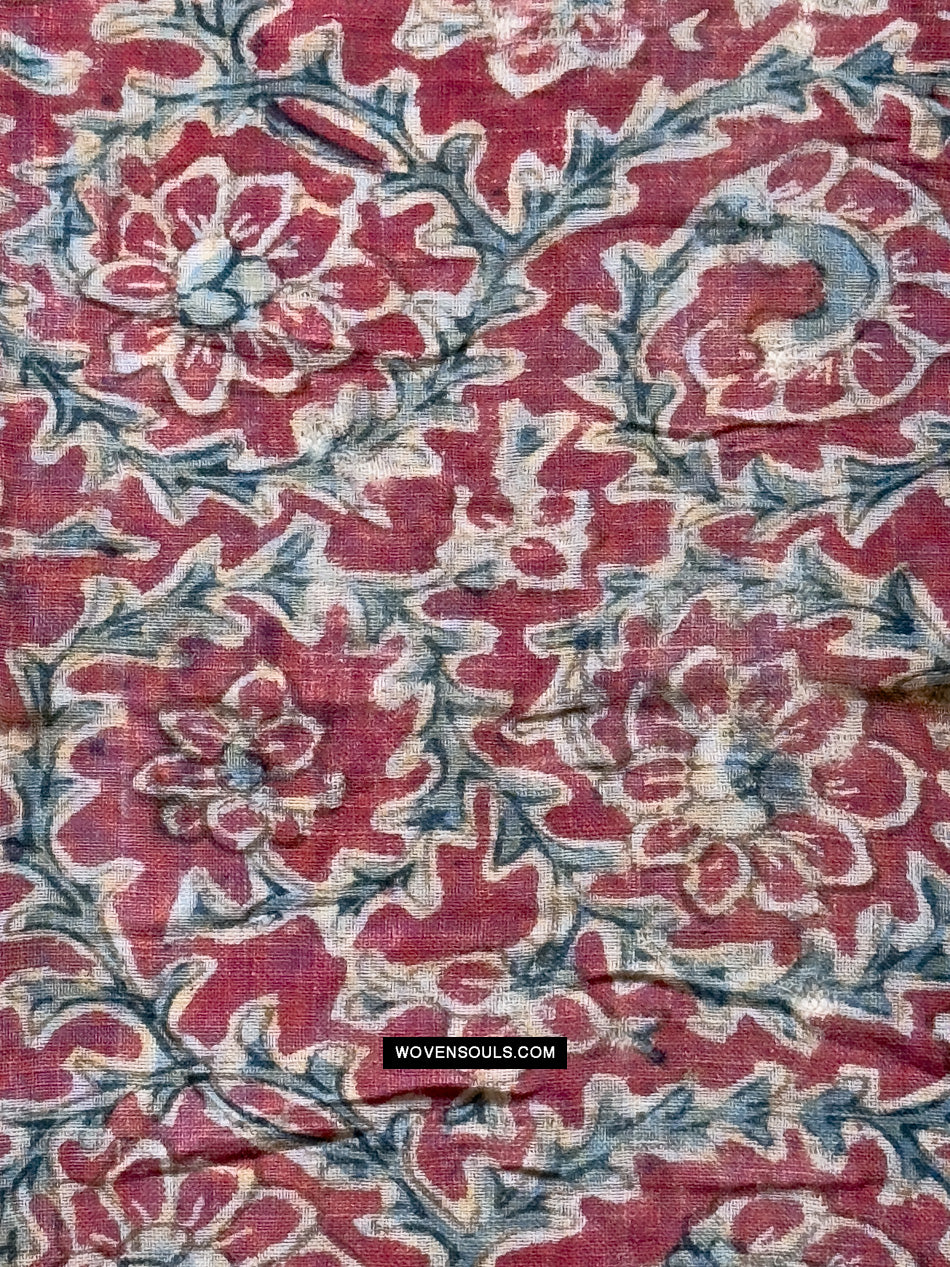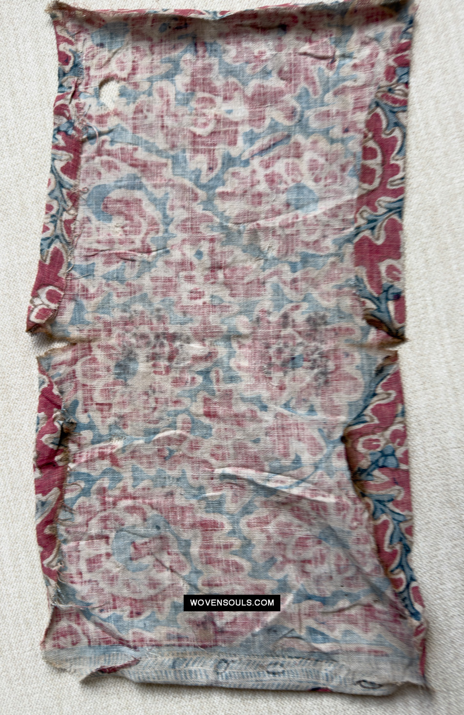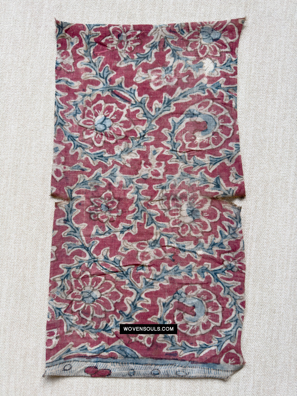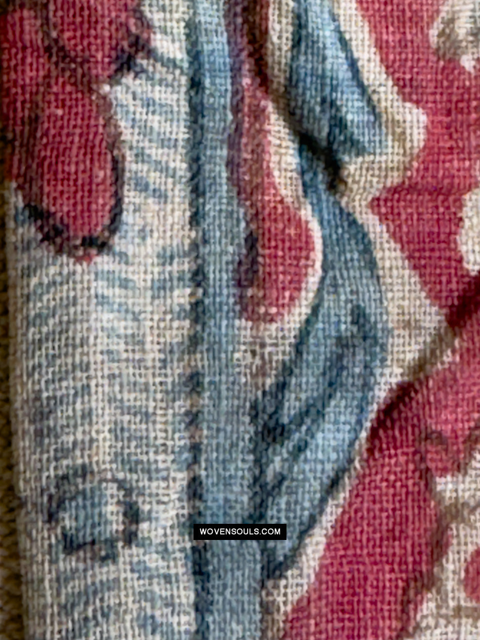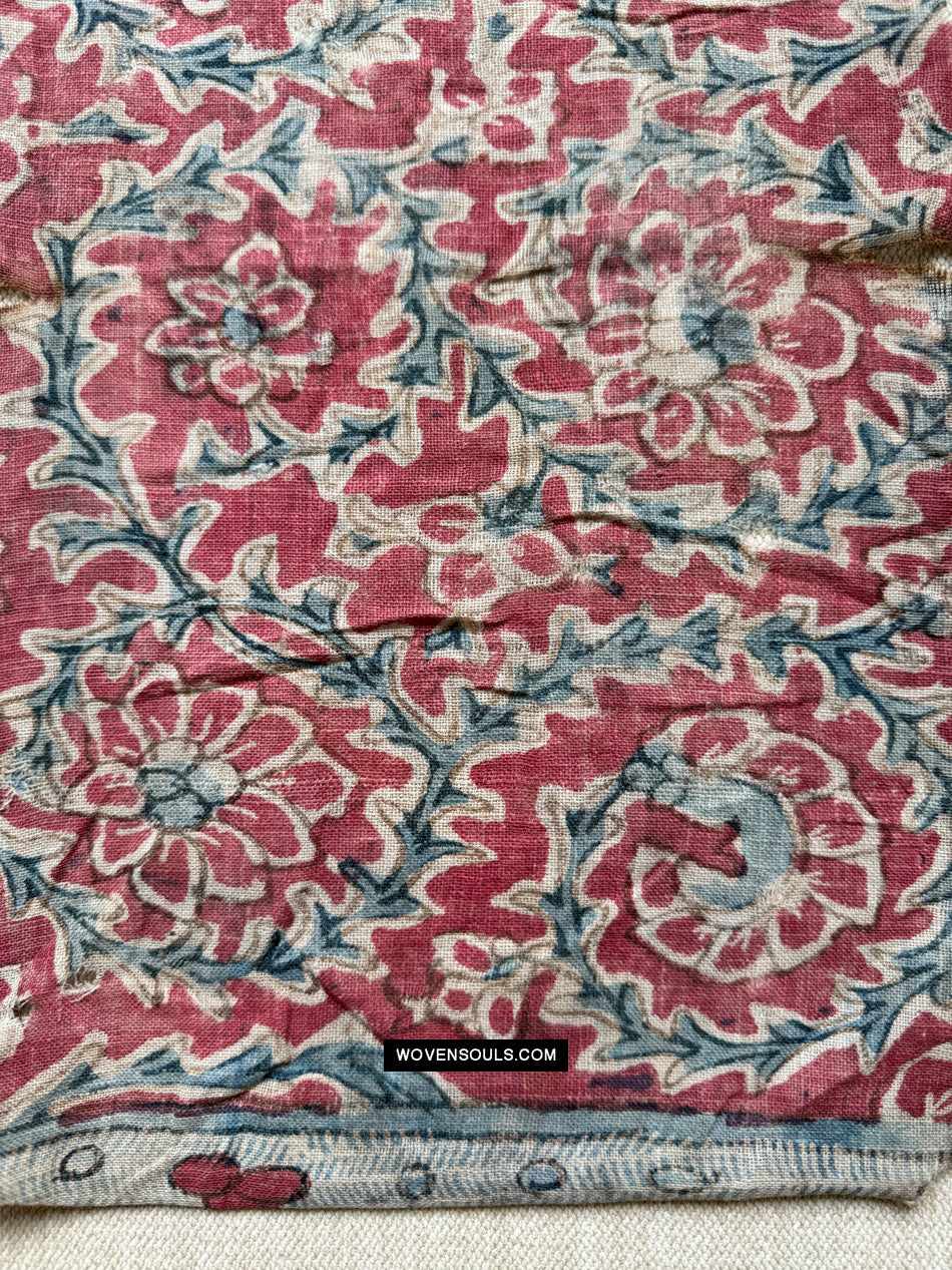 Amazing blue & salmon red/pink/peach on fine cloth.