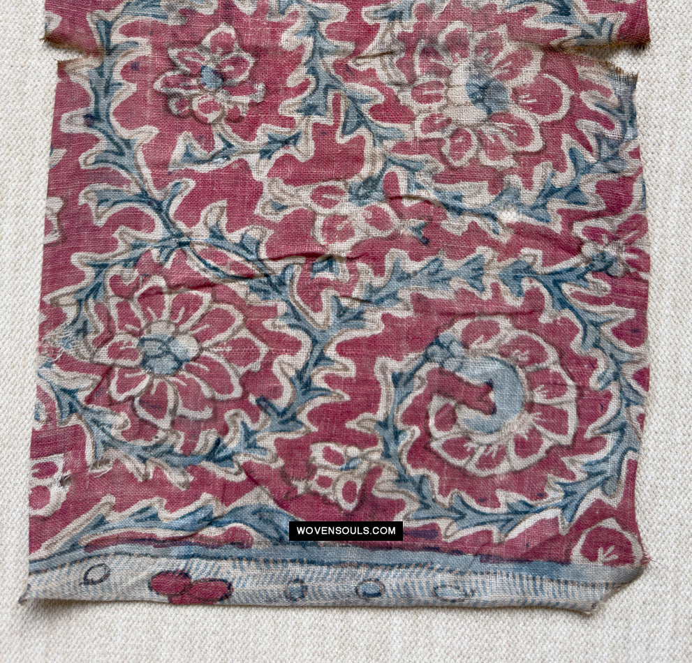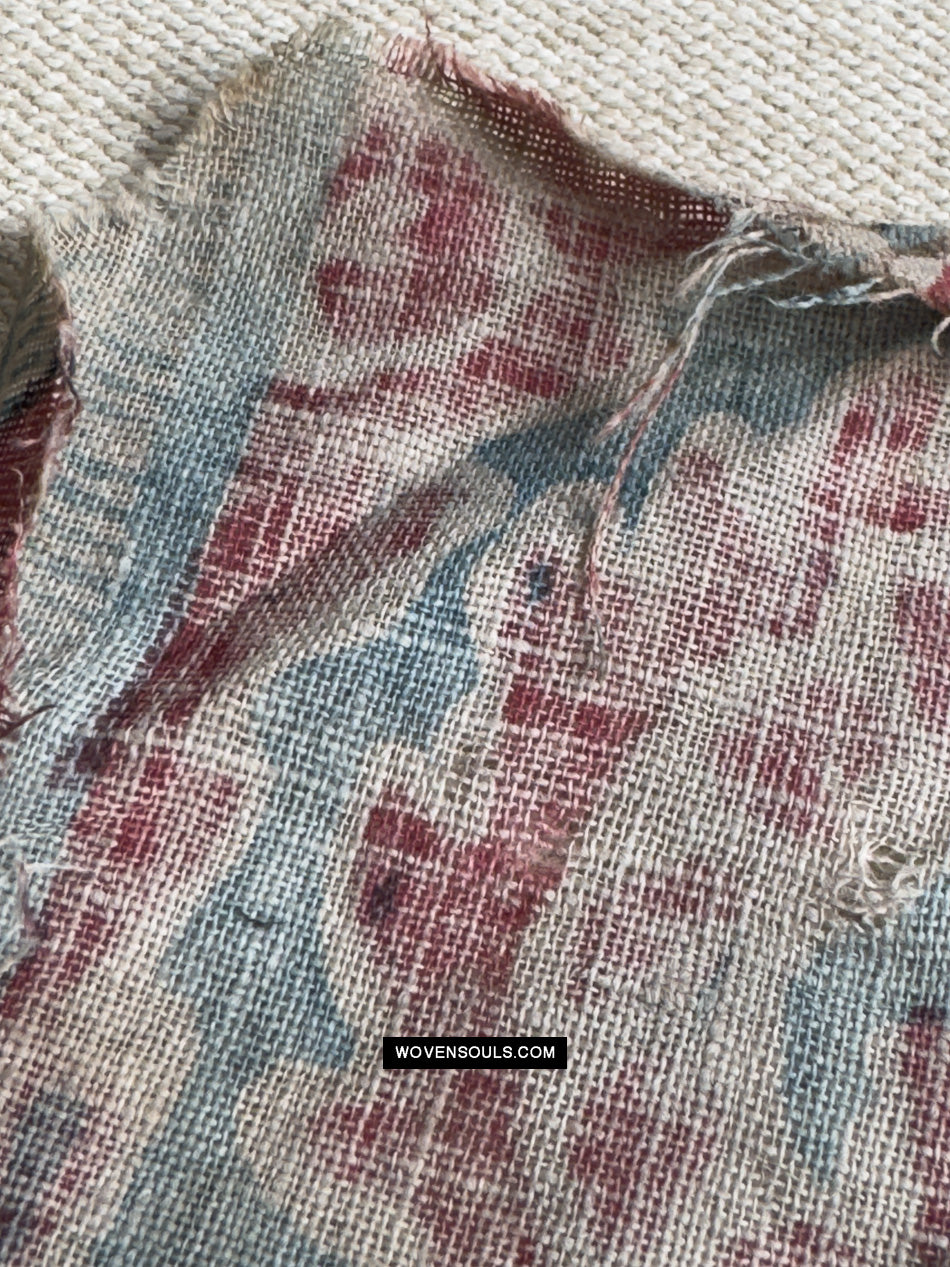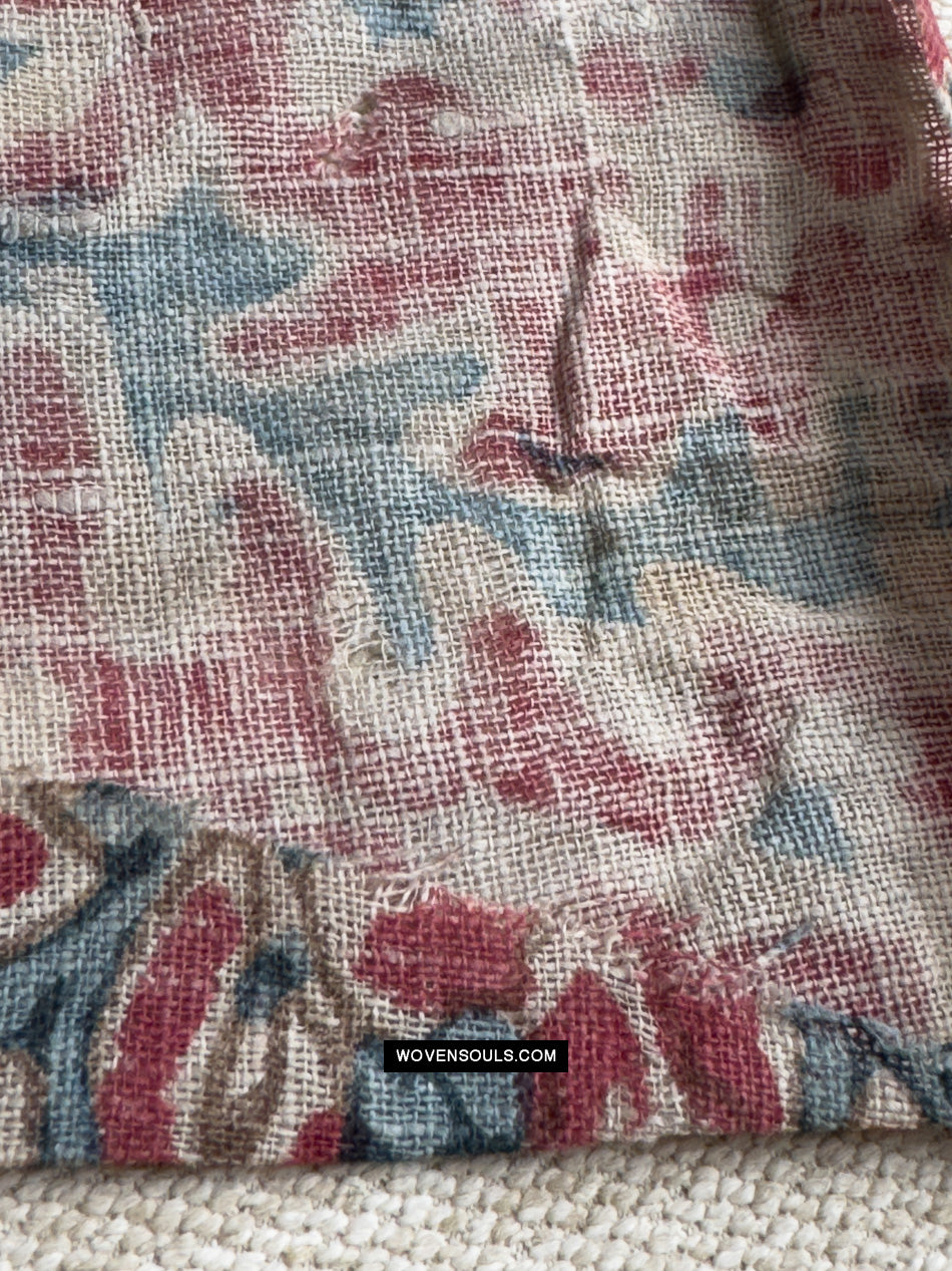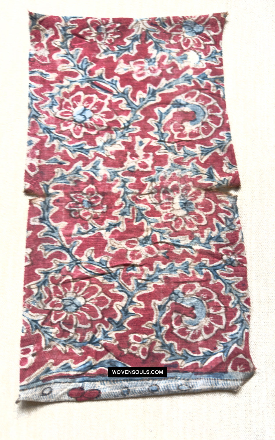 Amazing blue & salmon red/pink/peach on fine cloth.