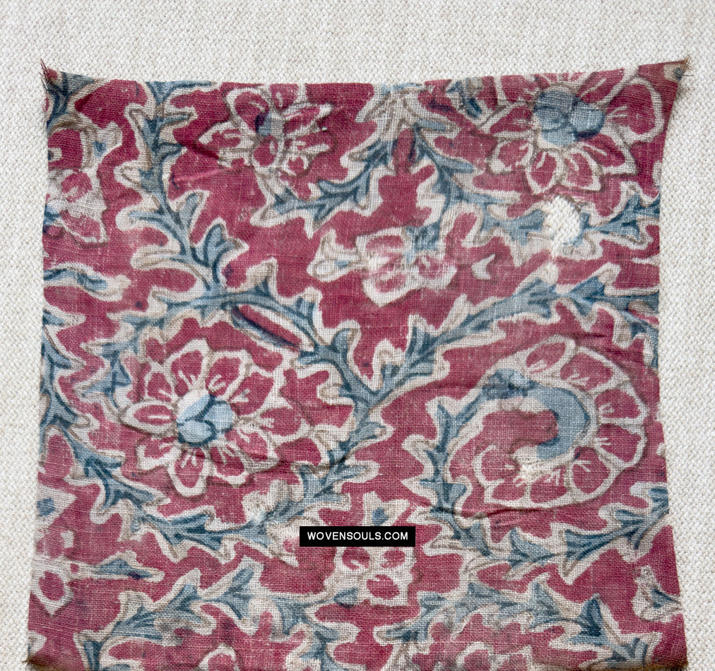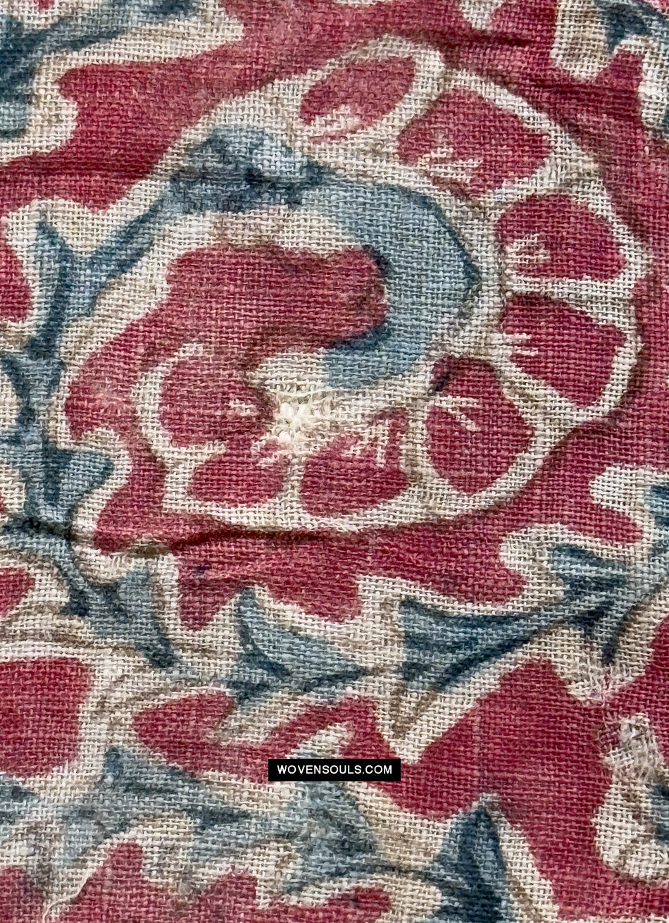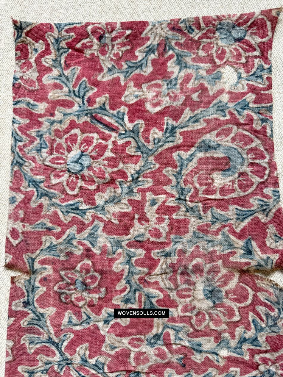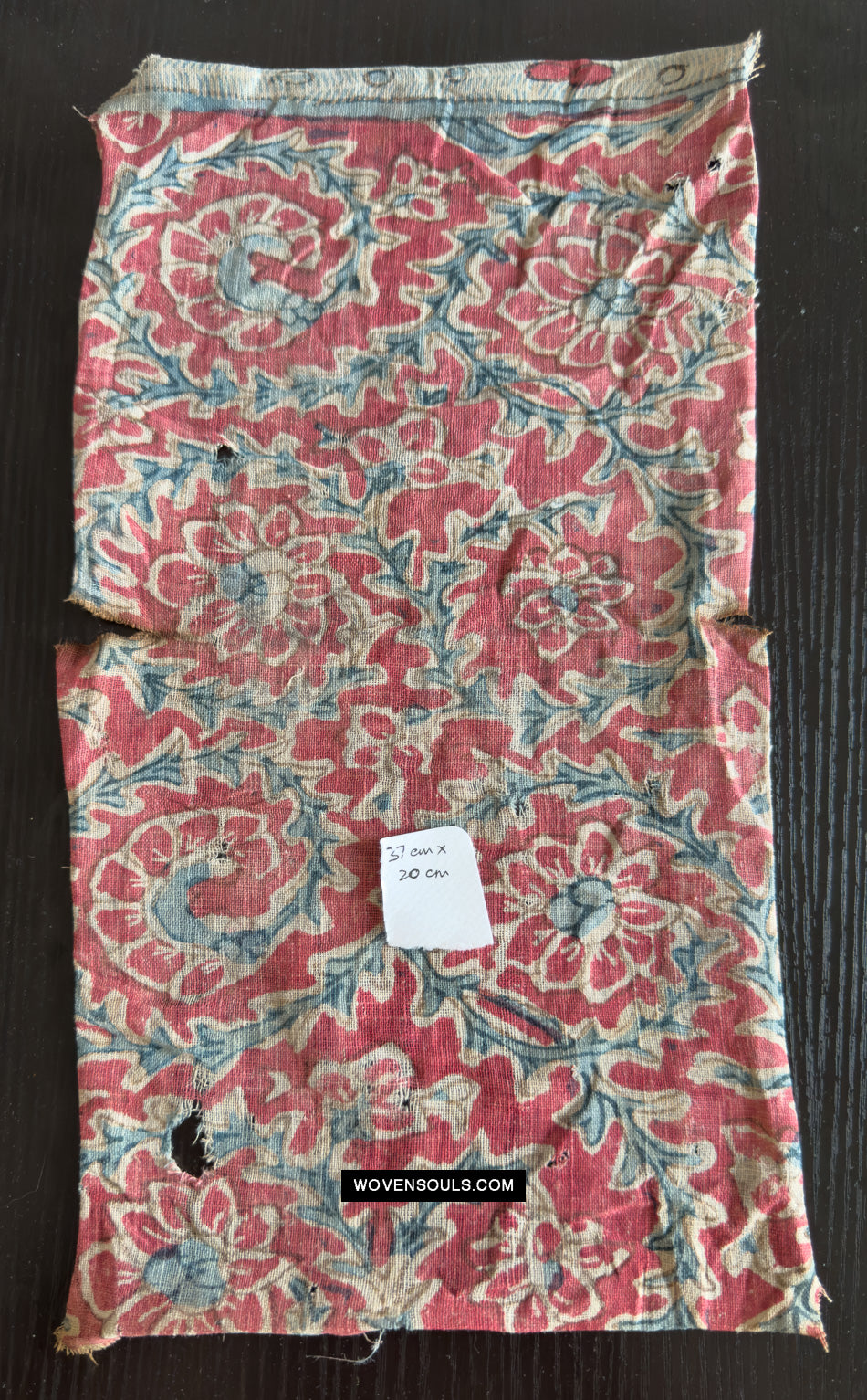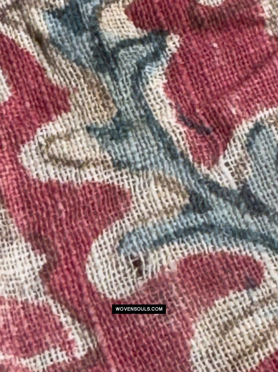 Amazing blue & salmon red/pink/peach on fine cloth.
