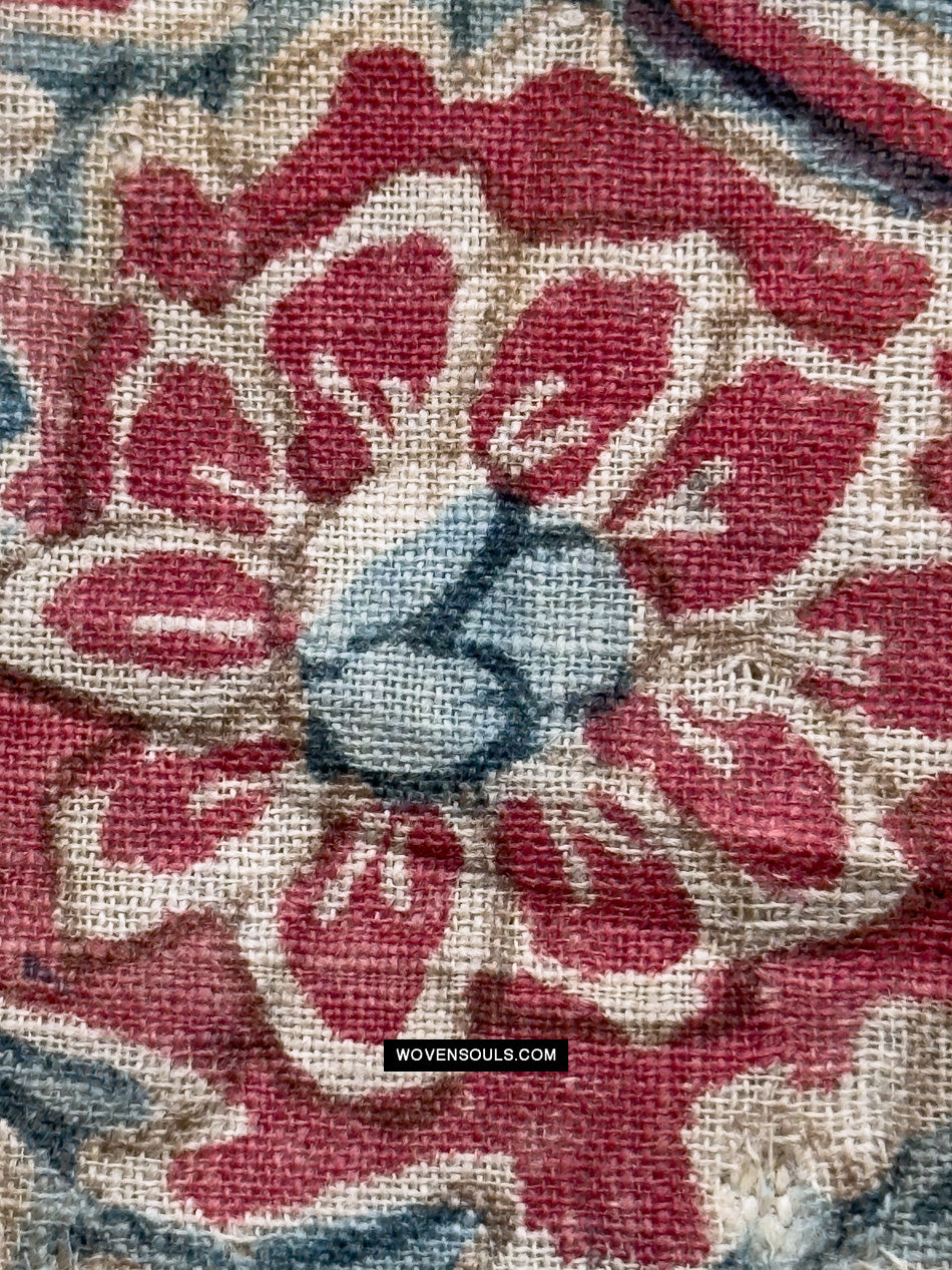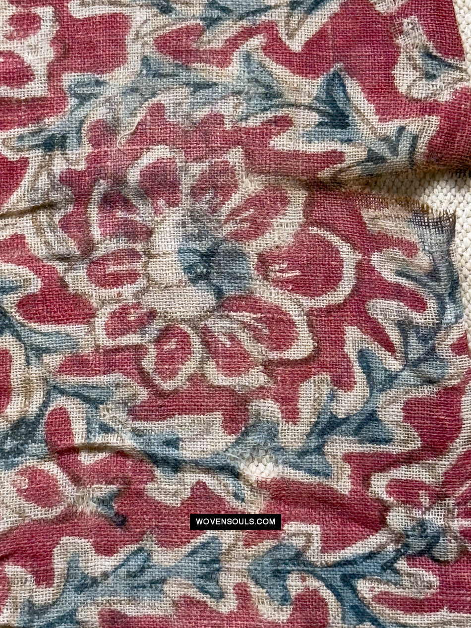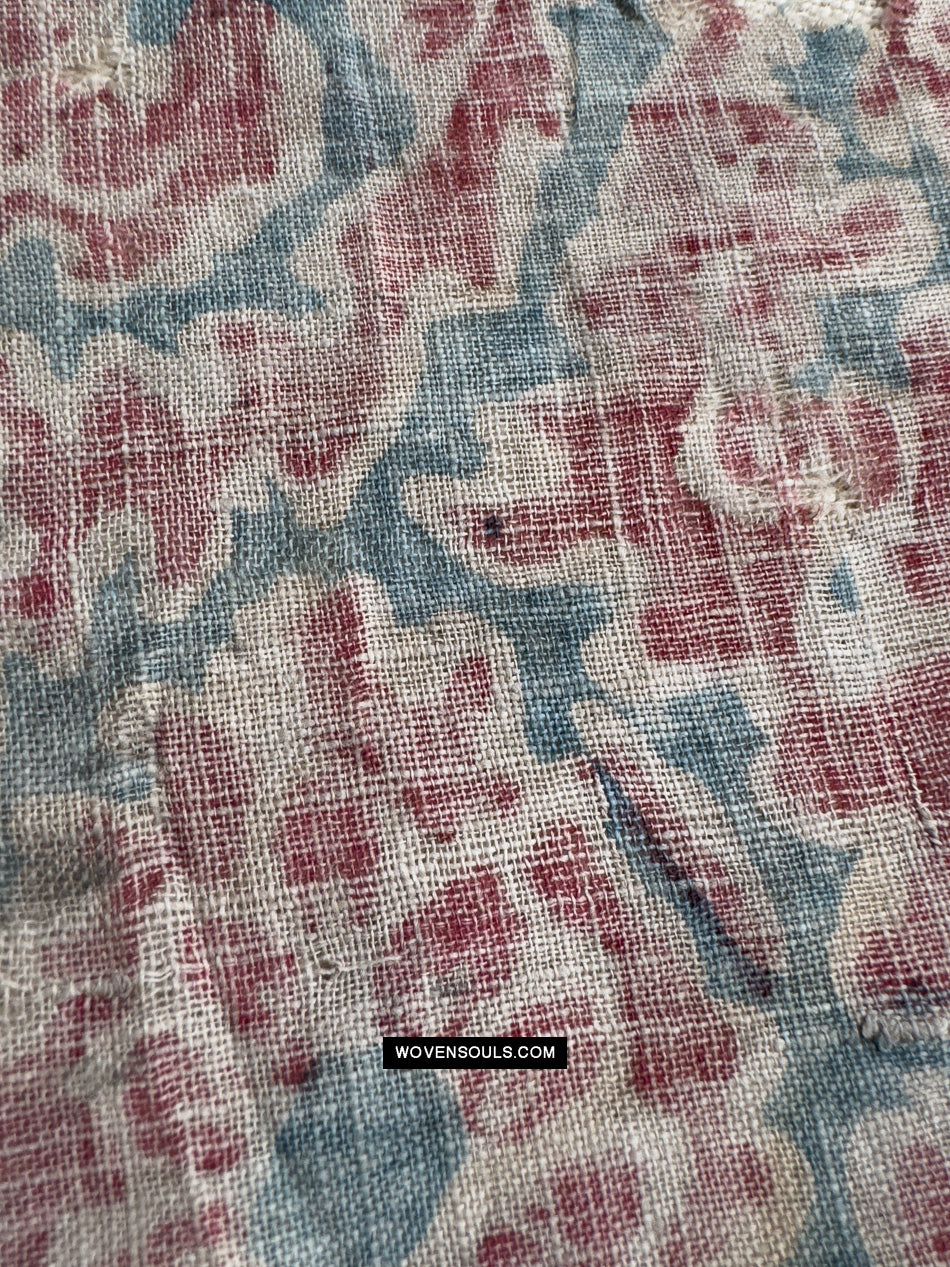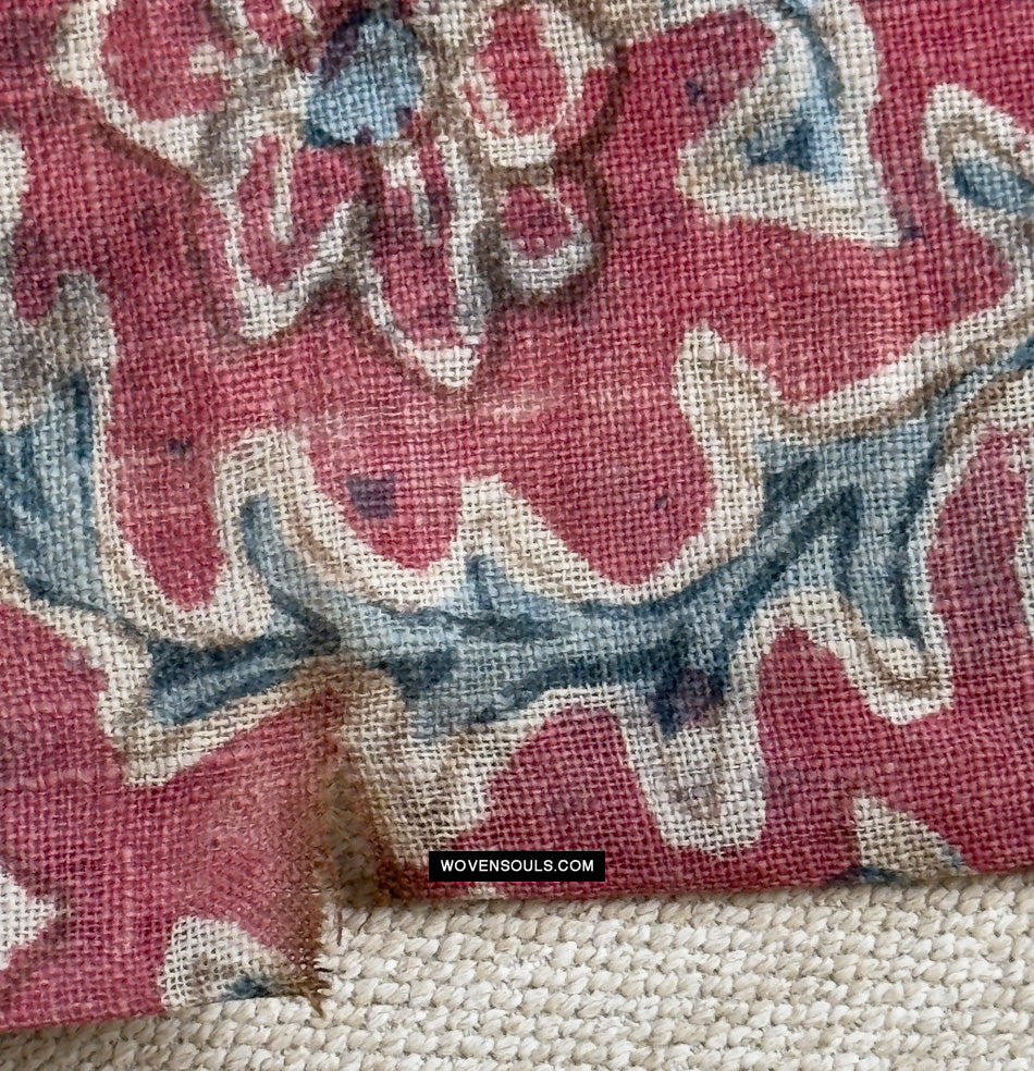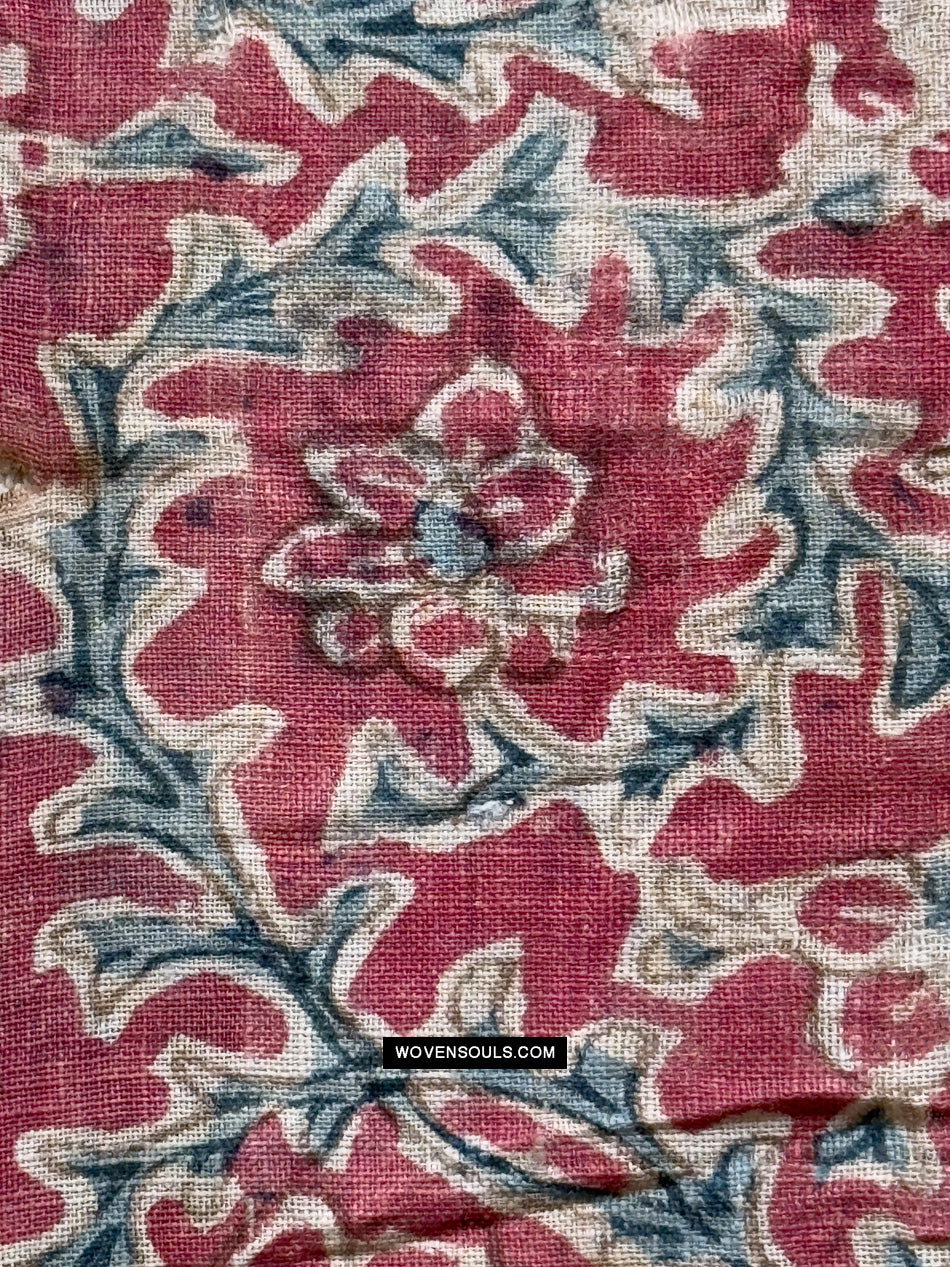 Amazing blue & salmon red/pink/peach on fine cloth.