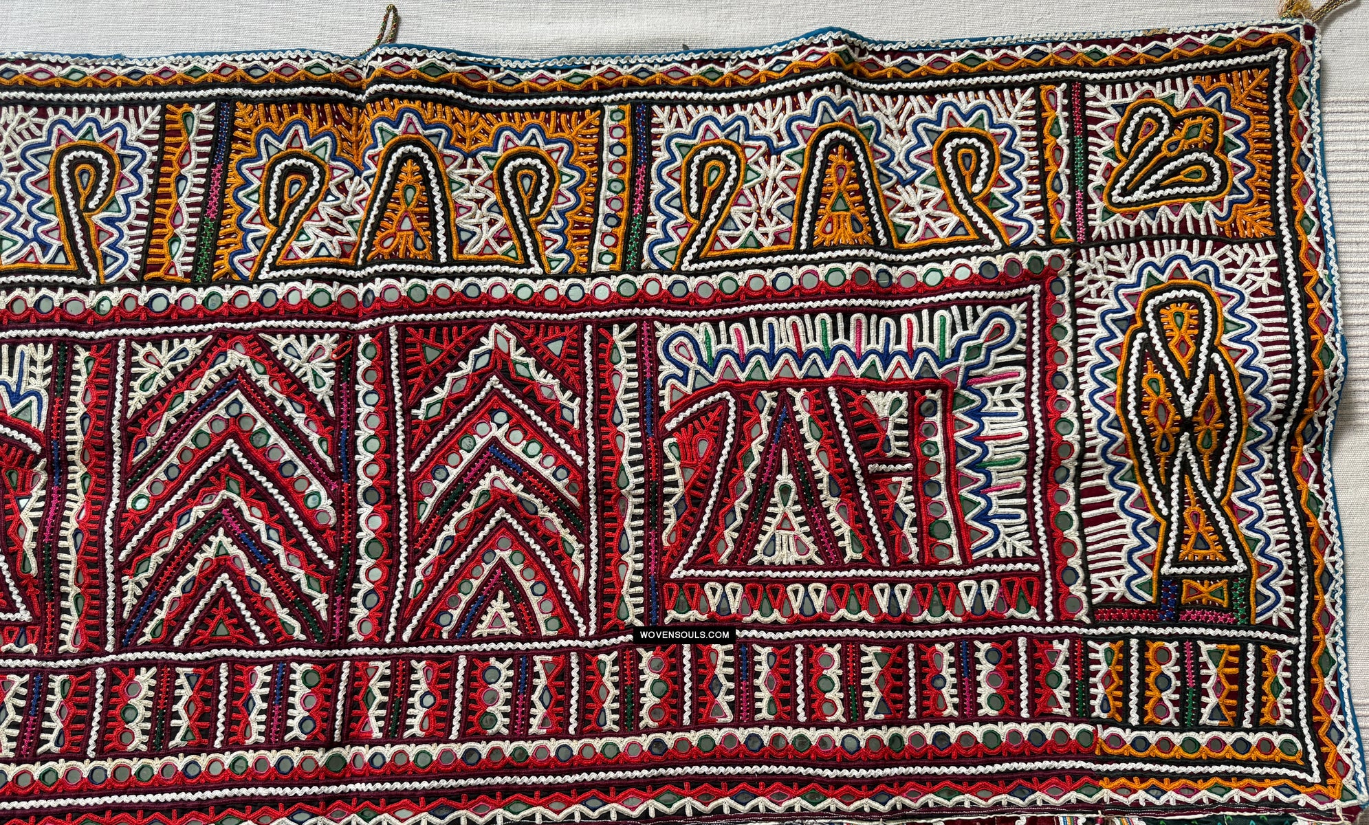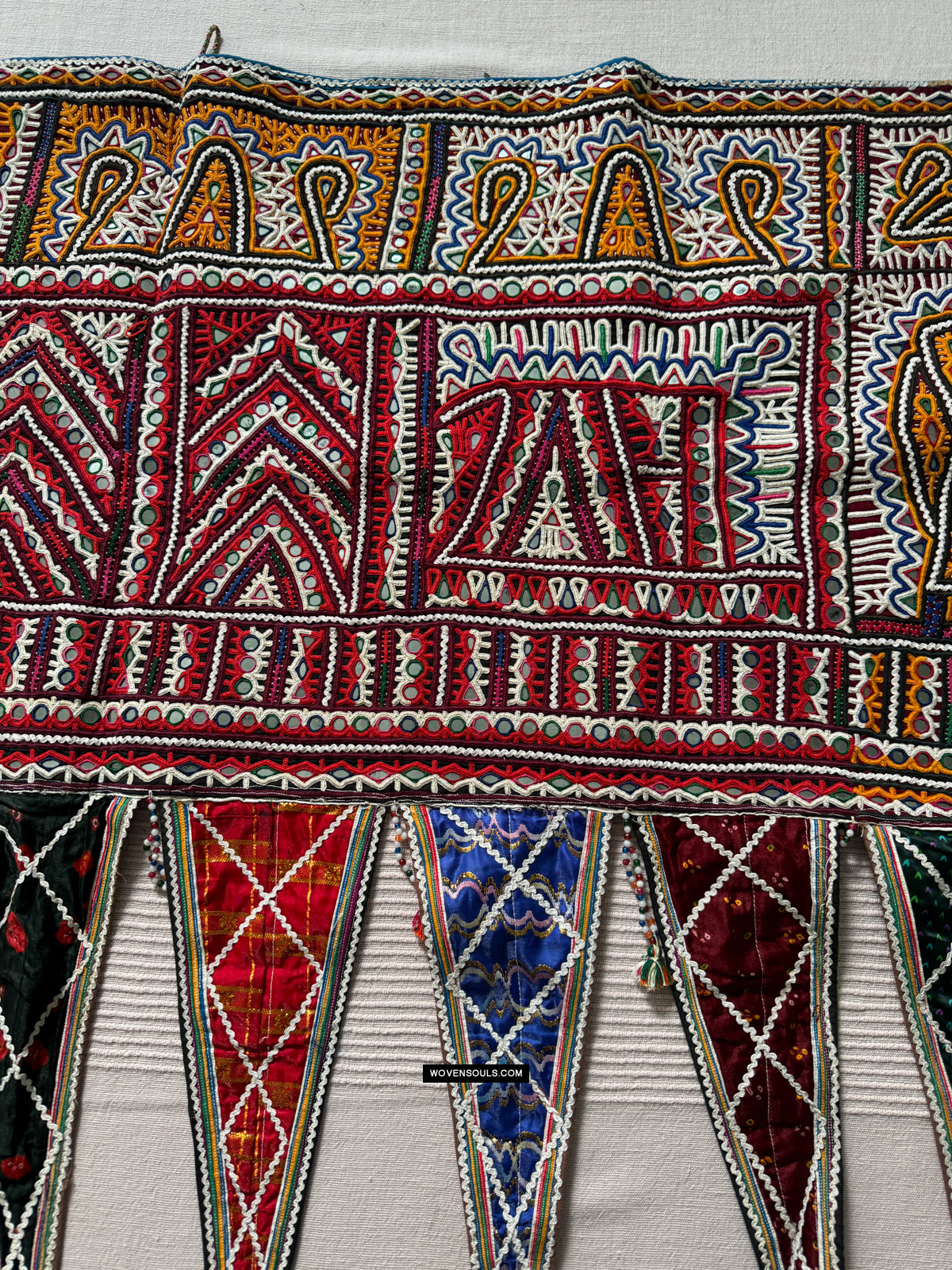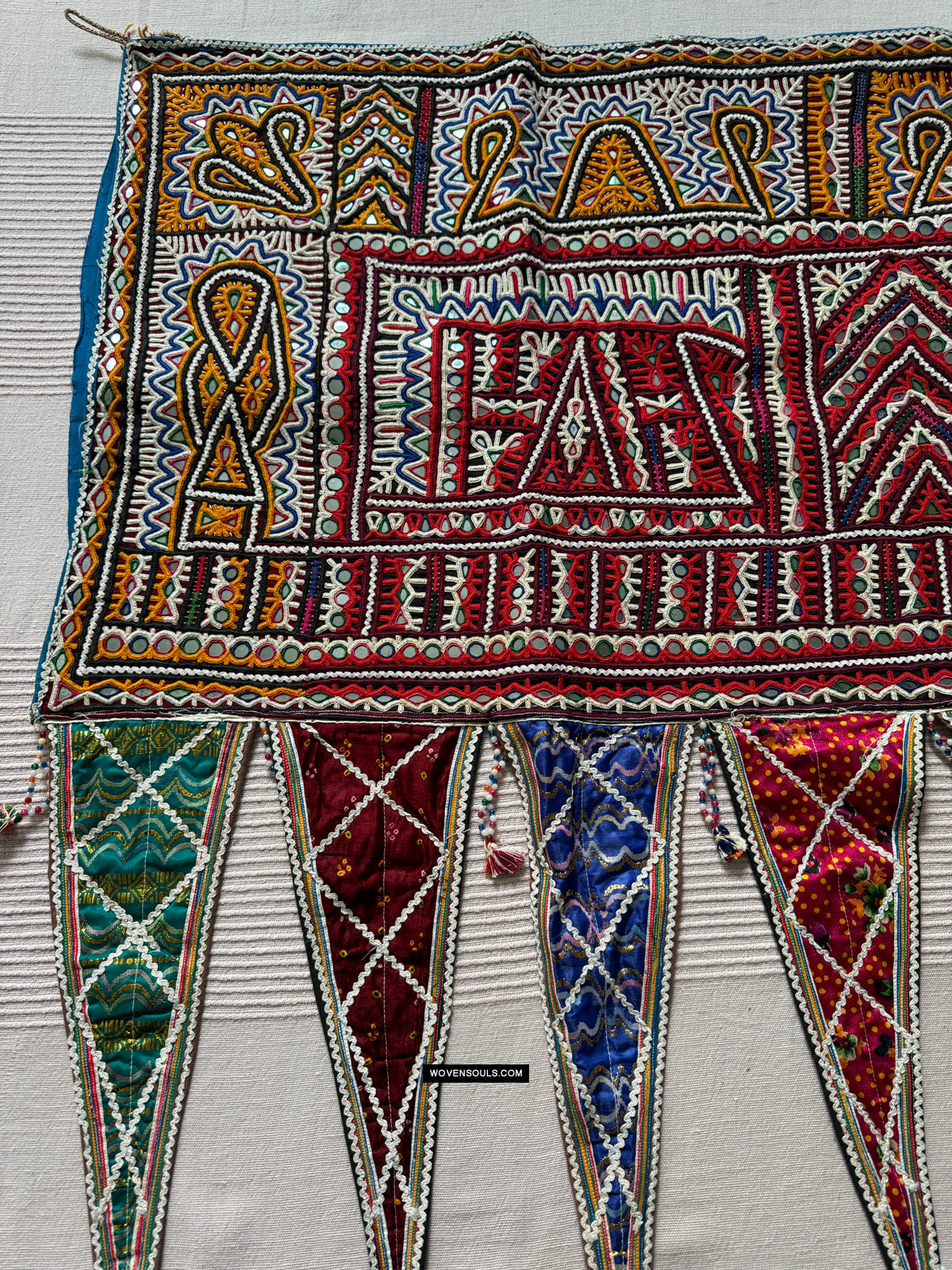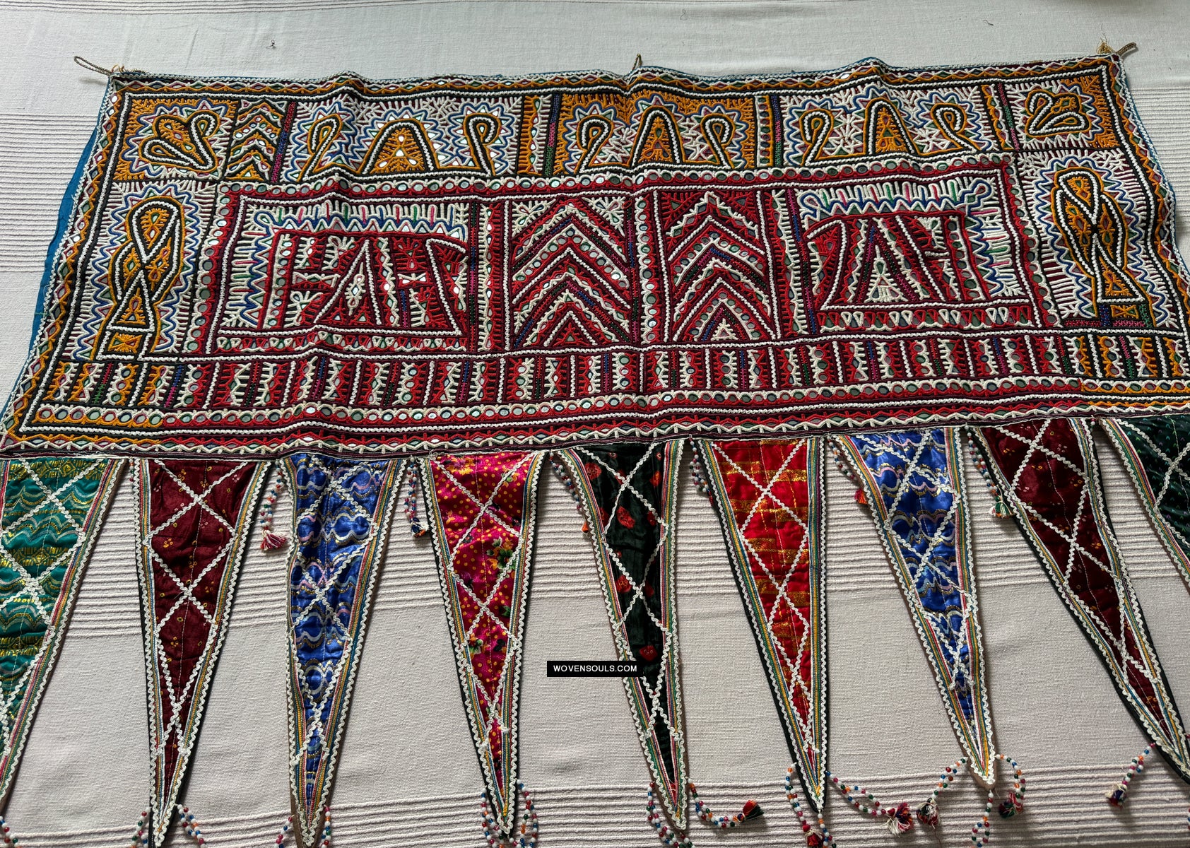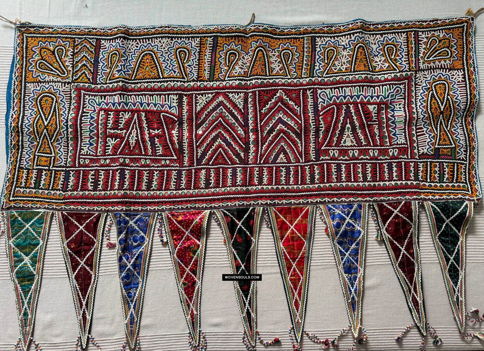983 Long Vintage Rabari Embroidery Toran Wall Decor Textile from Gujarat
