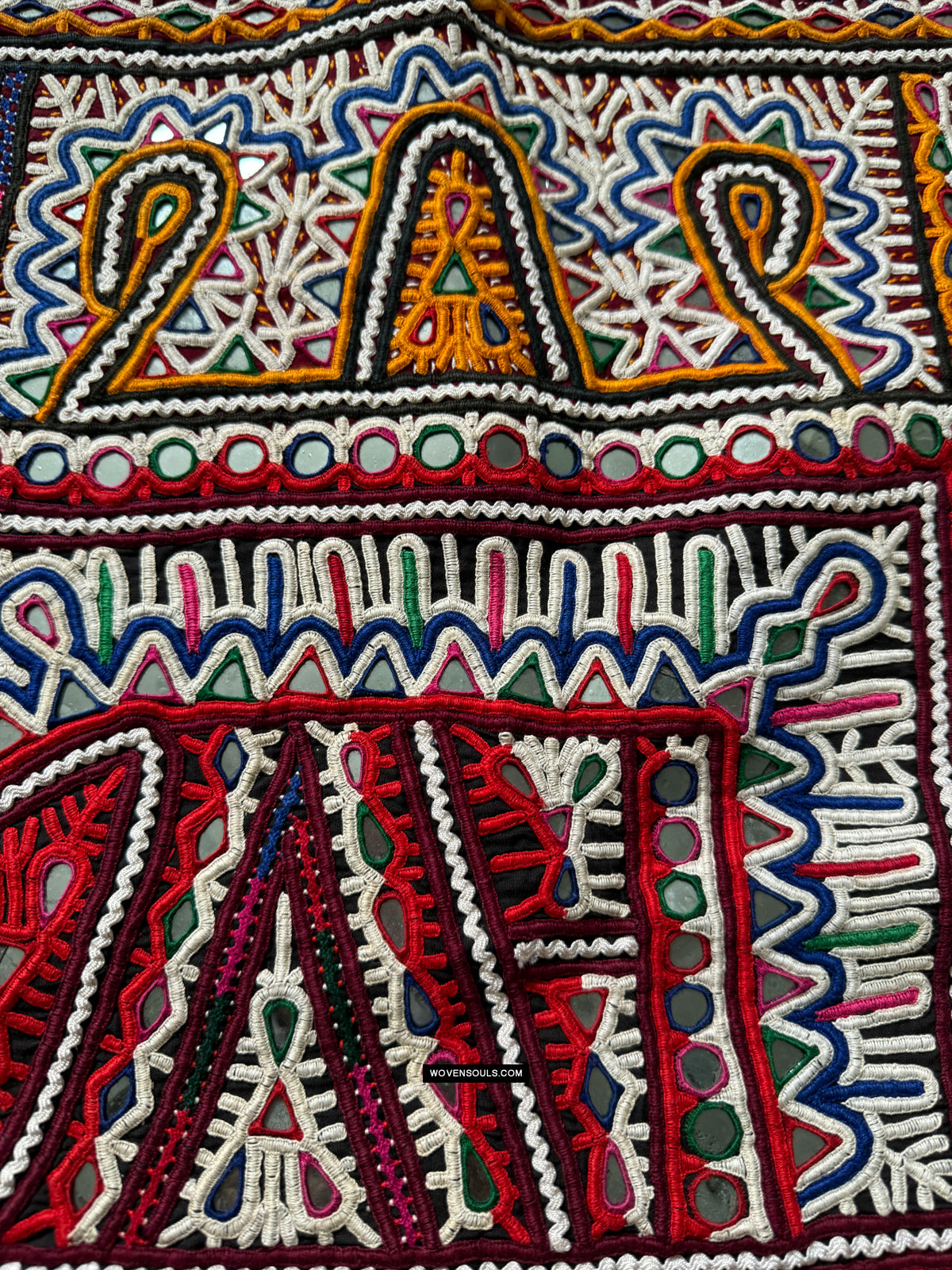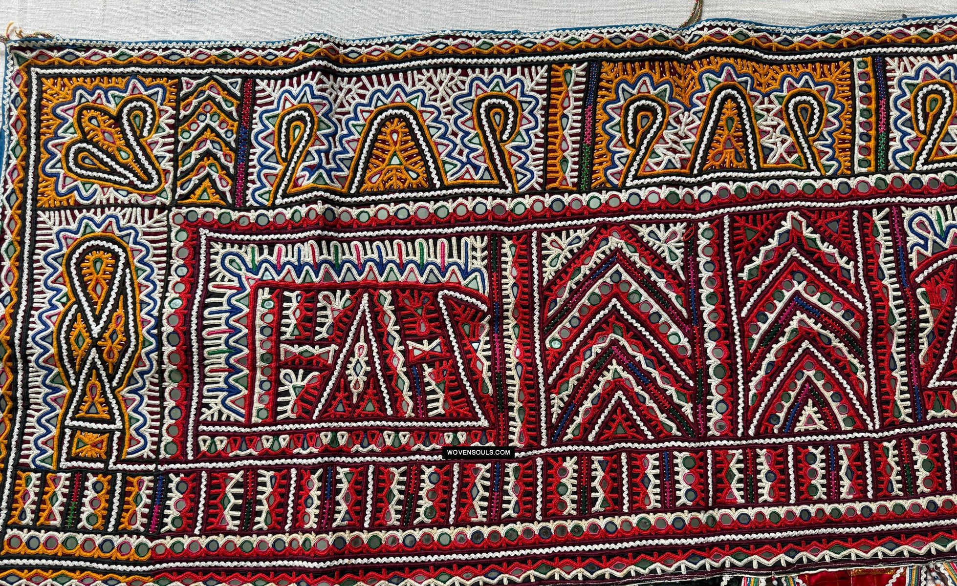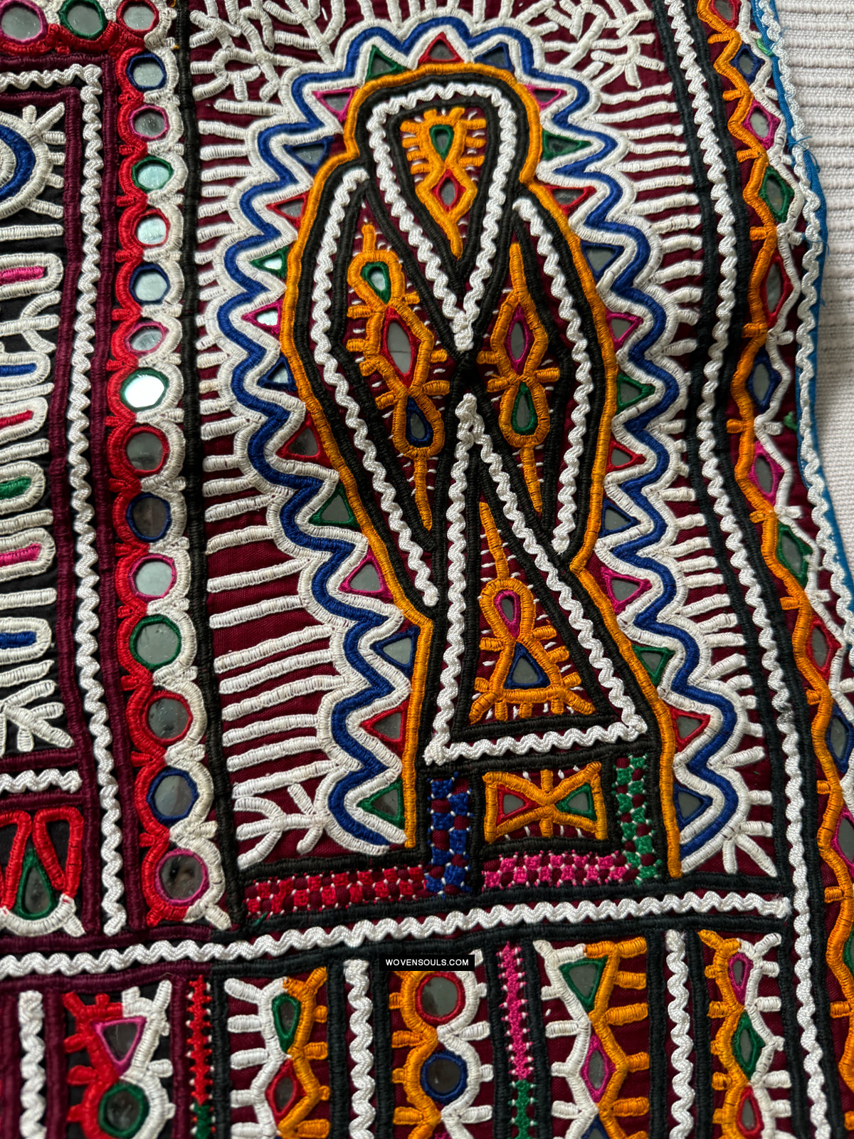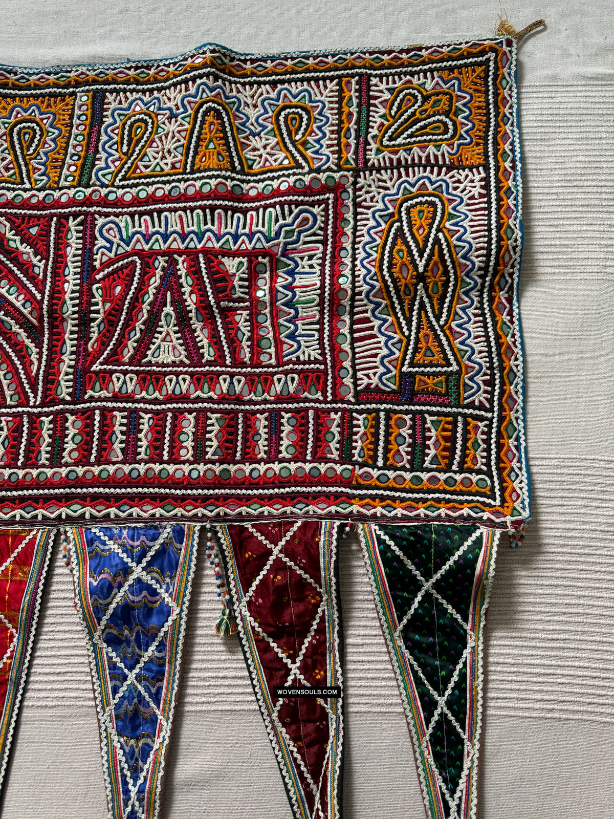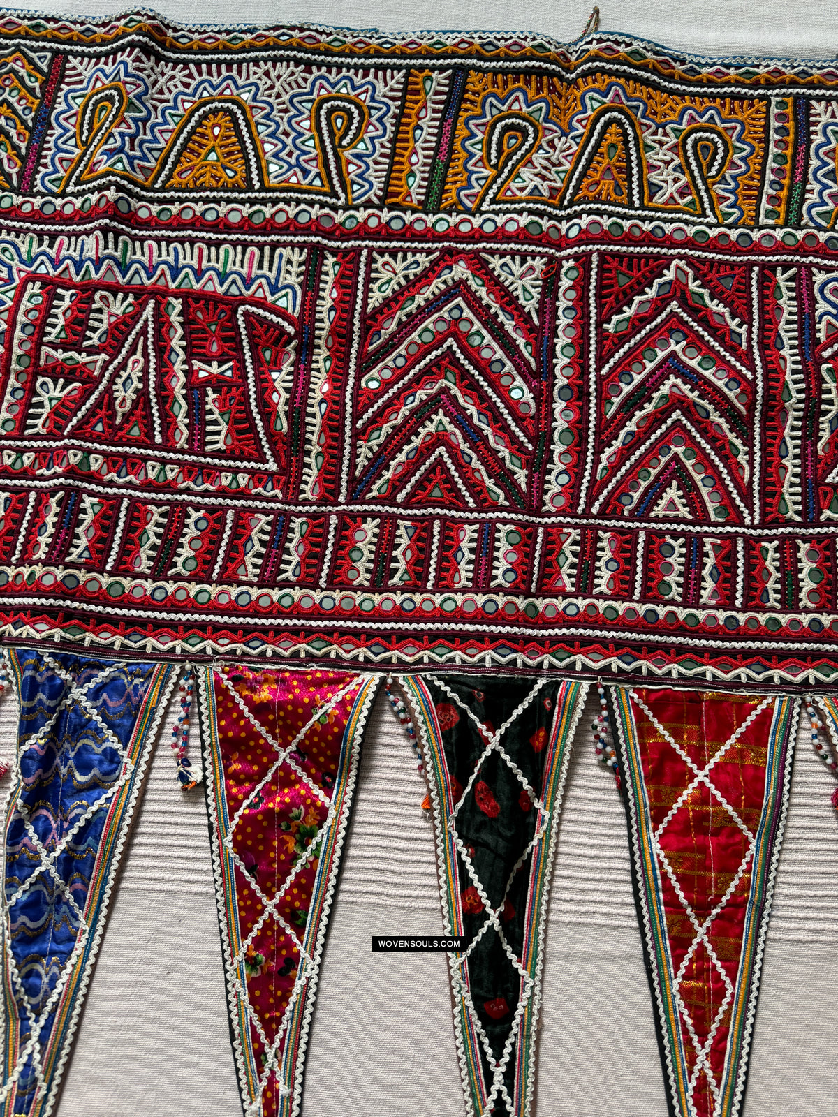 983 Long Vintage Rabari Embroidery Toran Wall Decor Textile from Gujarat