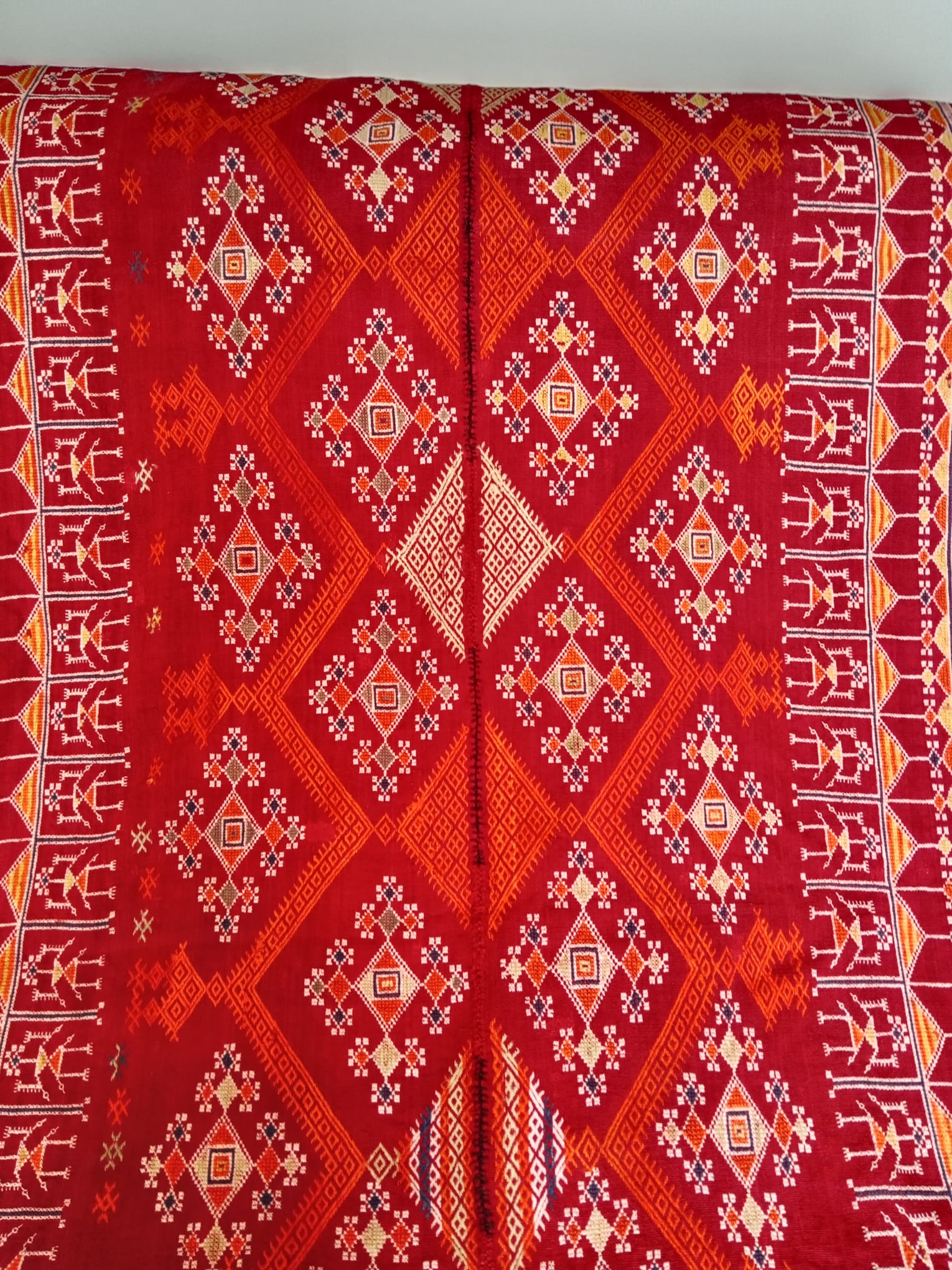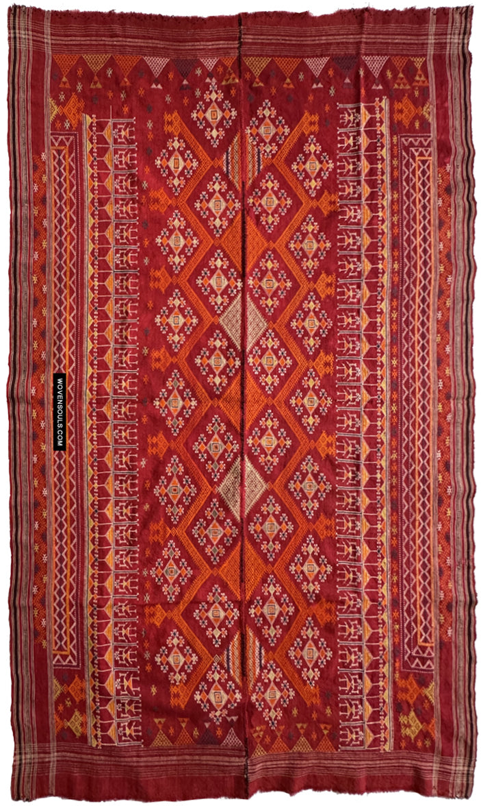 This item has spent a lifetime being used for the purpose of its creation with the original artist/user. Signs of this life lived heartily may be present on the piece in the form of stains, thread loss, loose threads, holes, tears, color run and other imperfections. Therefore the condition must be assumed to be “not” perfect. More photos of such imperfections will be provided on request.
