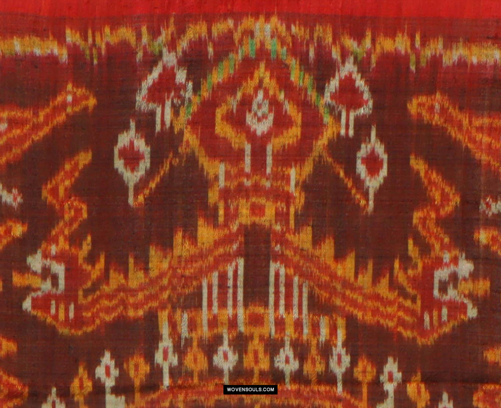 Why do I say that? In creating ikat, the design is planned first, then the threads are laid out parallel to each other and dyed according to the design intended. At the time of dyeing, the threads are free floating and not attached to each other. It is only after the unattached threads are dyed in the many colors needed, that they are woven in together. And naturally some misalignment creeps in during weaving and gives rise to a rough look on each motif at the color-change edges. In places like Pochampally, the designs are large, and each color on a thread occupies a few centimeters or even a few inches and the misalignment can be seen over a few millimeters at the edge of every color. (The error must necessarily be a small fraction of the total otherwise the intended design would not be evident at all and would appear as a messy hodgepodge of colors.) On the other hand, in antique Pidans from Cambodia the color changes every few millimeters. So, the scope for misalignment is much much less. The time consumed and the attention required to produce motifs that are precise to a millimeter is enormous. And that is why old ikats from Cambodia are the finest among the ones I've seen.