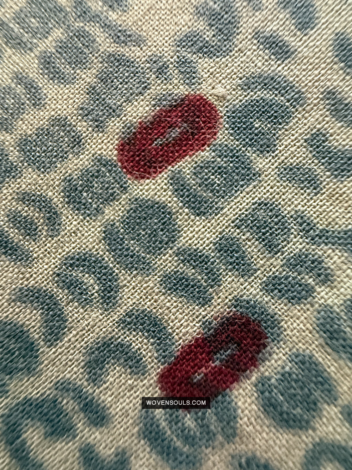 This item has spent a lifetime being used for the purpose of its creation with the original artist/user. Signs of this life lived heartily must be expected on the piece in the form of stains, thread loss, loose threads, holes, tears, color run, repairs and other imperfections. Therefore the condition must be assumed to be “not” perfect. More photos of such imperfections will be provided on request.