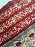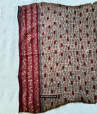 This fragment has been saved from a fire - therefore has burn marks present. Holes and stains. Edges not even. This fragment is one of several sections that have been saved from the same fire-struck cloth.