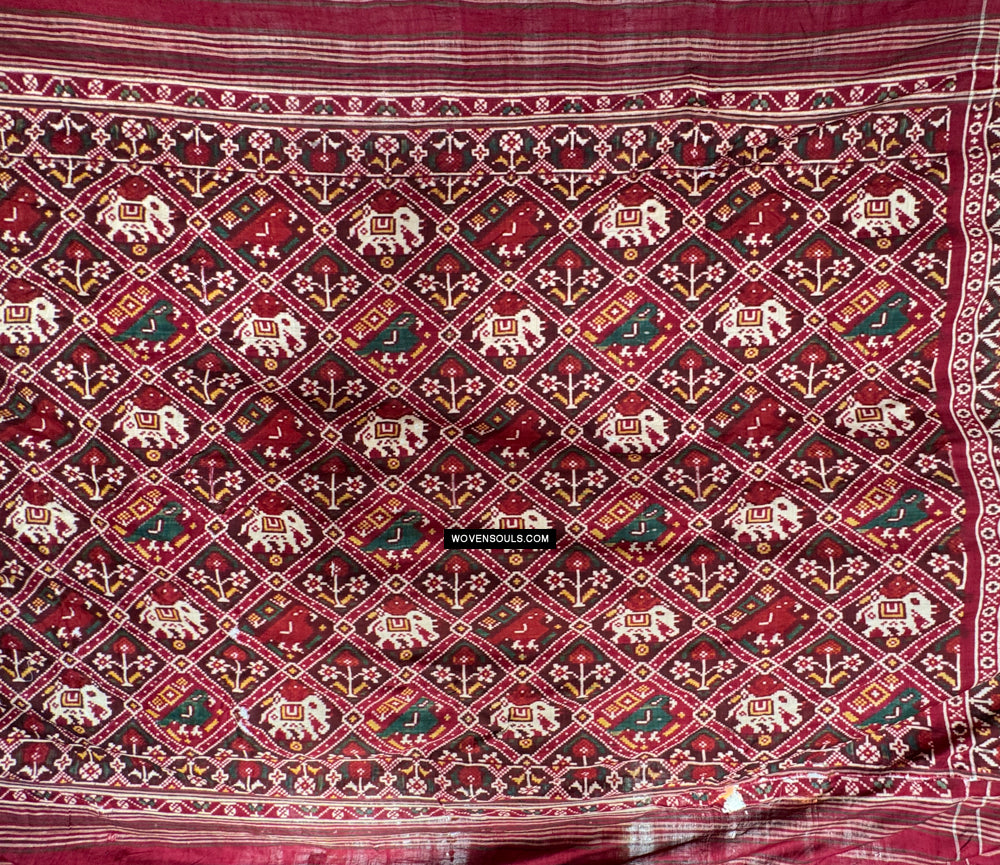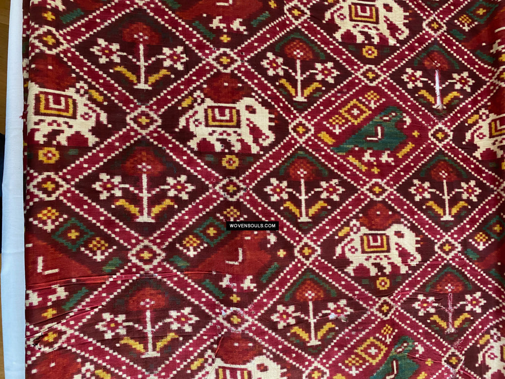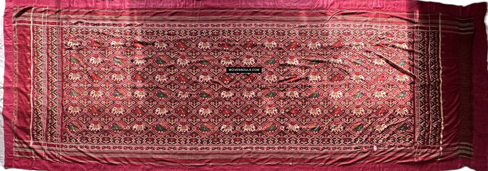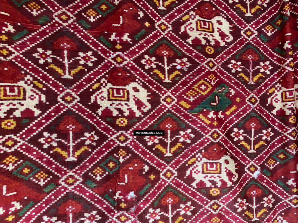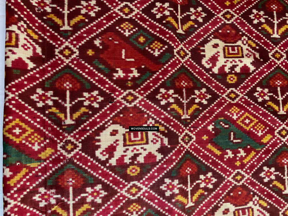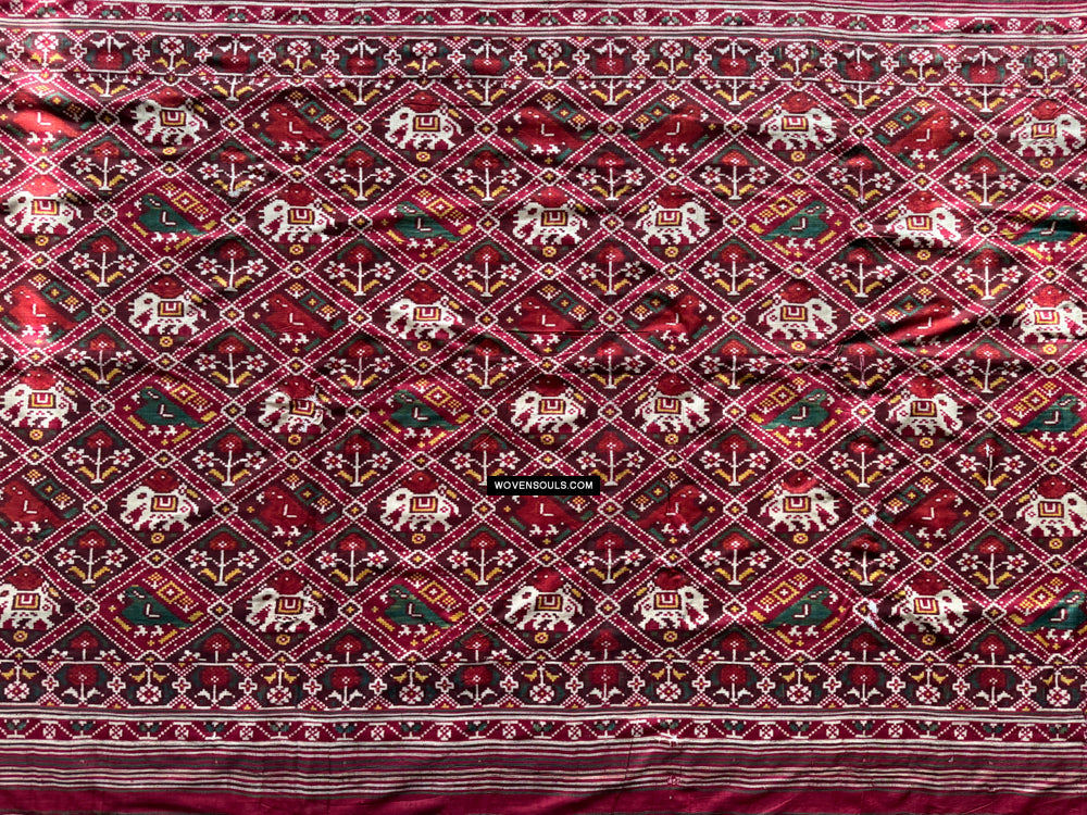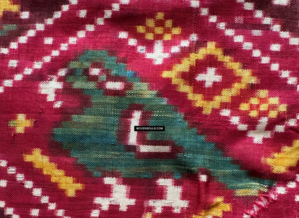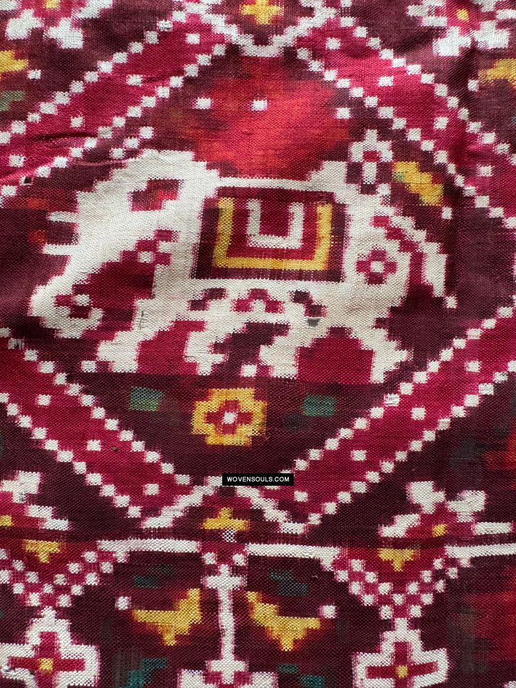 Rare Antique Heirloom Patan Patola Double Ikat Elephant Parrot motif