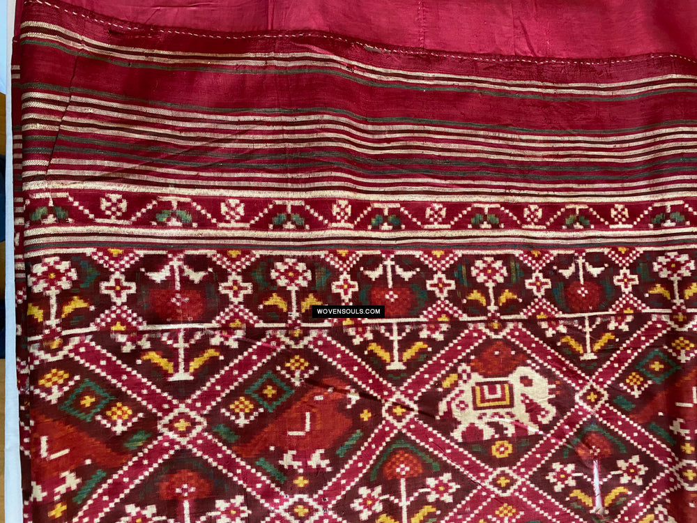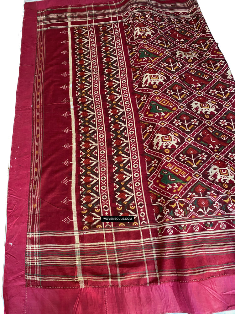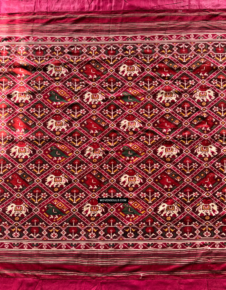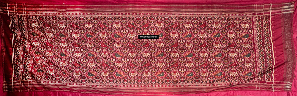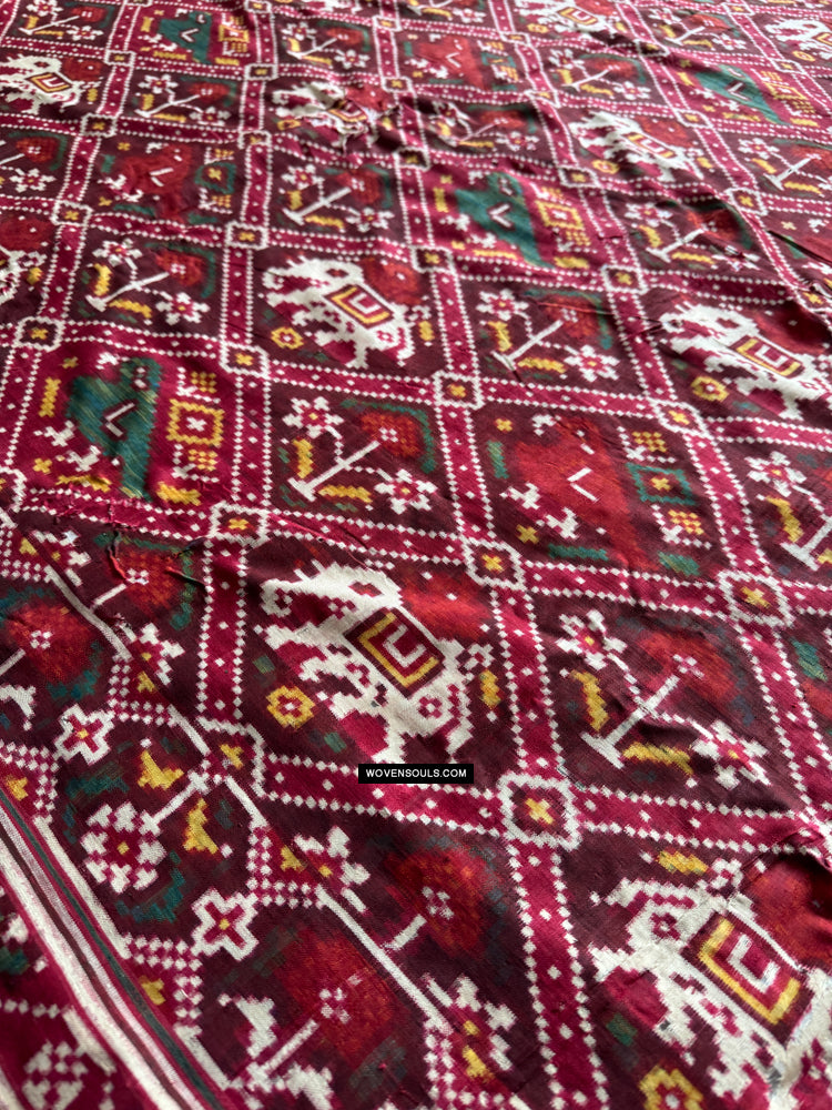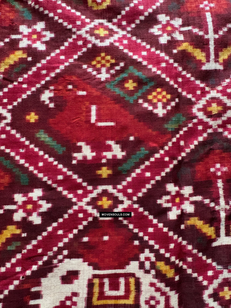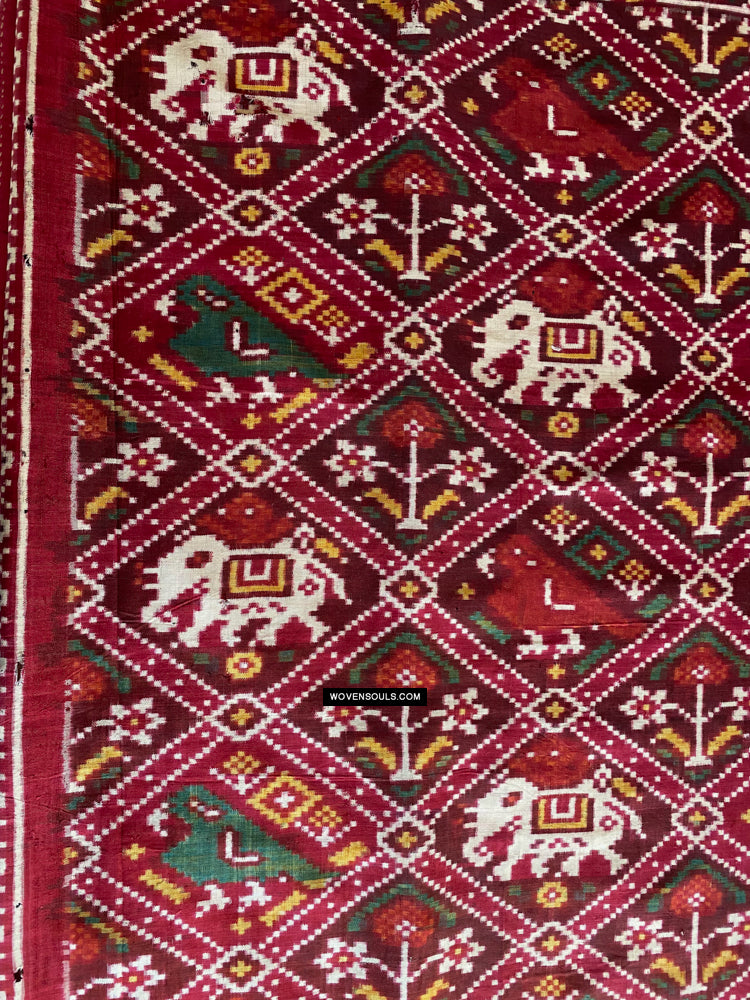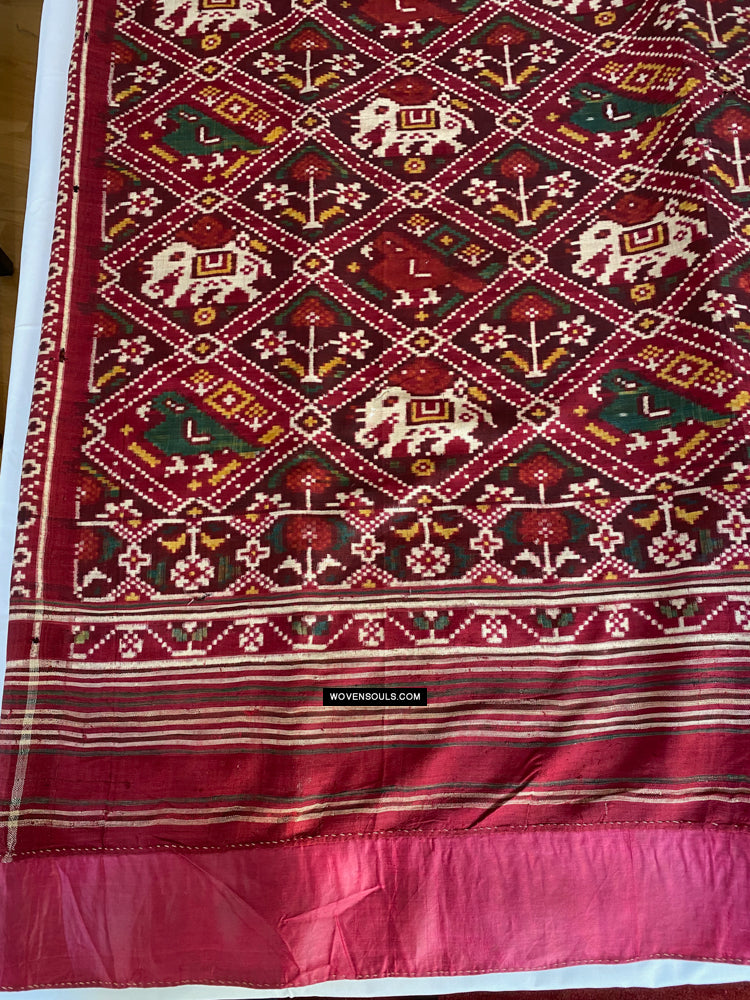 Rare Antique Heirloom Patan Patola Double Ikat Elephant Parrot motif