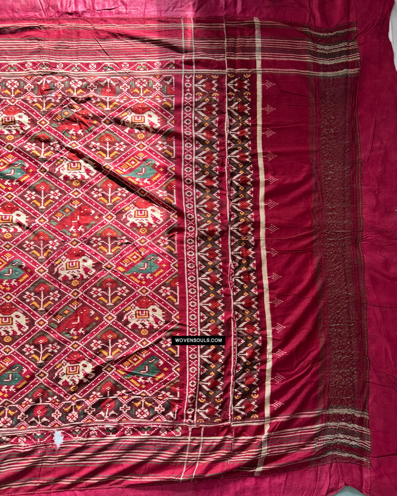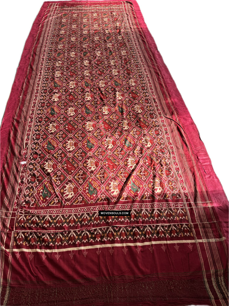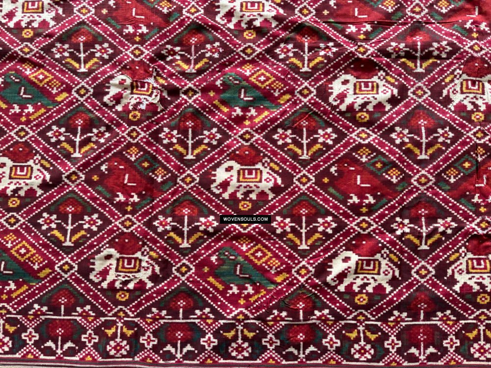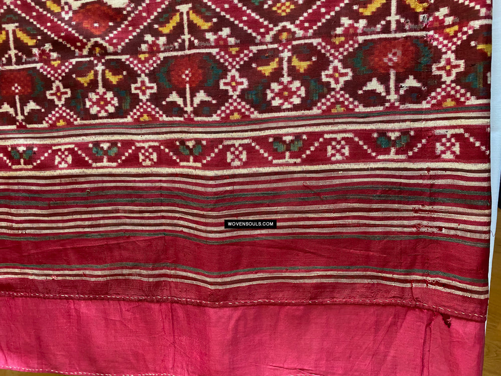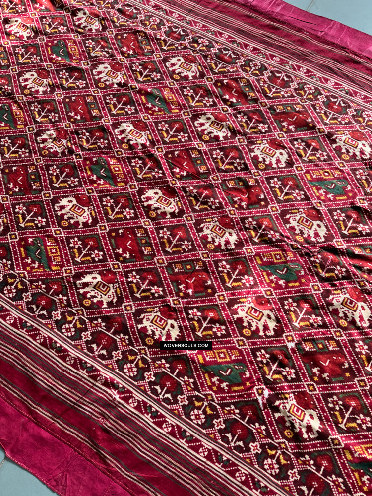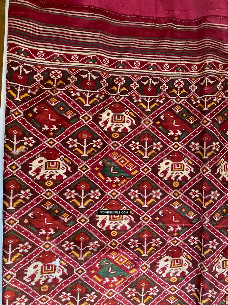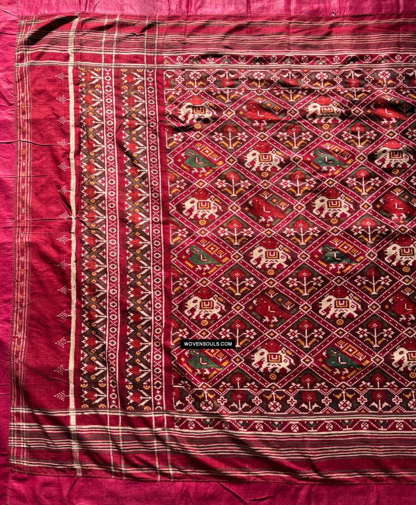 Rare Antique Heirloom Patan Patola Double Ikat Elephant Parrot motif