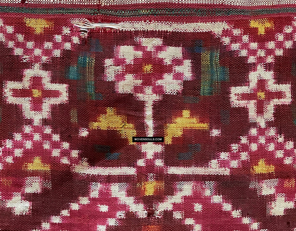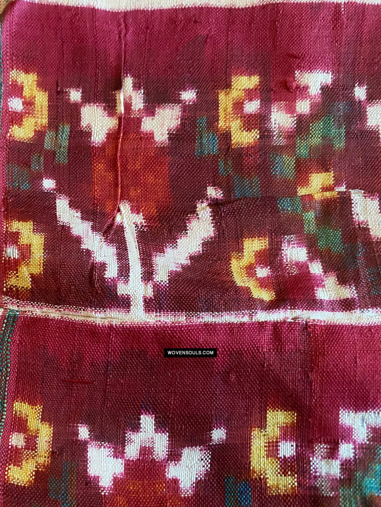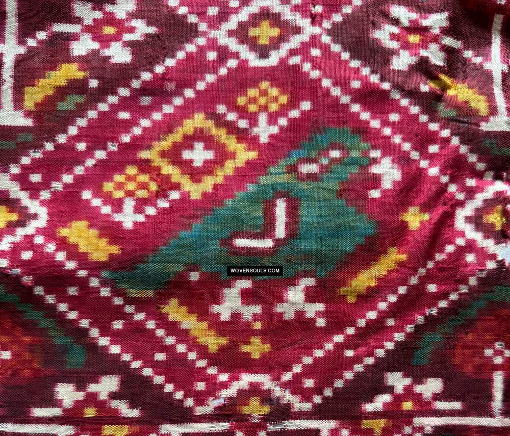 1986 SOLD Antique Heirloom Patan Patola Double Ikat Sari Fragment Elephant Parrot motif