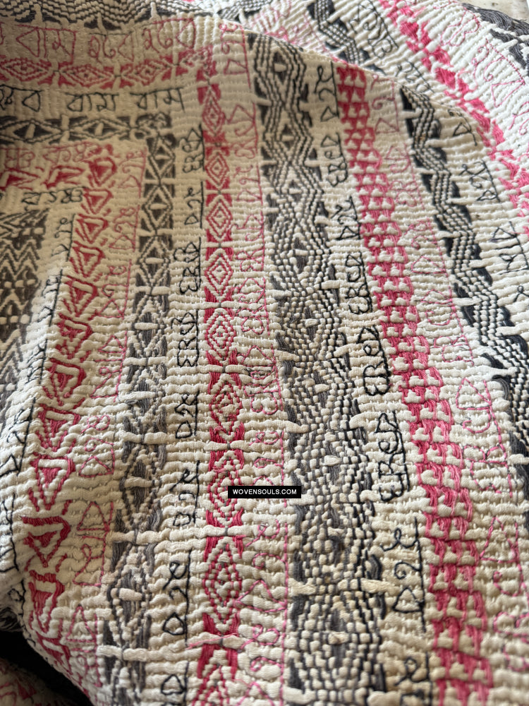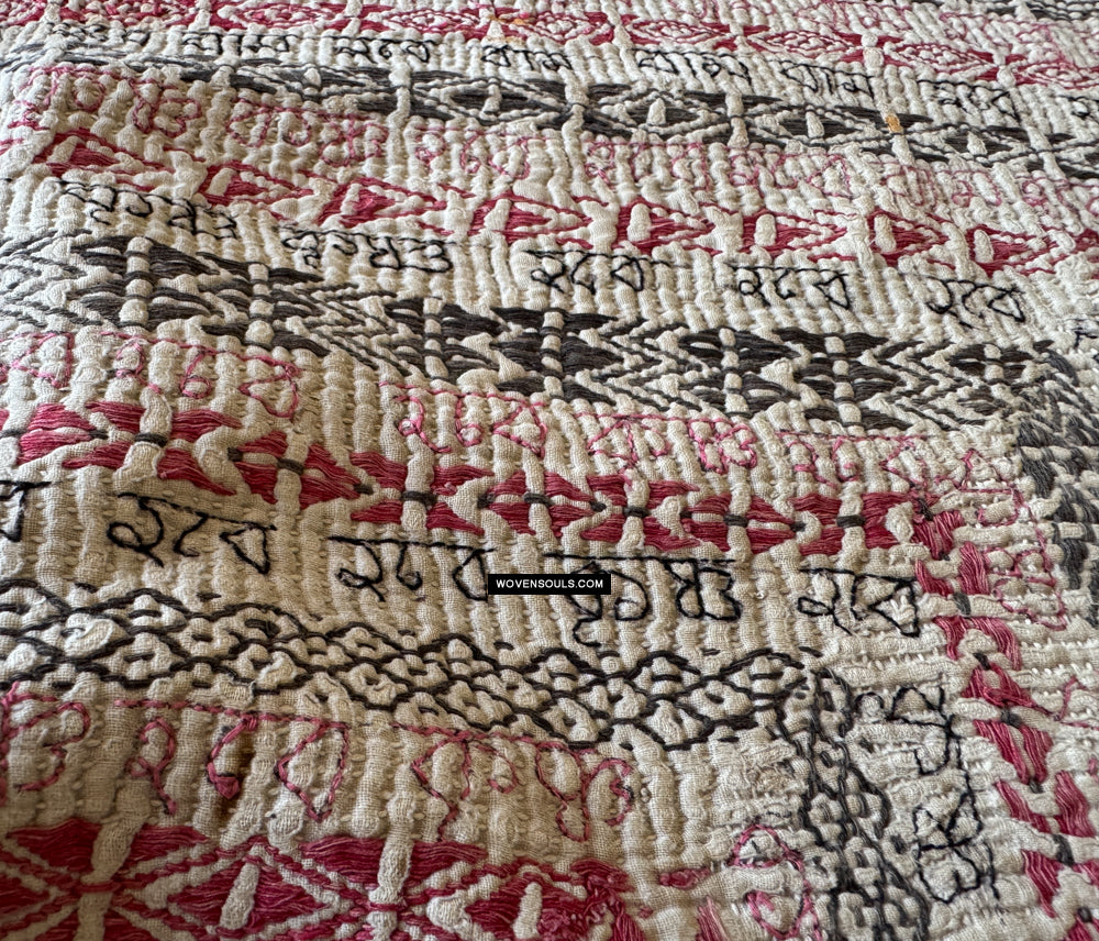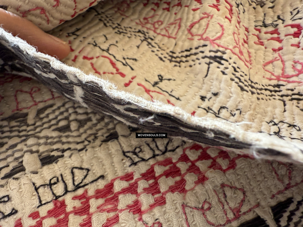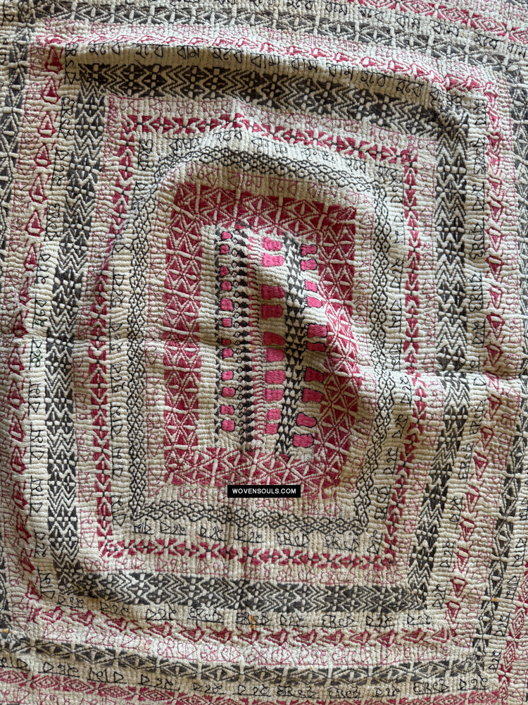 An outstanding Kantha Textile with verses embroidered onto the layers of fine cloth.