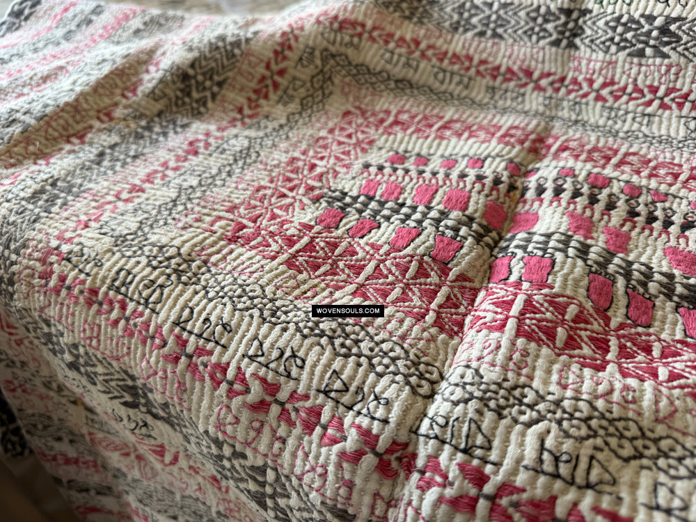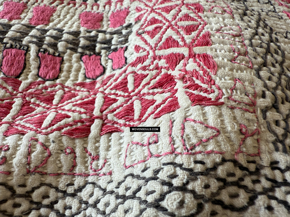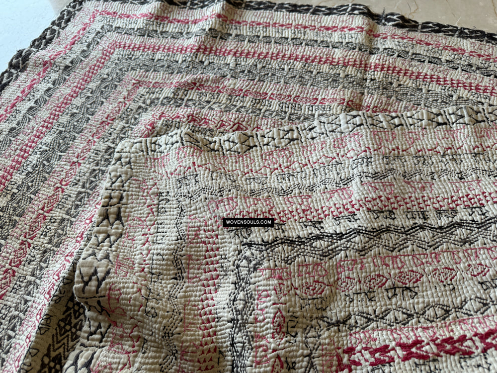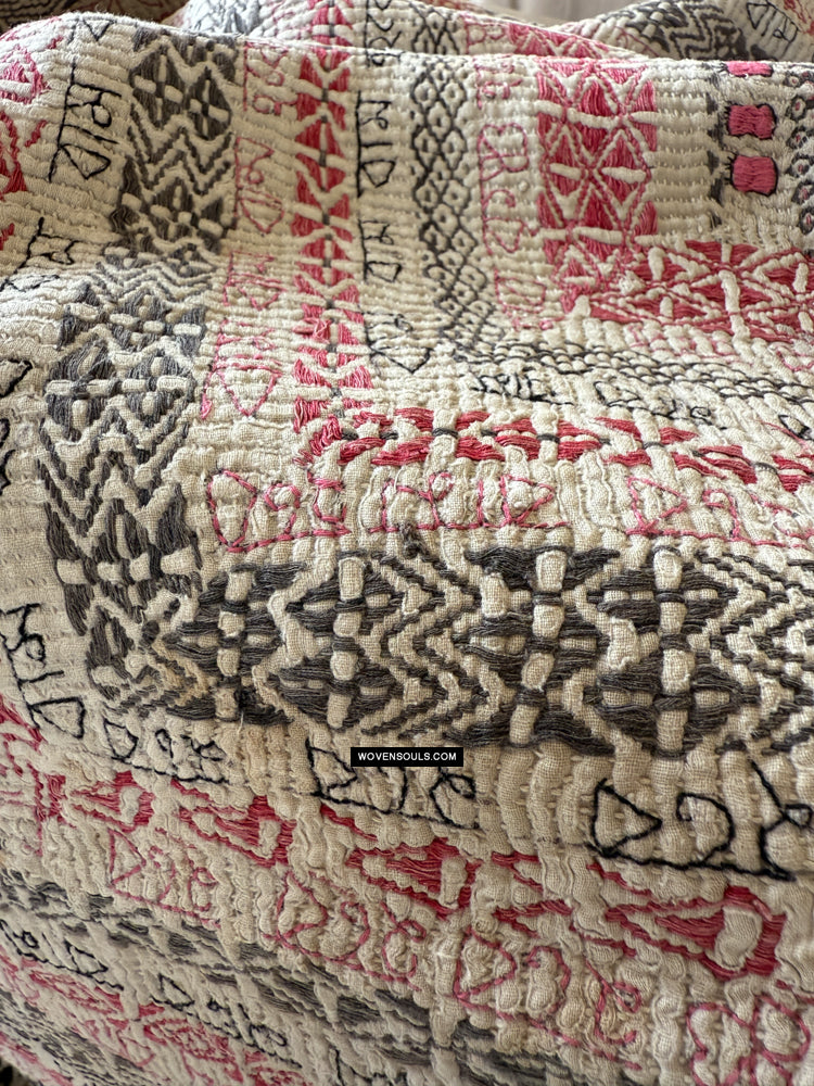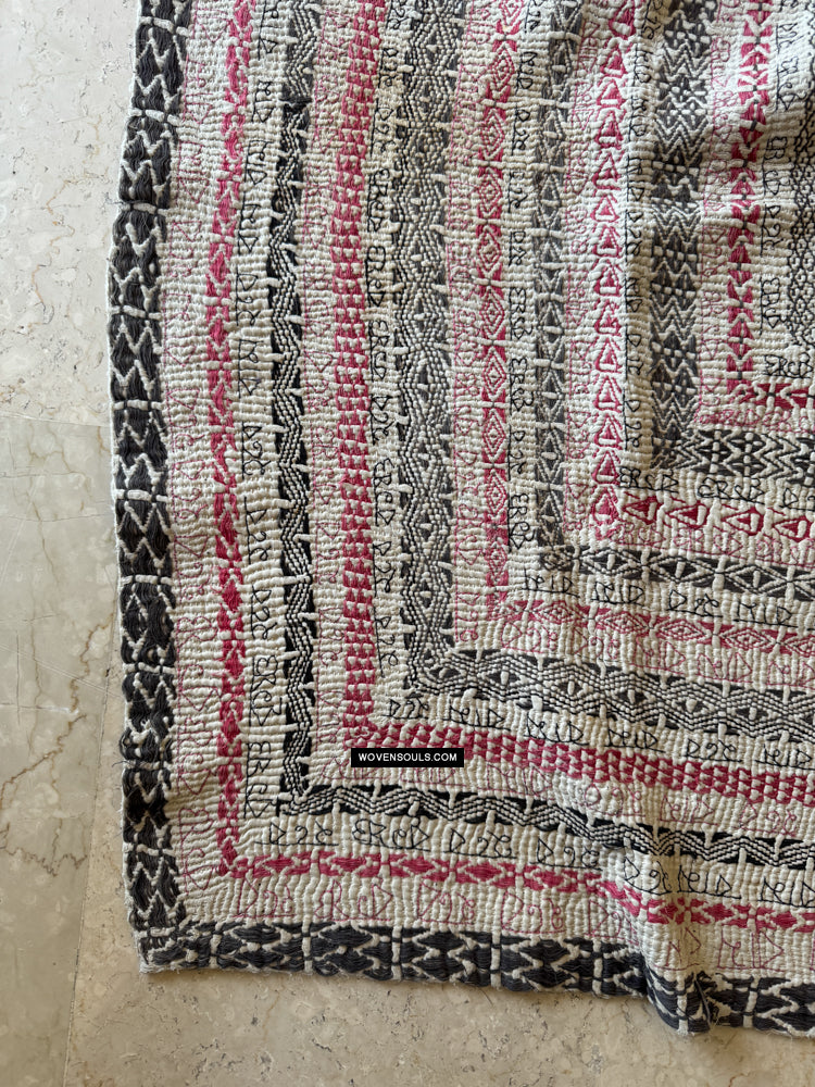 An outstanding Kantha Textile with verses embroidered onto the layers of fine cloth.