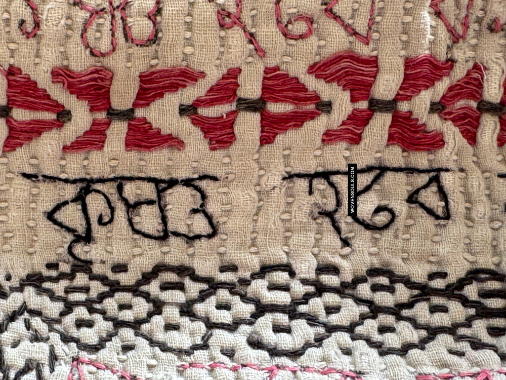 1987-B Antique Bengal Textile Kantha with Inscription of Ram