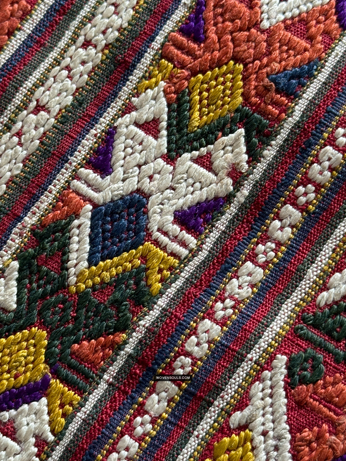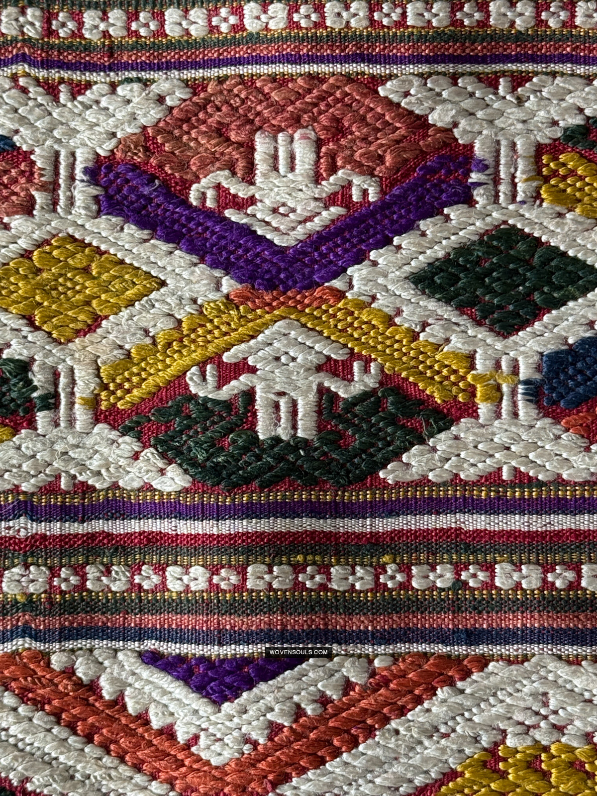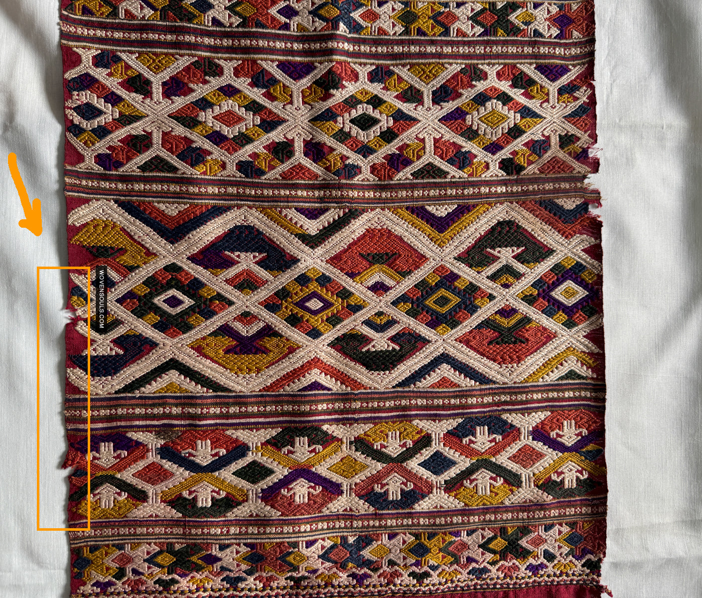 This item has spent a lifetime being used for the purpose of its creation with the original artist/user. Signs of this life lived heartily may be present on the piece in the form of stains, thread loss, loose threads, holes, tears, color run and other imperfections. Therefore the condition must be assumed to be “not” perfect. More photos of such imperfections will be provided on request.