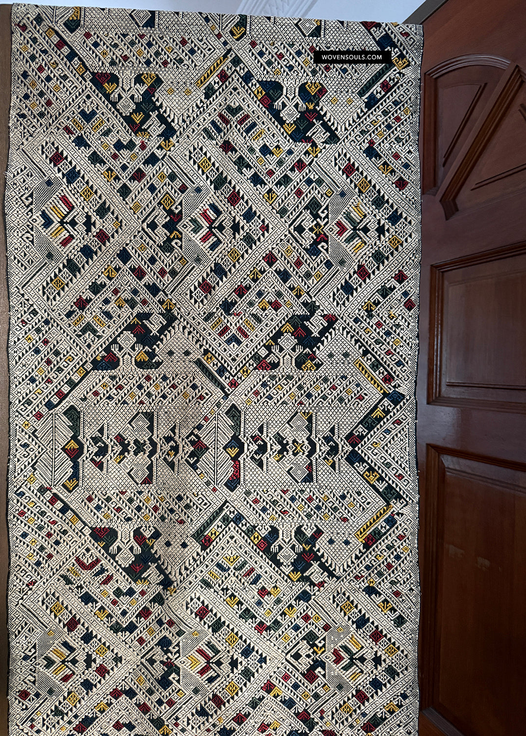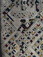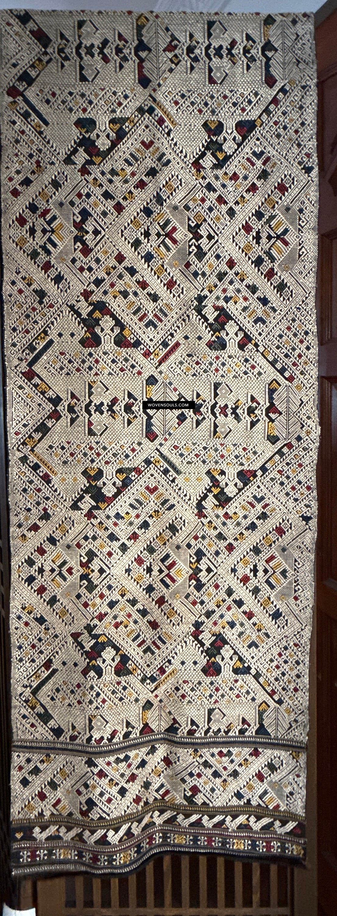 This item has spent a lifetime being used for the purpose of its creation with the original artist/user. Signs of this life lived heartily may be present on the piece in the form of stains, thread loss, loose threads, holes, tears, color run and other imperfections. Therefore the condition must be assumed to be “not” perfect. More photos of such imperfections will be provided on request.