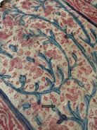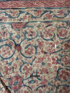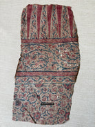 This fragment has been saved from a fire - therefore has burn marks present. Holes and stains. Edges not even. This fragment is one of the few border sections that have been saved from the same fire-struck cloth.