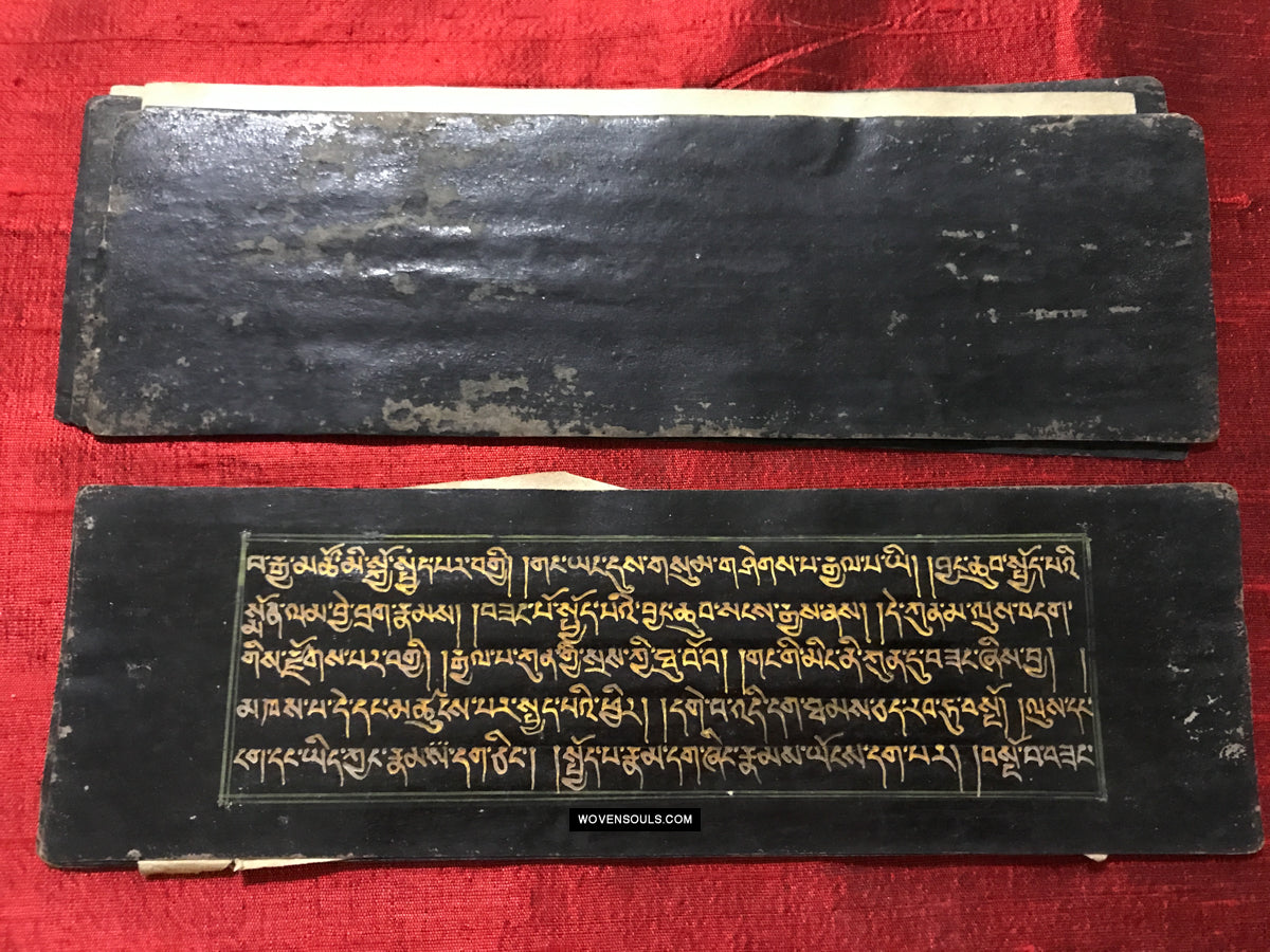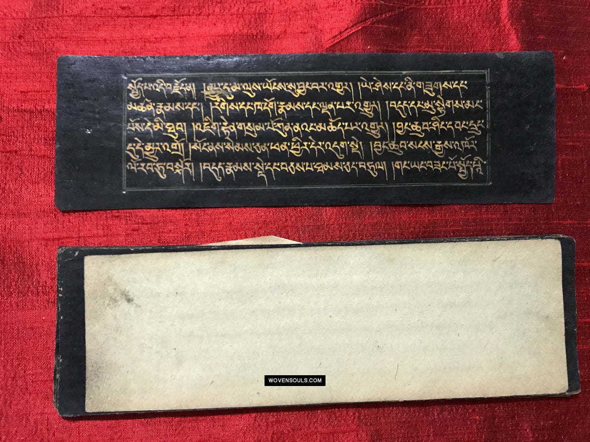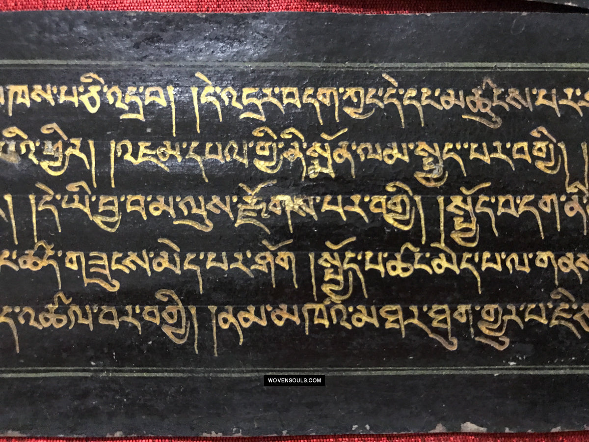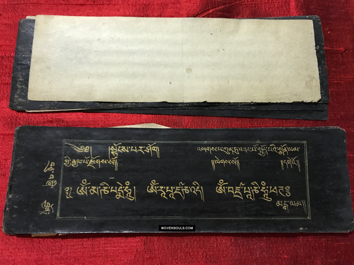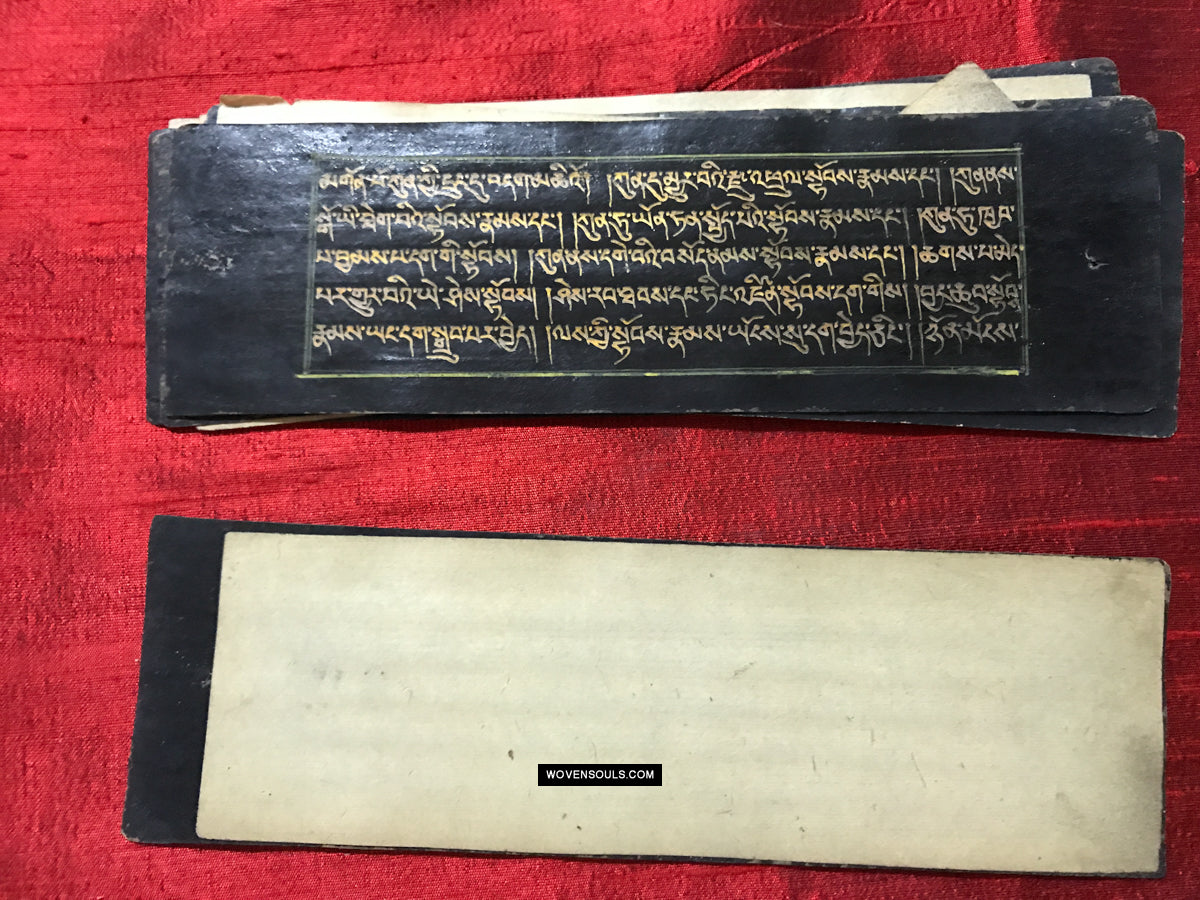 9020 Antikes tibetisches Manuskript - Schwarzes Papier goldener Text
