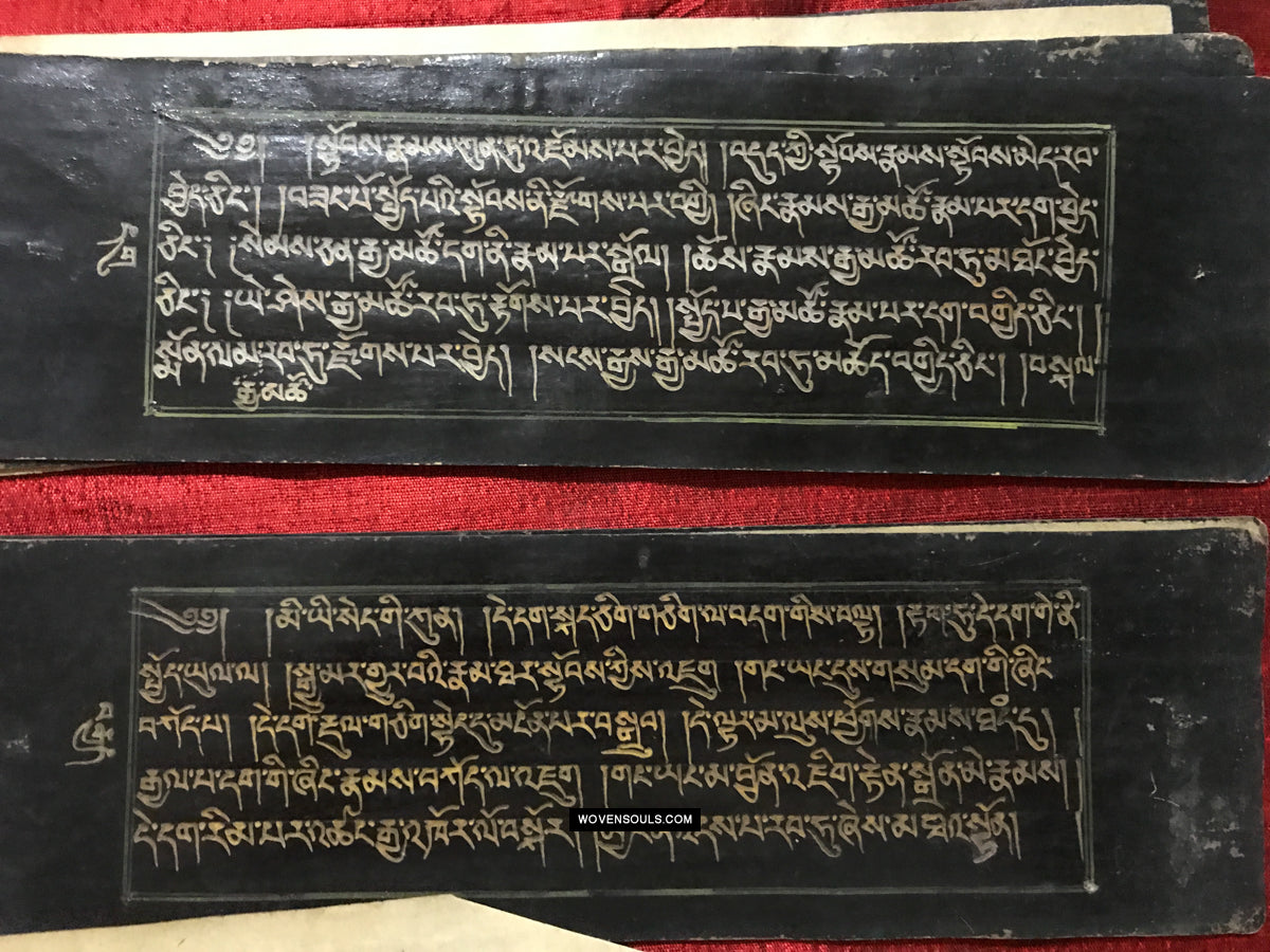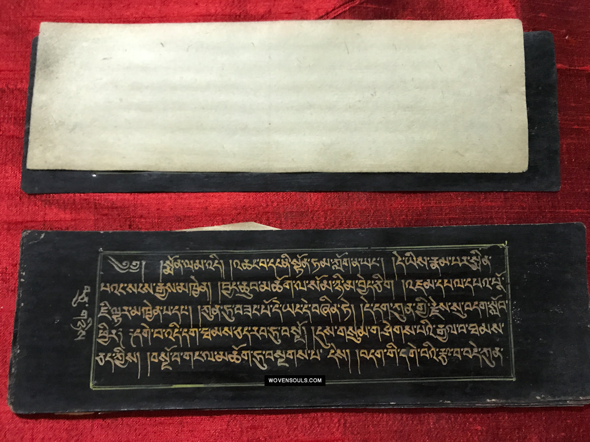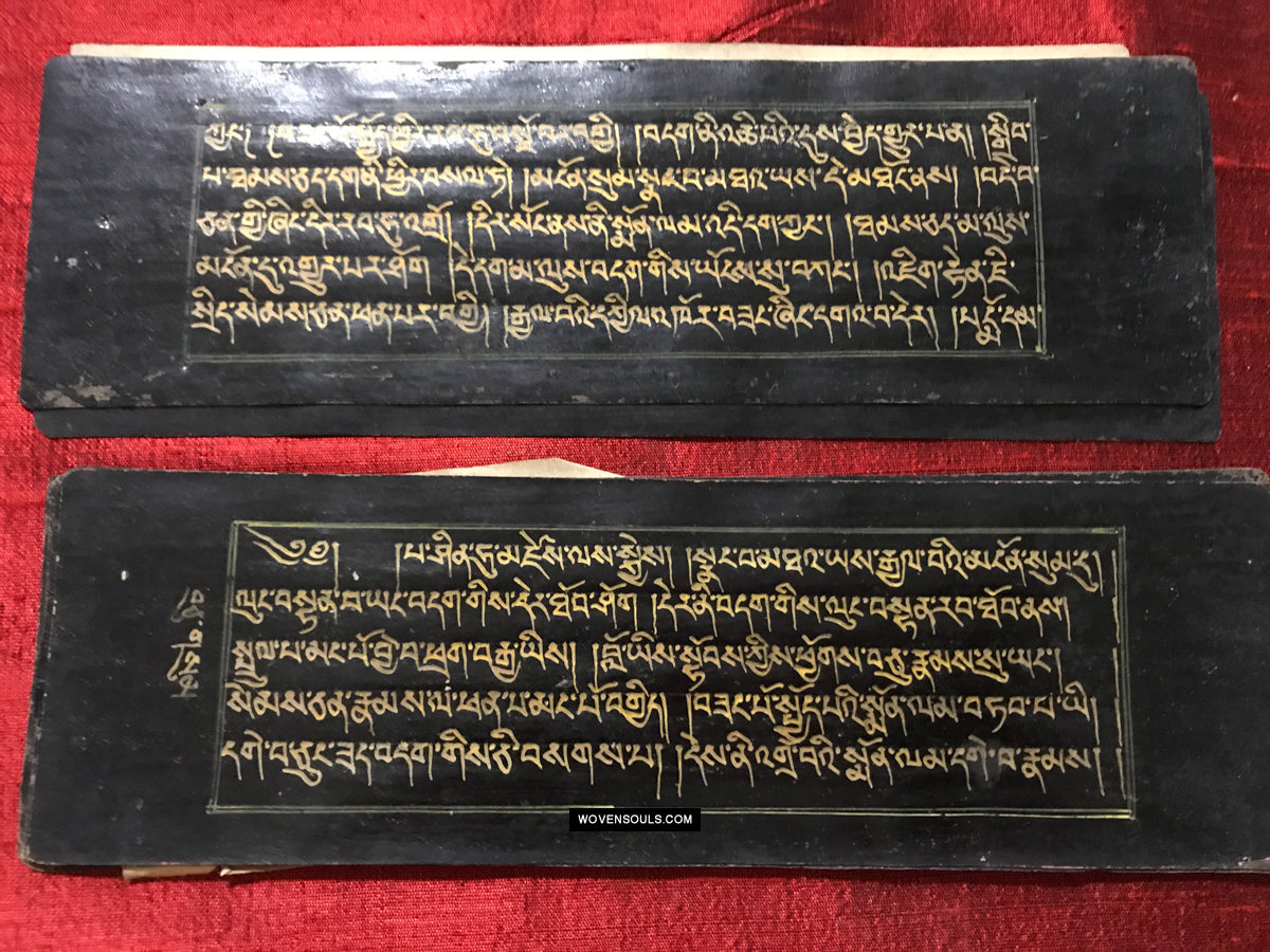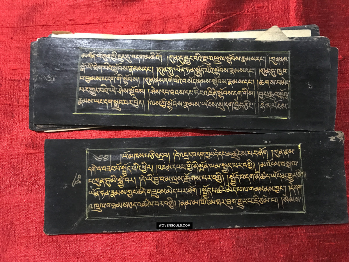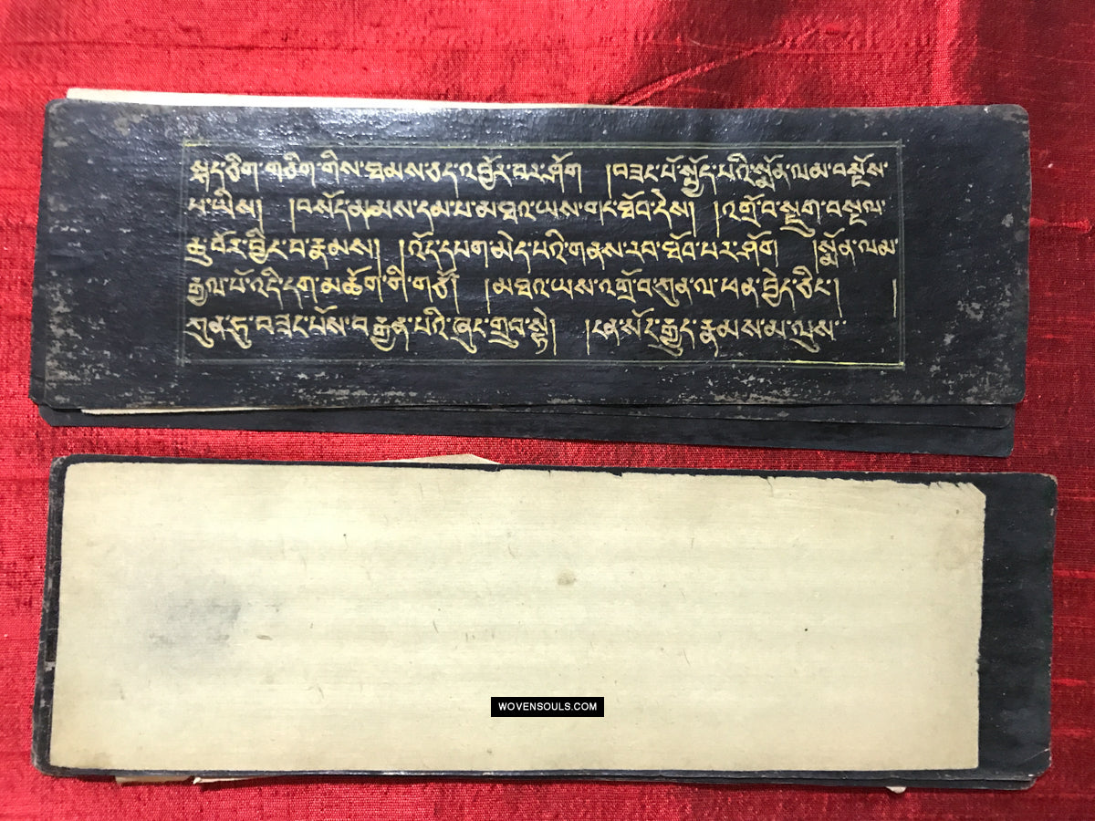 9020 Antikes tibetisches Manuskript - Schwarzes Papier goldener Text