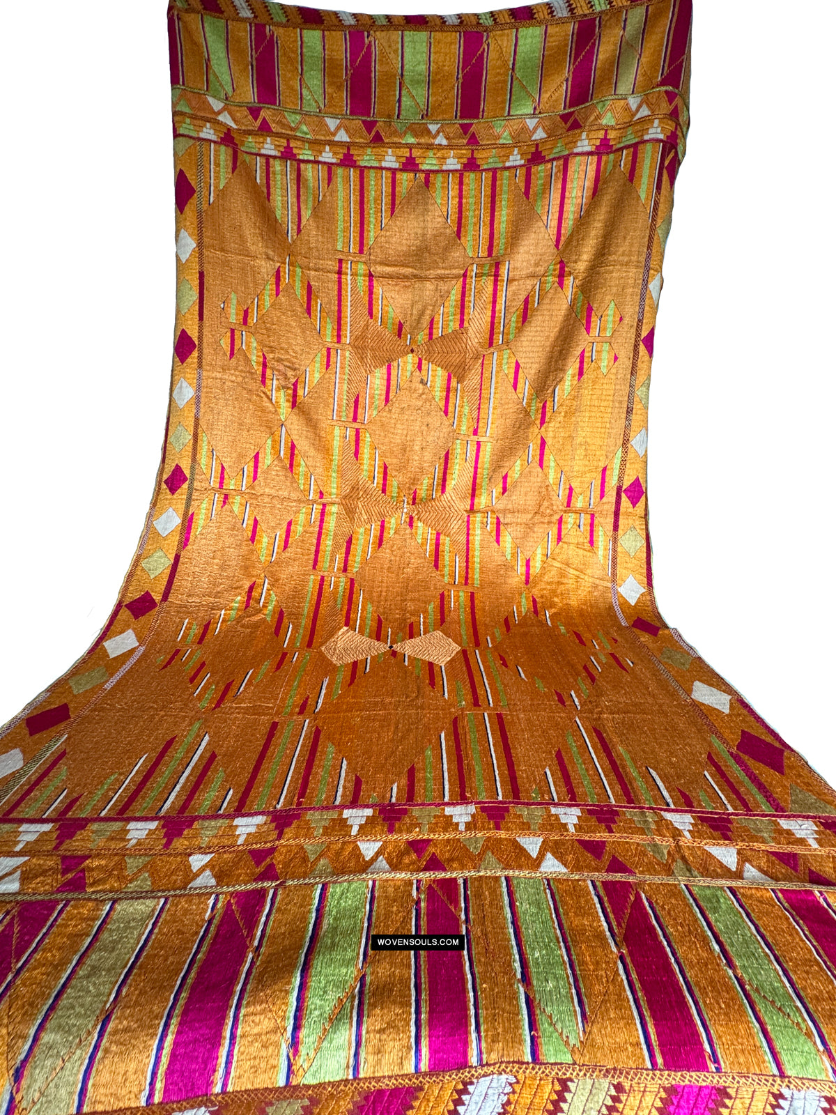 Der Stichtyp ist der spärliche Schwalbenschwanztyp, der normalerweise in nicht wiederholten Muster-Phulkaris mit sehr kreativer Kunst zu sehen ist.
