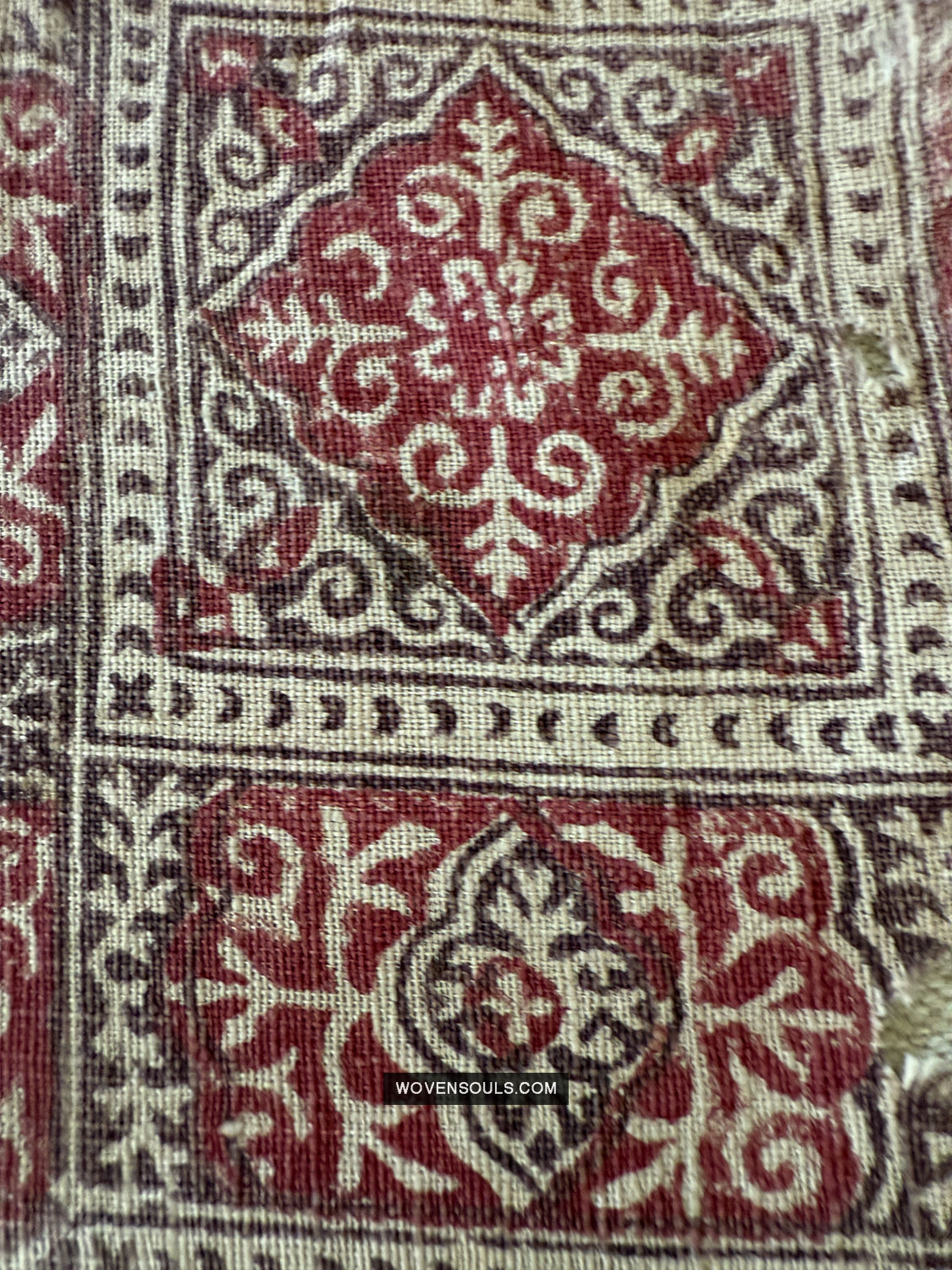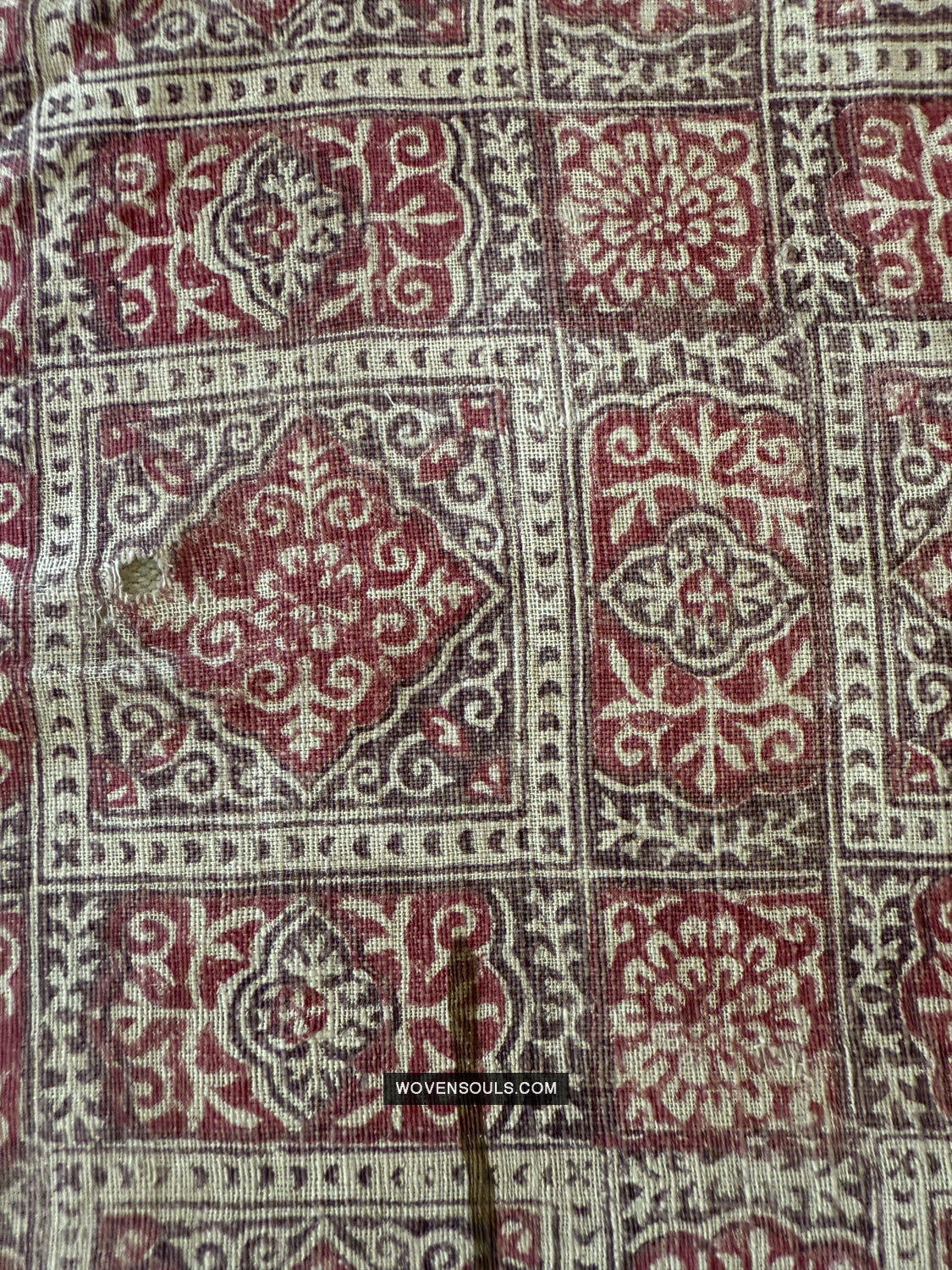 Panetarabdruck mit Motiven in einem Chekerboard -Druck, der in Braut -Saris in Gujarat beliebt ist.