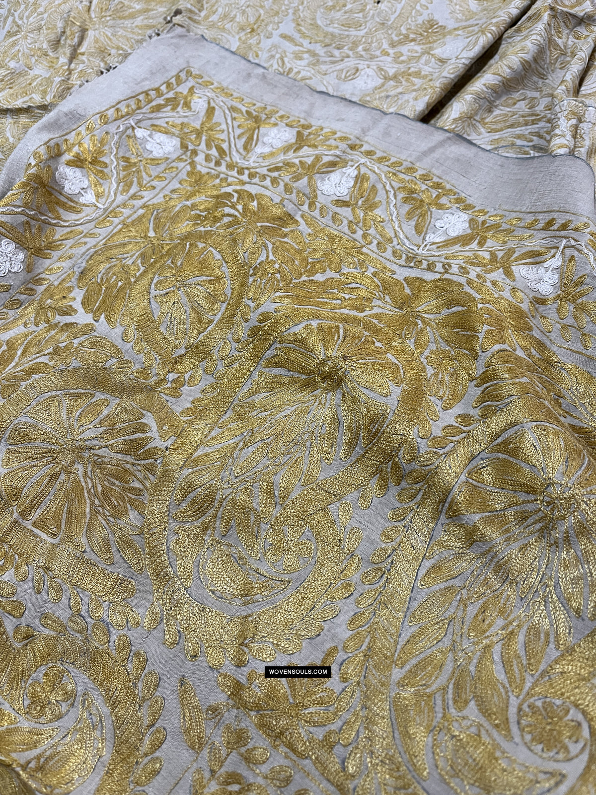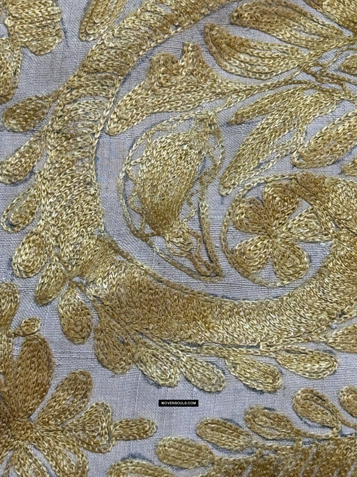 Schöne Blumen- und Boteh -Motive in goldener Seide und einige weiße Akzente.