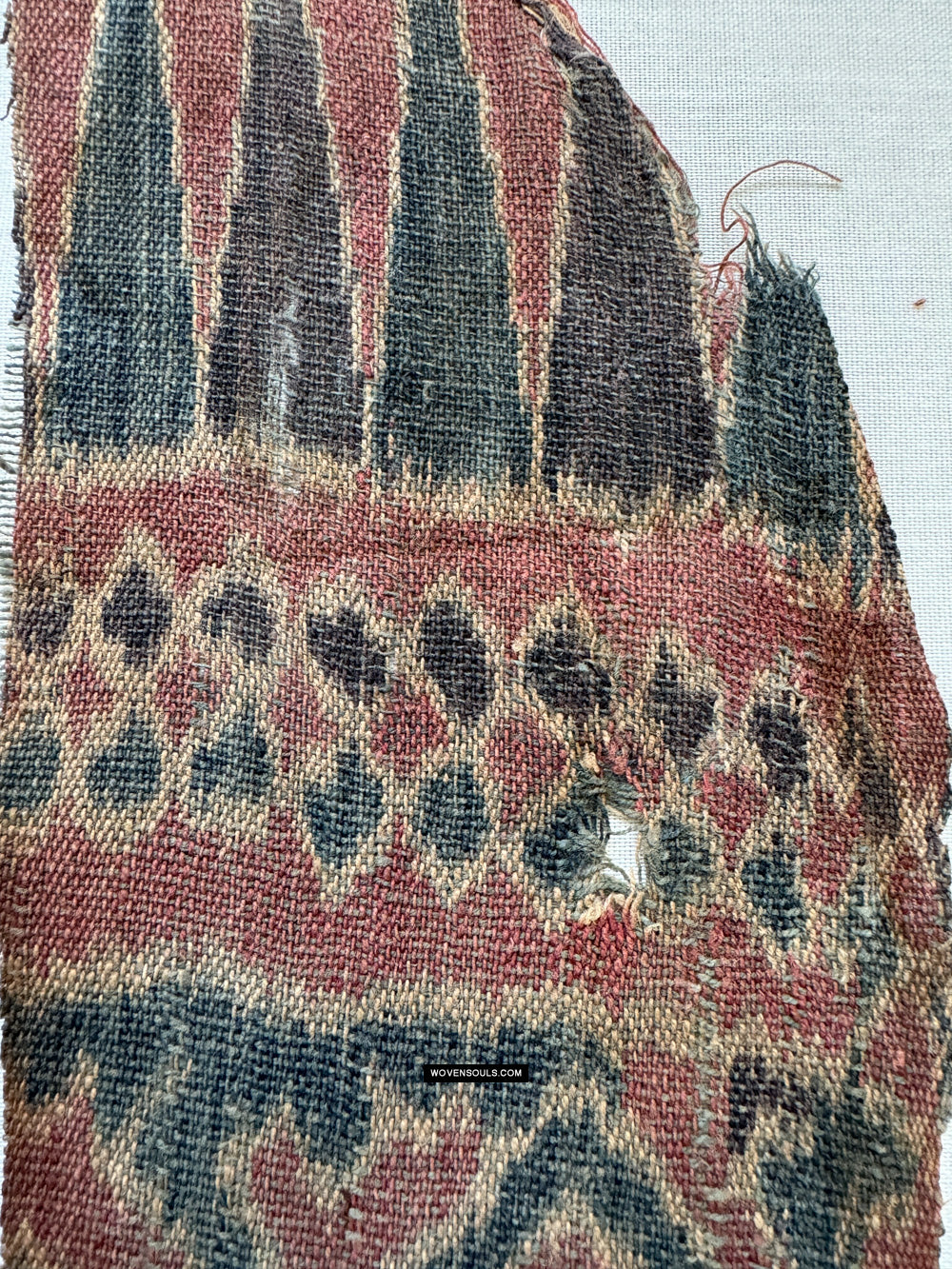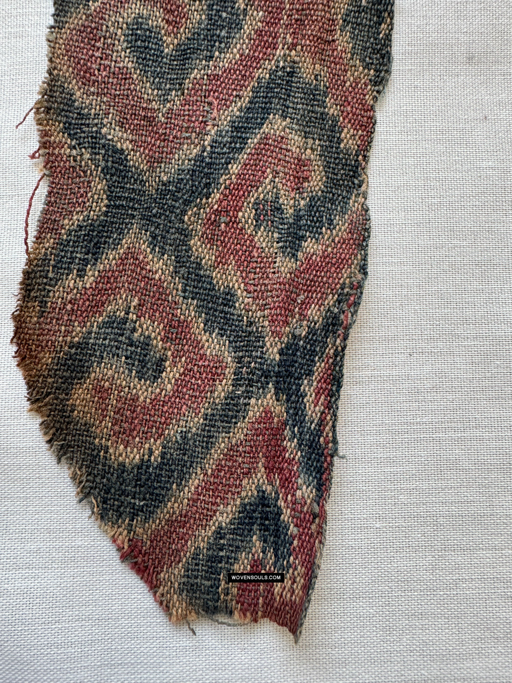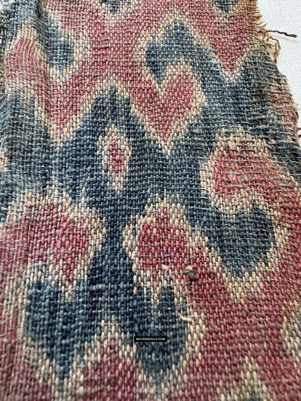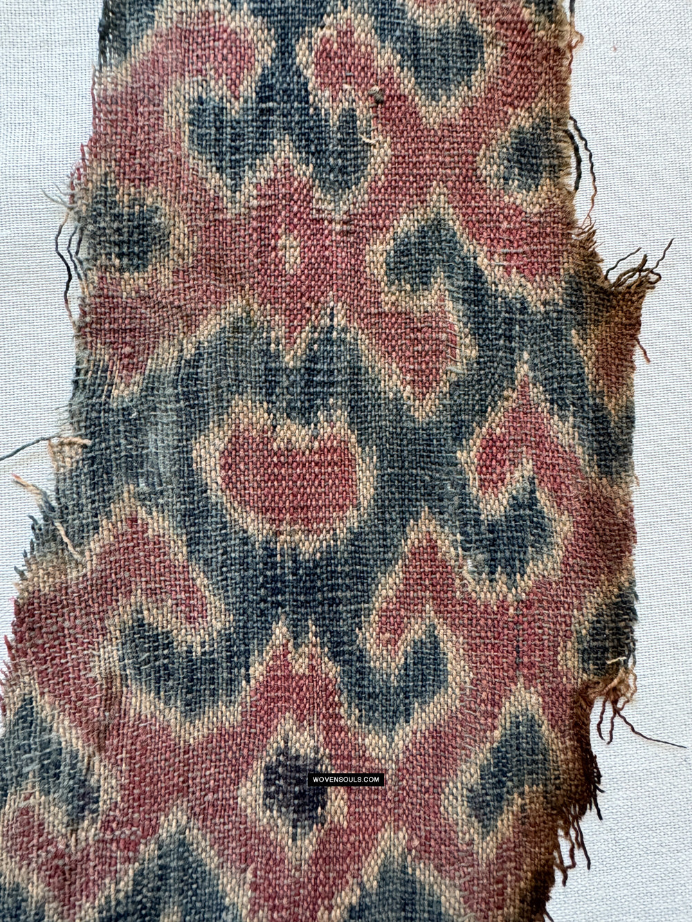 Die Motive sind in Ordnung, klein und dicht und nicht groß, wie wir in jüngeren Ikat -Textilien sehen.