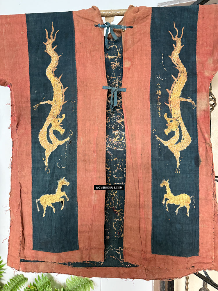 Antike Yao Shaman Dragon Robe - Seidenblätterstickerei