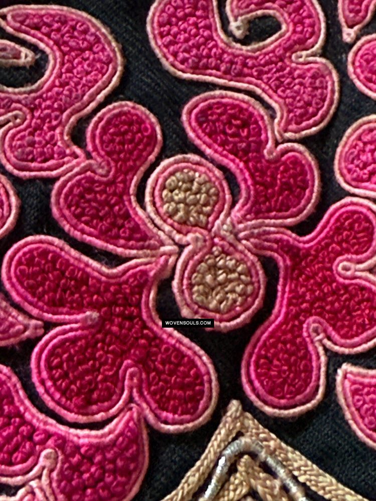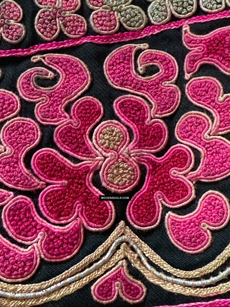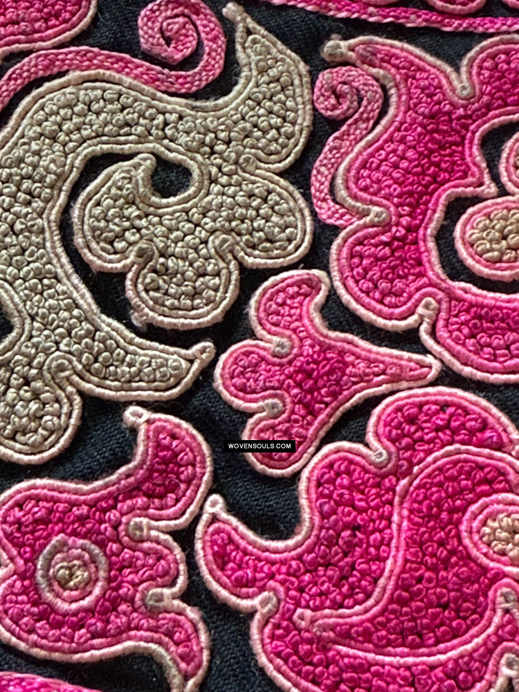 Superbe vieux textile minoritaire ethnique chinois avec broderie de graines