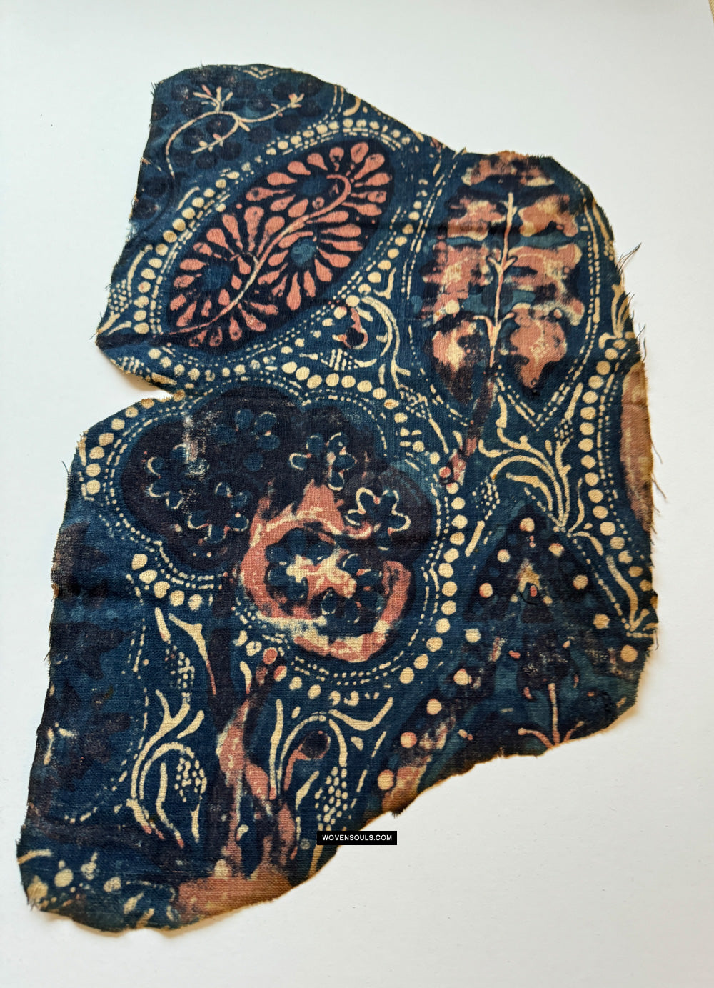 1931 Vendu Fragment de Toraja au commerce indien antique - Fleurs Indigo