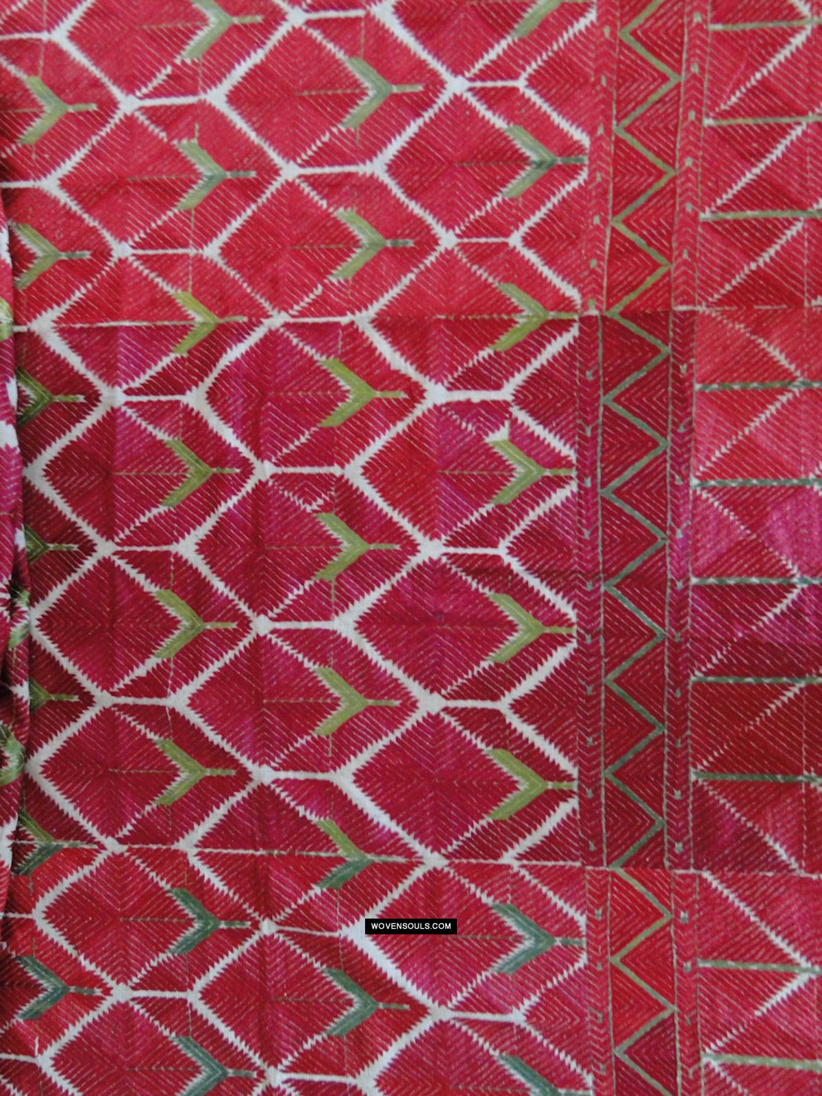 446 Superbe Antique Thirma Bagh Phulkari Motif de rose textile