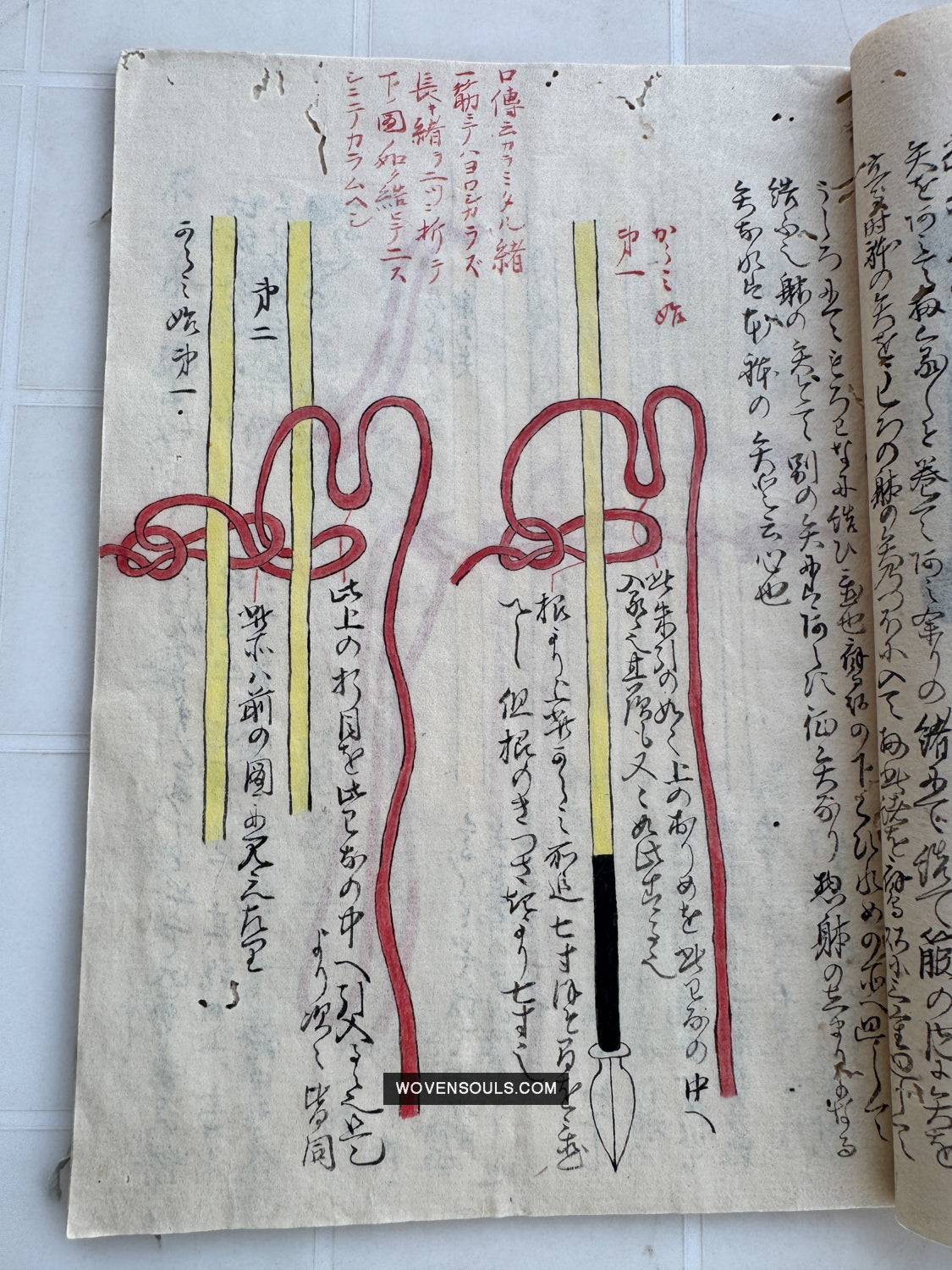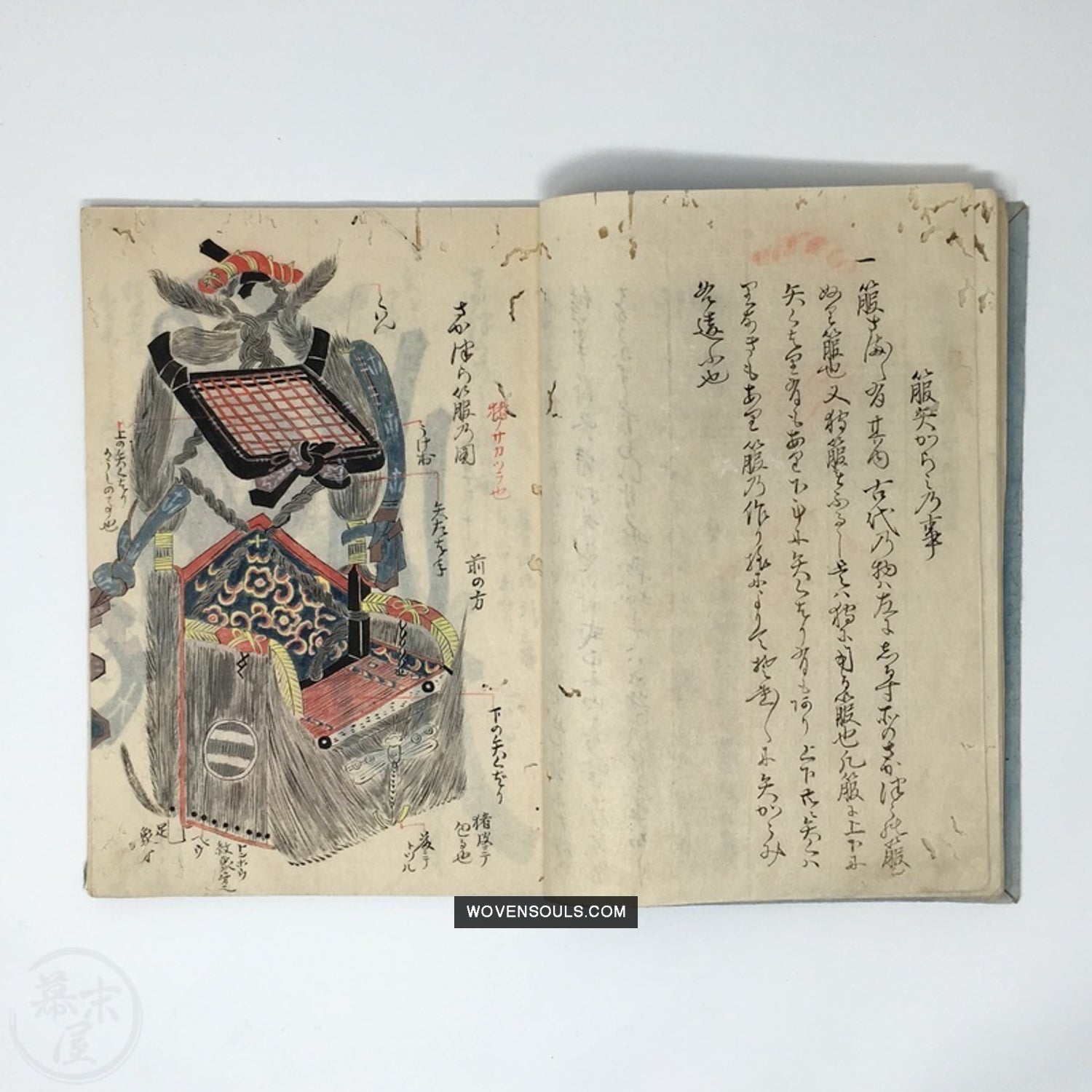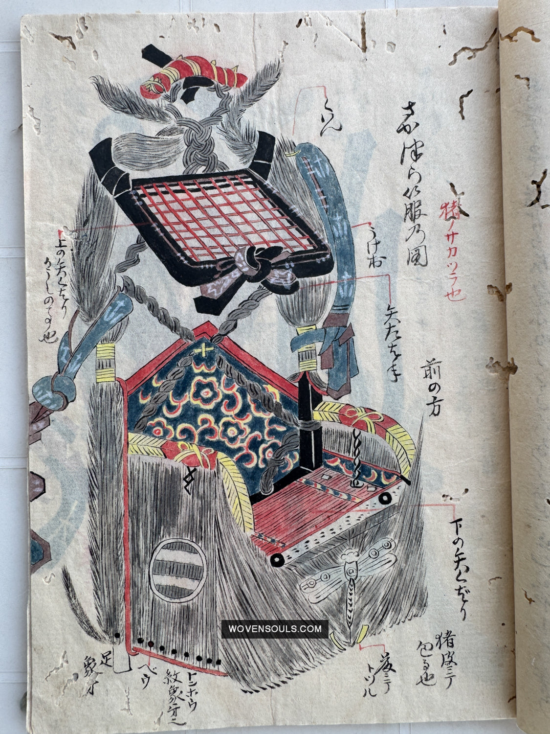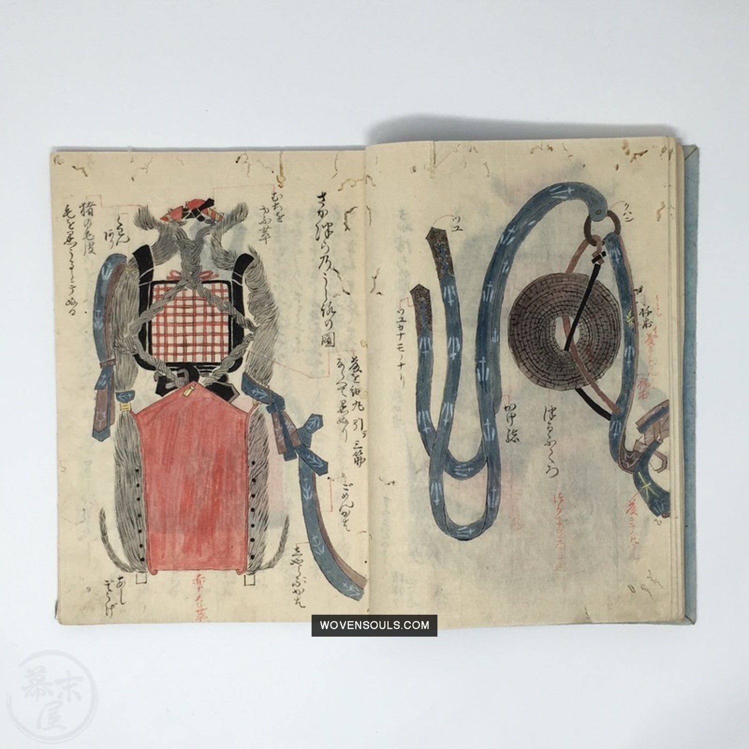 Un manuscrit complet sur le sujet de l'organisation du carquois de samouraï de flèches avec 23 illustrations peintes en pleine page