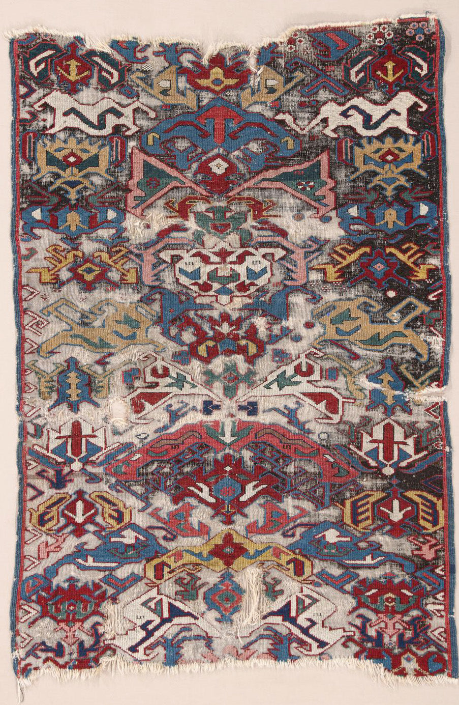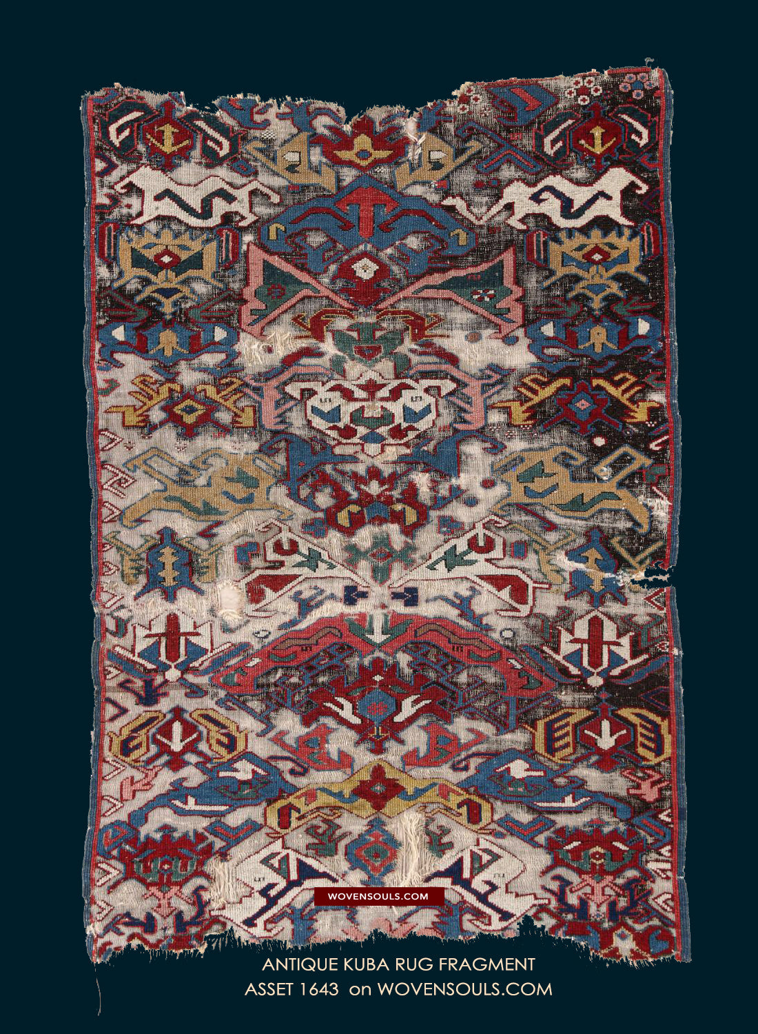 Magnifique fragment antique d'un tapis antique Karabagh / Kuba avec des éléments de dragon