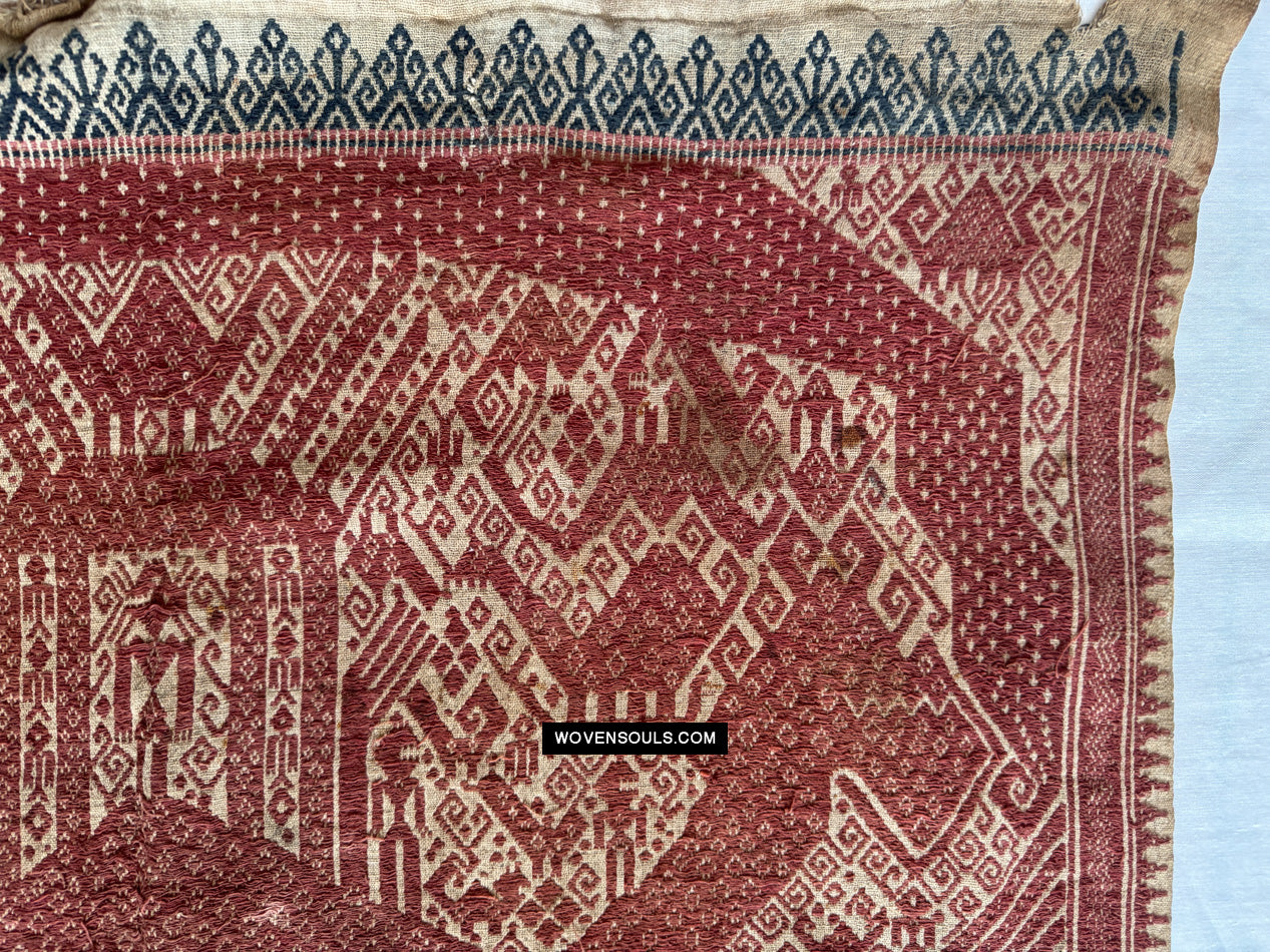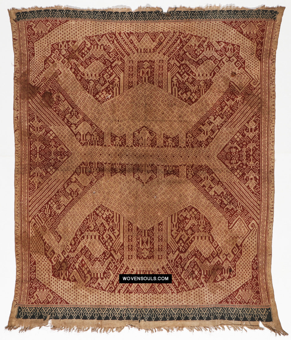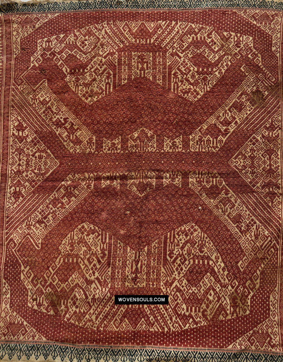 Ce textile pourrait nous divertir pendant une bonne heure avec le jeu «trouver les différences» car la moitié supérieure et inférieure est presque des images miroir.